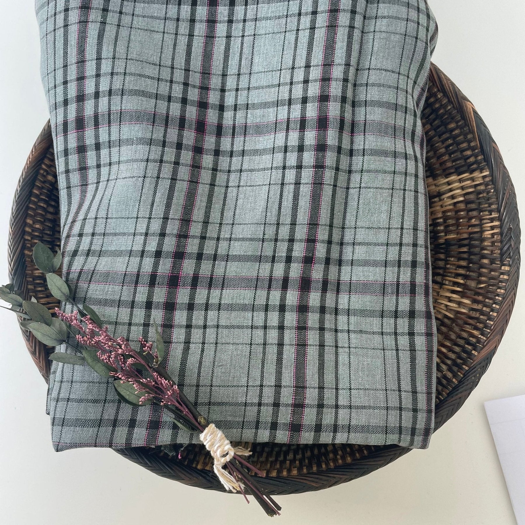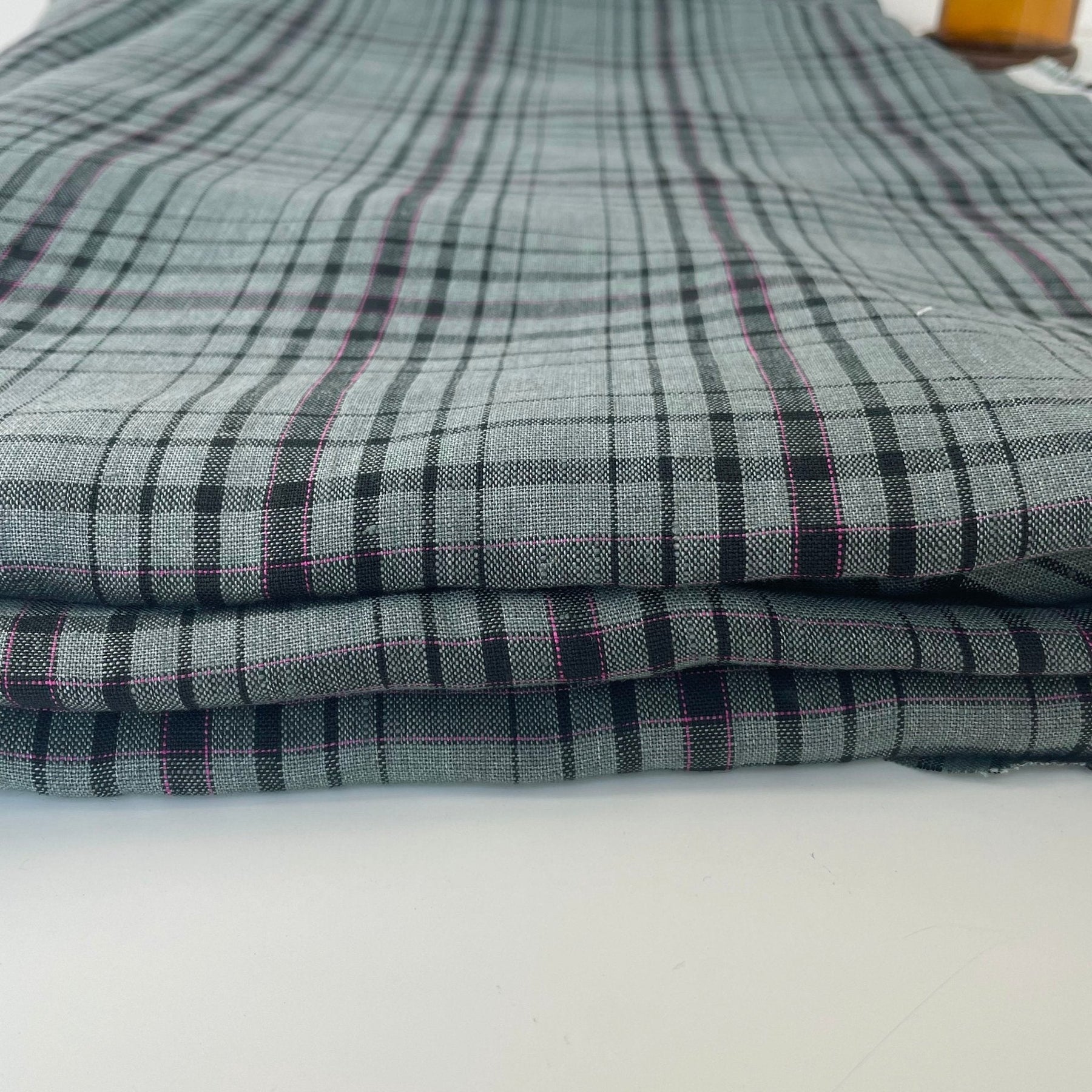 Check fabrics are always a classic choice, and the pink pin adds a nice touch of color and interest.