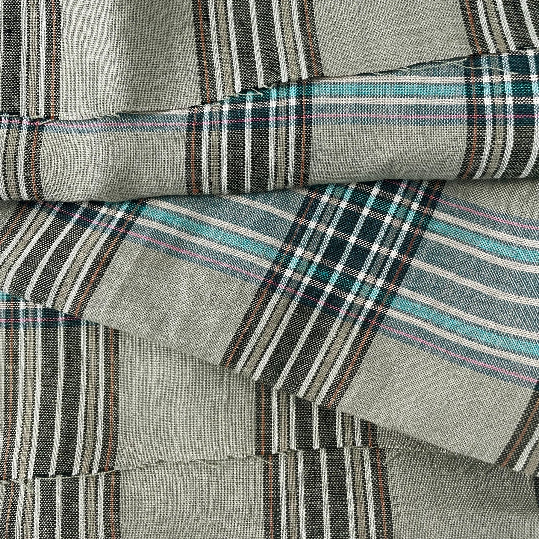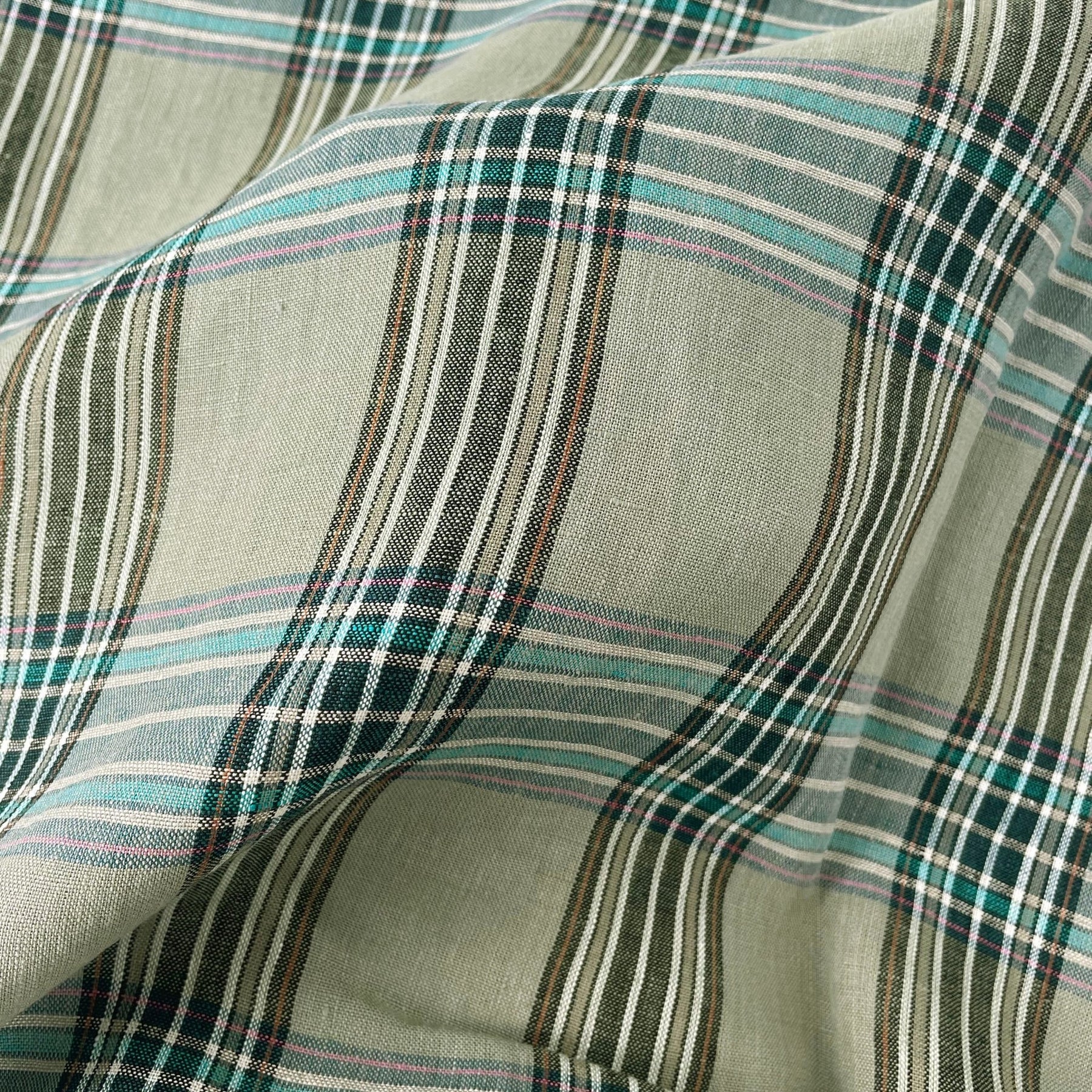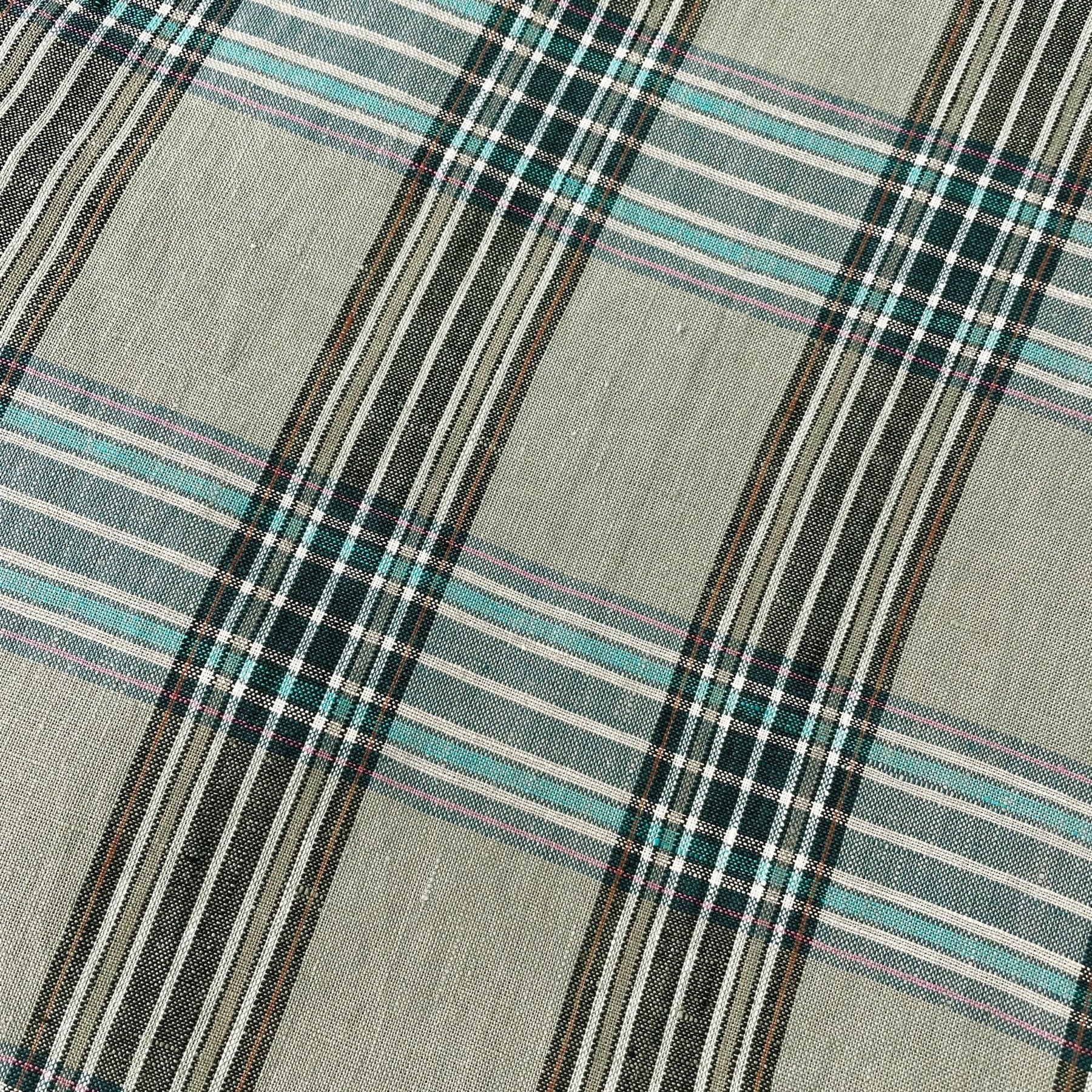 This 100% linen fabric boasts a comfortable medium weight, stylish plaid pattern, and a pre-washed soft touch, making it a cozy and inviting choice for any project.