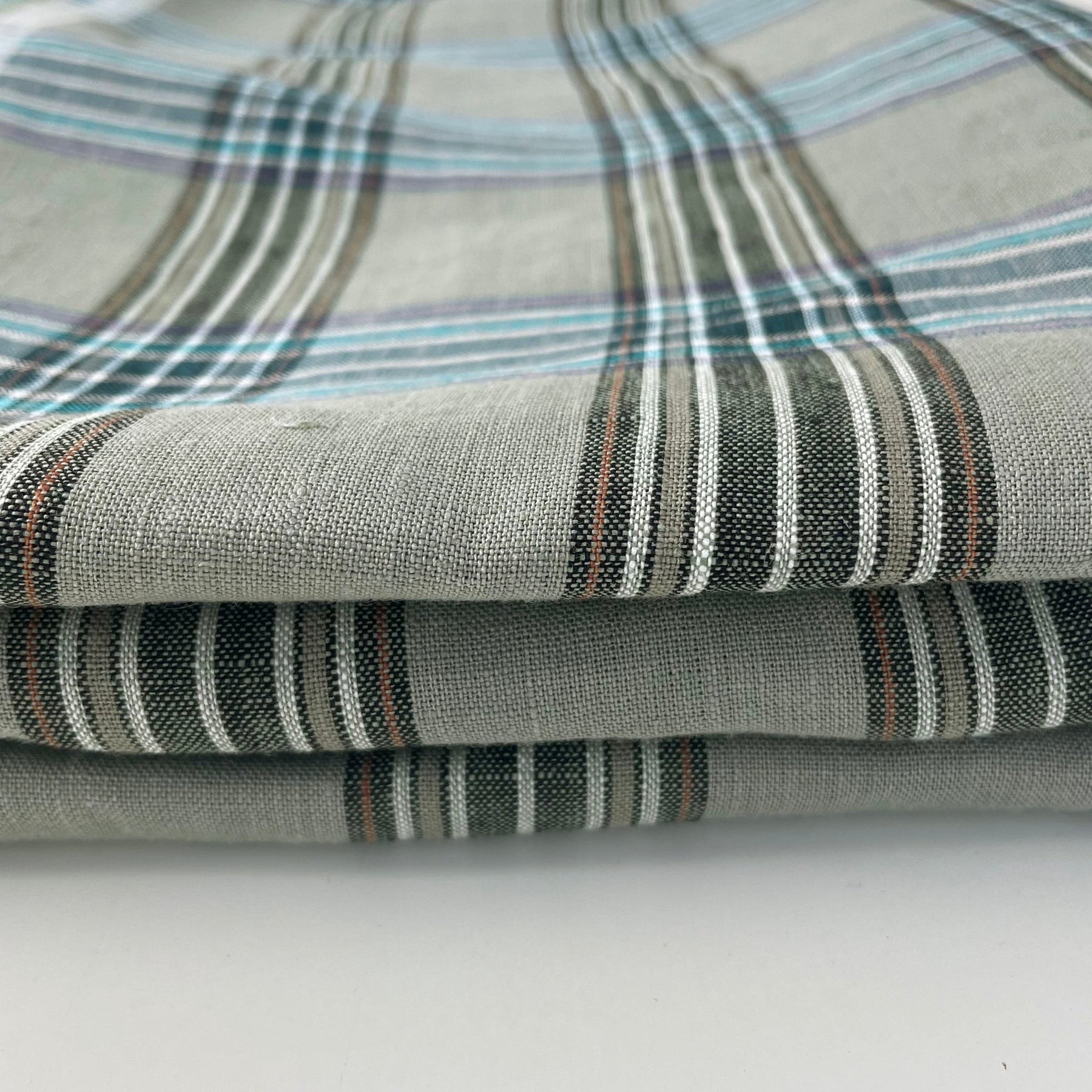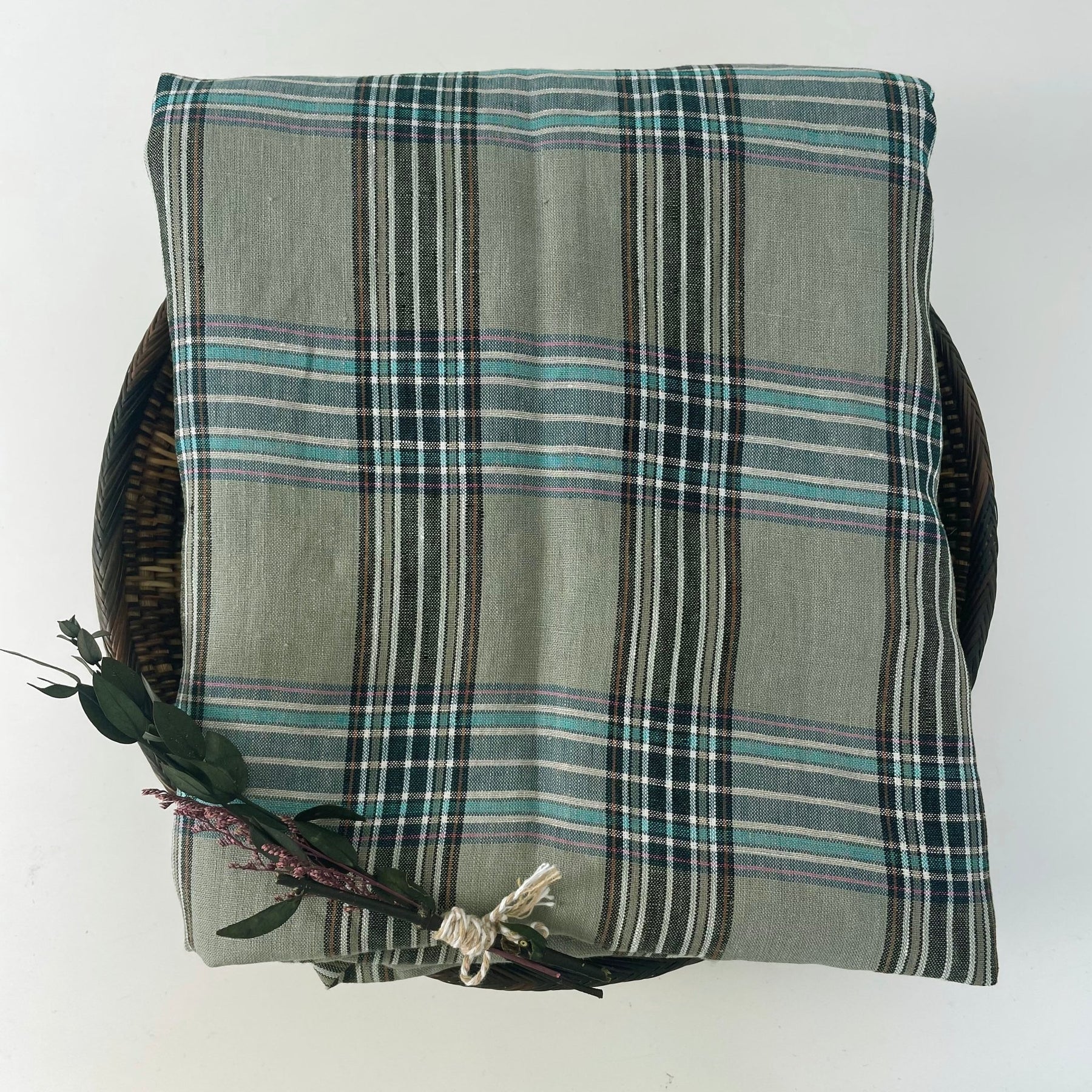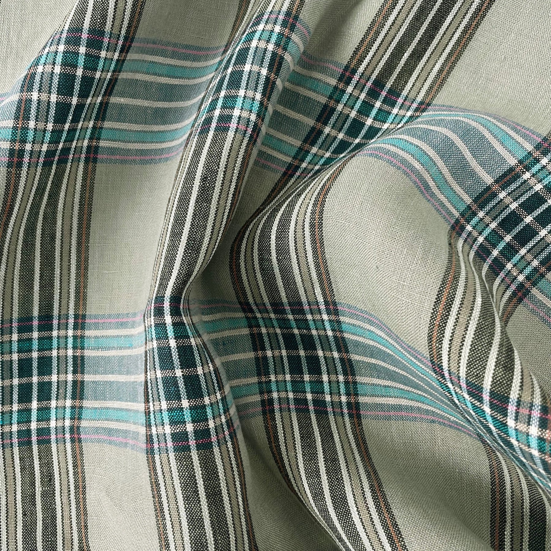 This 100% linen fabric boasts a comfortable medium weight, stylish plaid pattern, and a pre-washed soft touch, making it a cozy and inviting choice for any project.