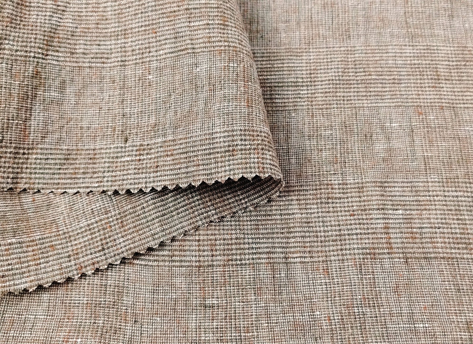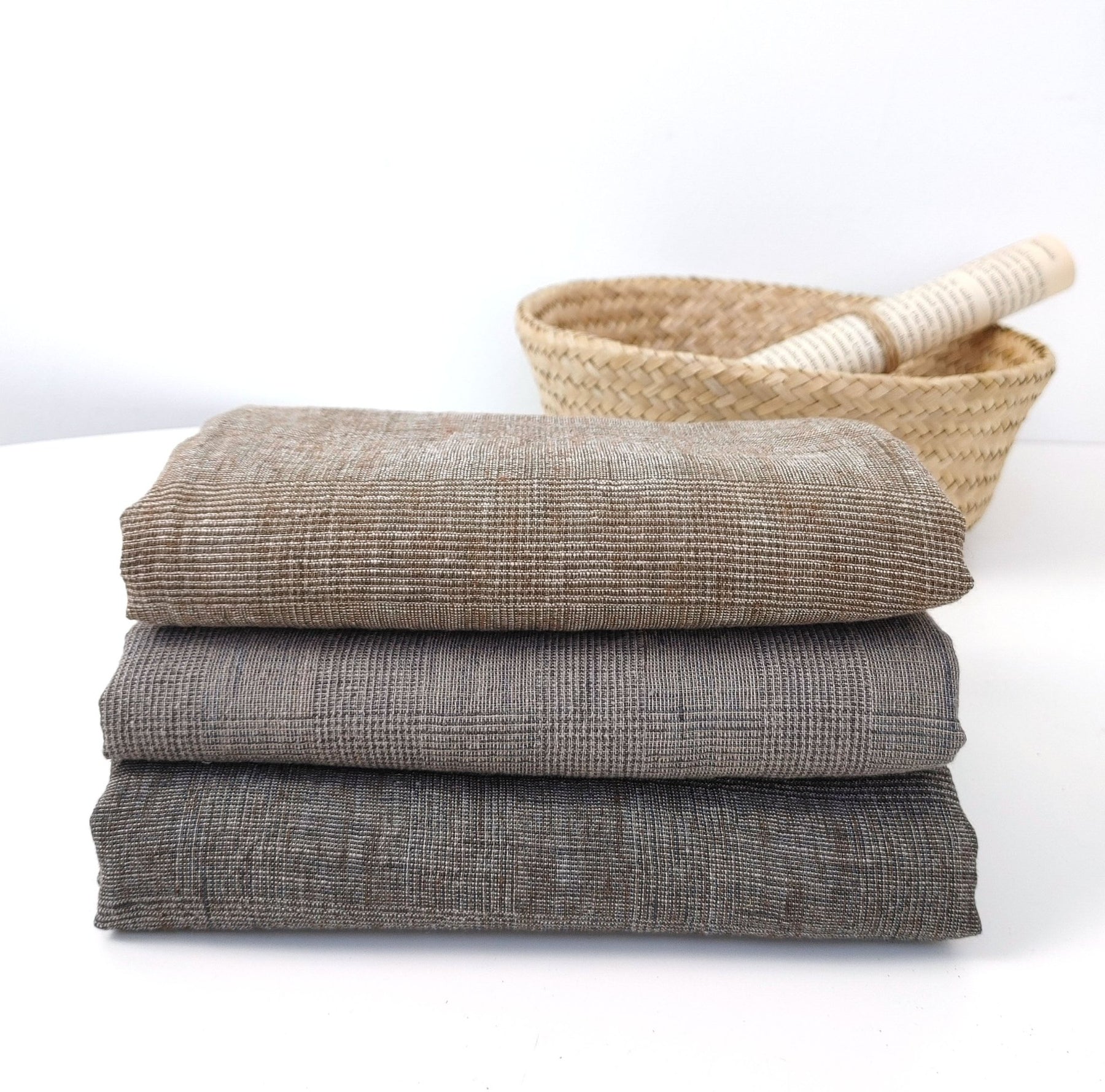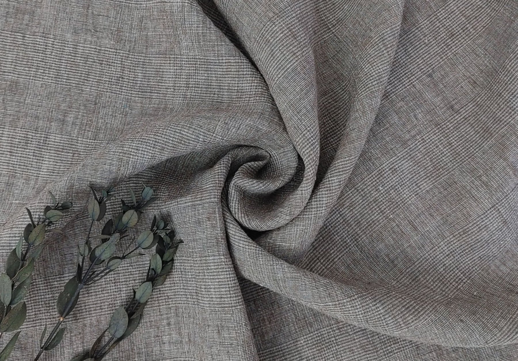 Linen Polyester Glen Plaid Fabric with Delave Effect 7062 7063 6805 - The Linen Lab - Brown