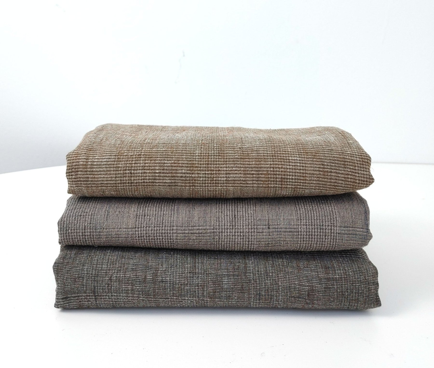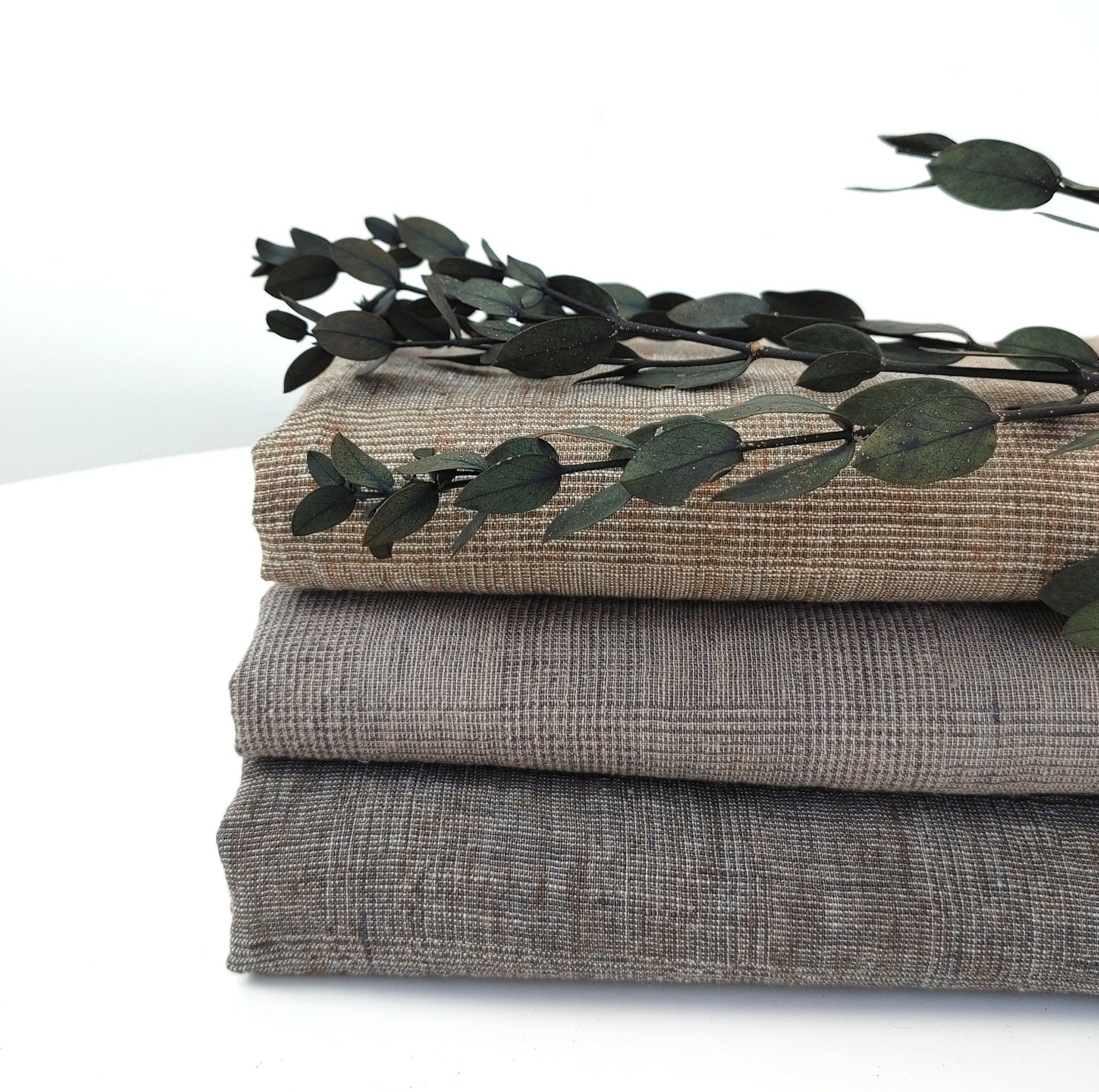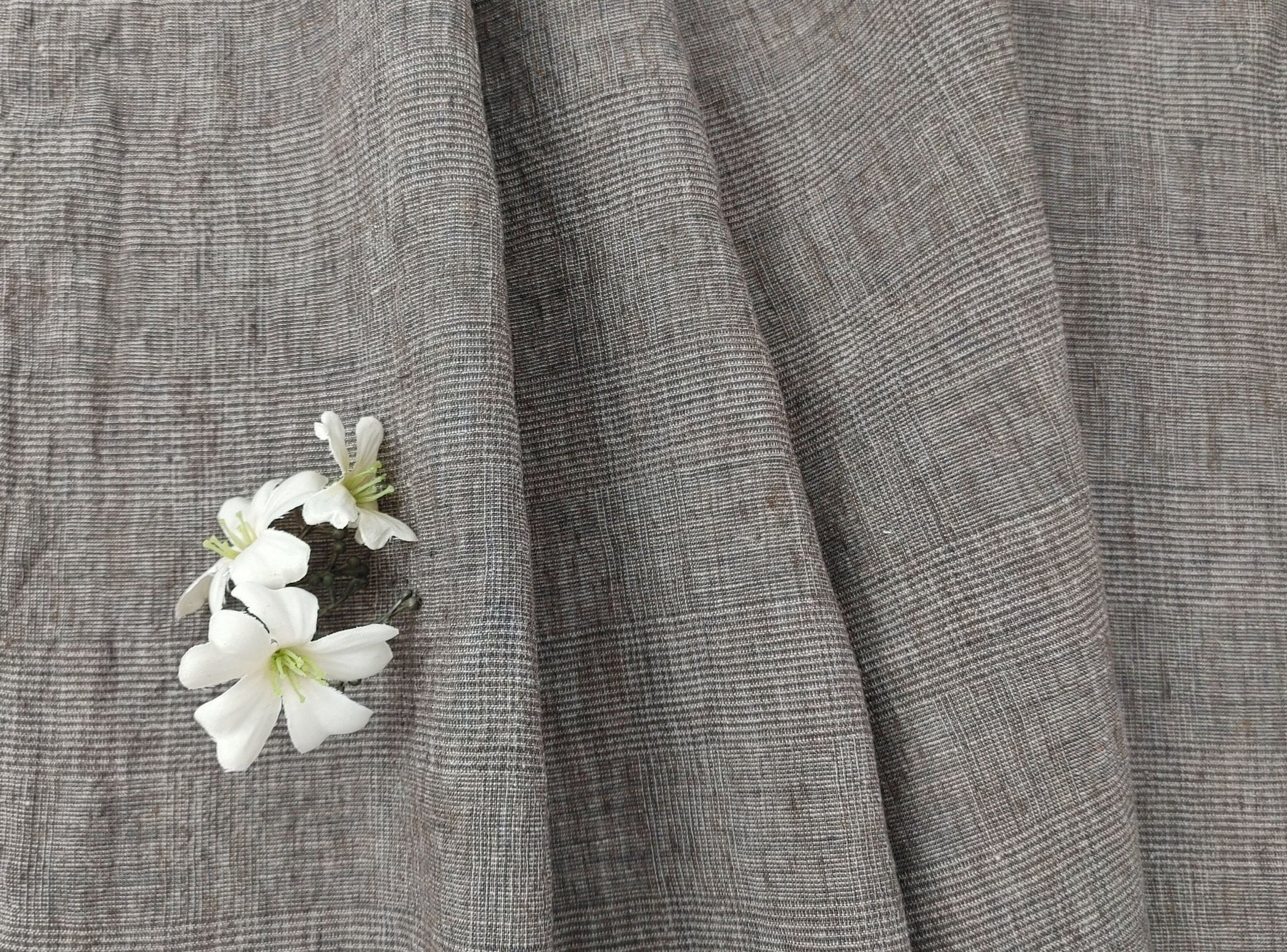 Linen Polyester Glen Plaid Fabric with Delave Effect 7062 7063 6805 - The Linen Lab - Brown