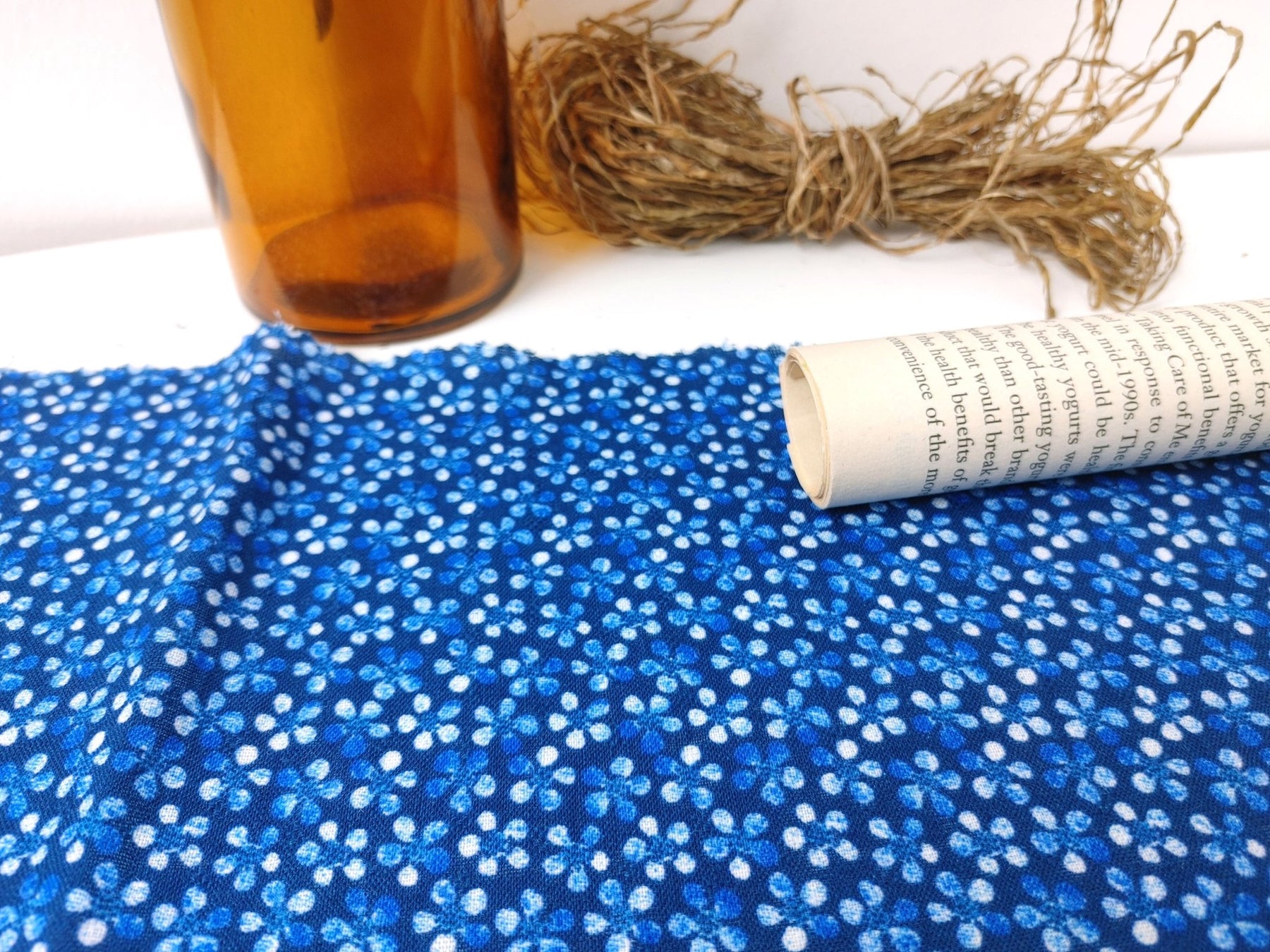 100% Linen Blue Flower Print Fabric Light Weight 7292 - The Linen Lab - Blue