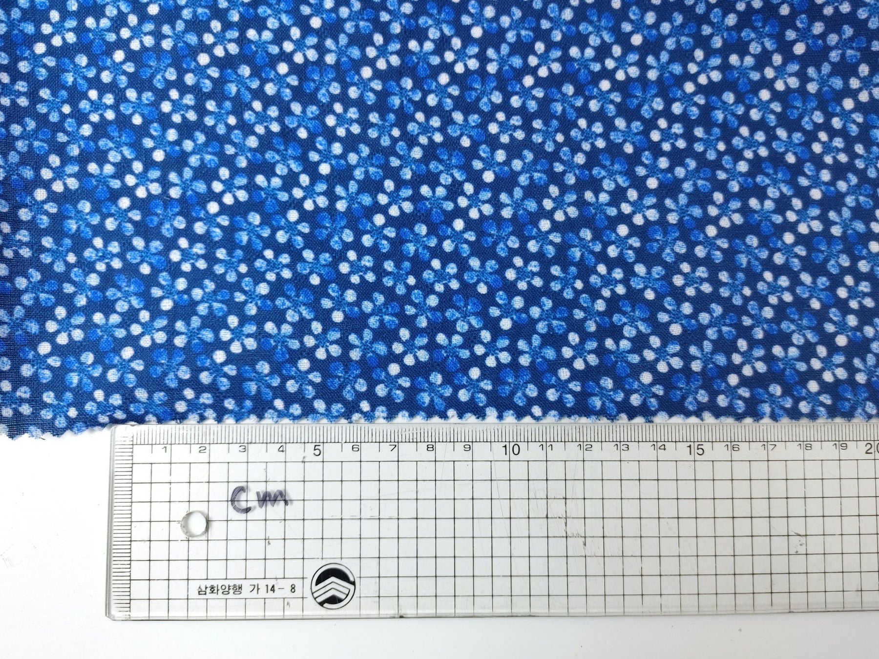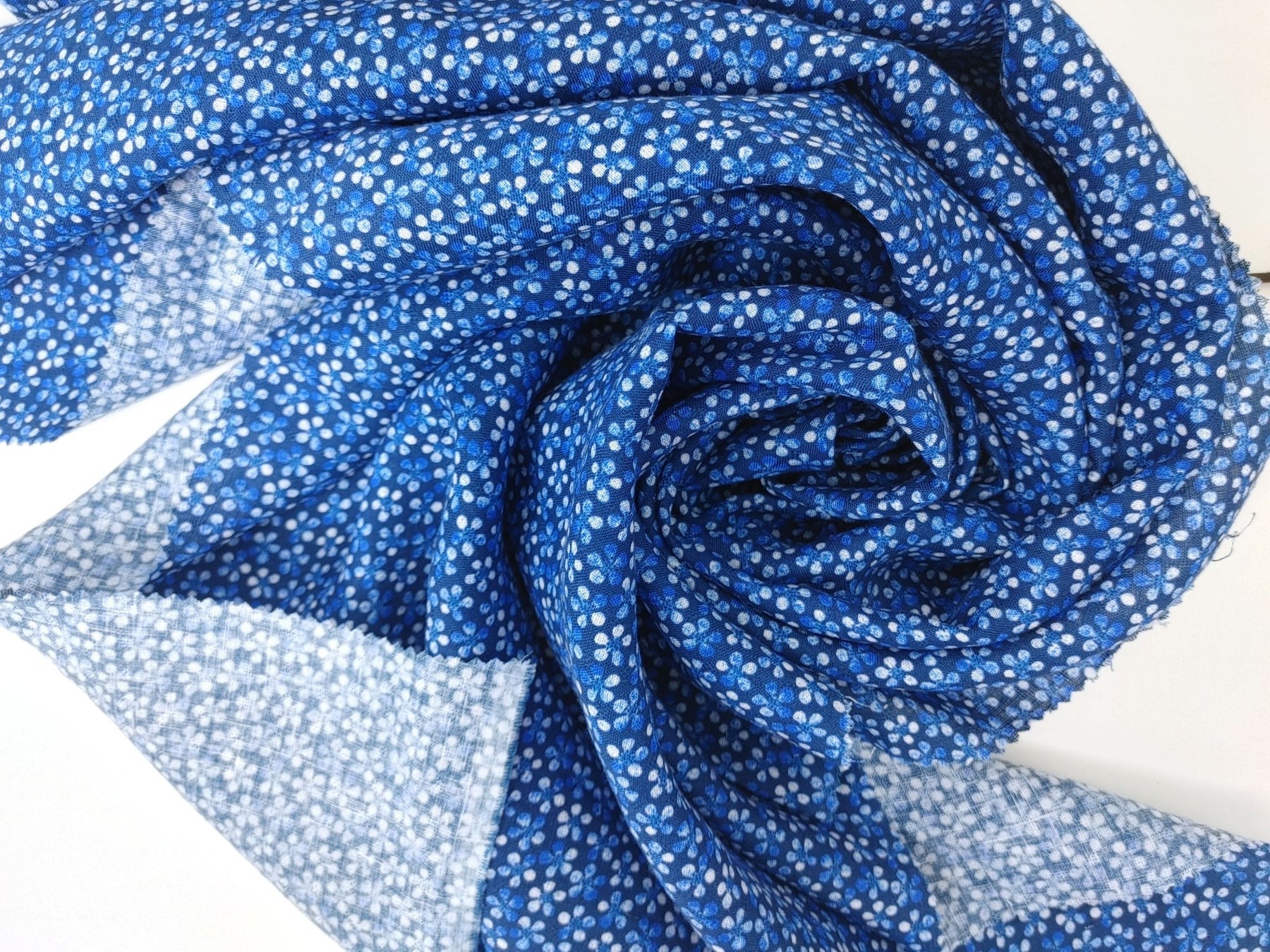 Introducing our Linen Fabric, featuring a charming blue flower print with a beautiful pattern. The fabric is woven in a dobby structure, revealing a subtle underlying pattern beneath the printed flowers for added visual interest.
