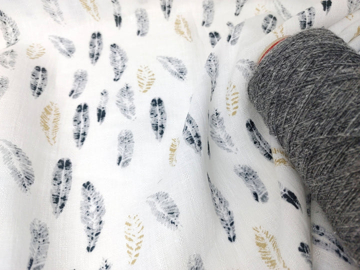 Introducing our 100% Linen Leaf Print Fabric (7326) – a light and stylish choice for your creative projects. Featuring a mix of mustard and grey tones, along with a deep green color in a leaf print pattern, this fabric effortlessly blends sophistication with a touch of nature. Woven in a dobby structure, it showcases a unique texture that adds character to your creations.
