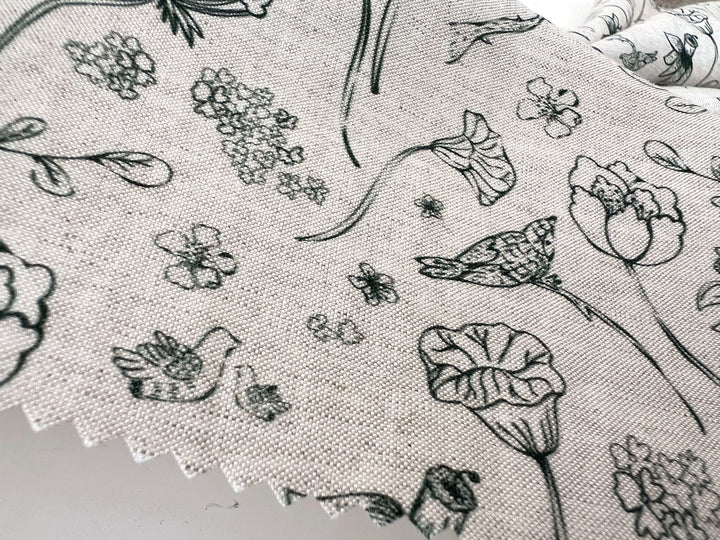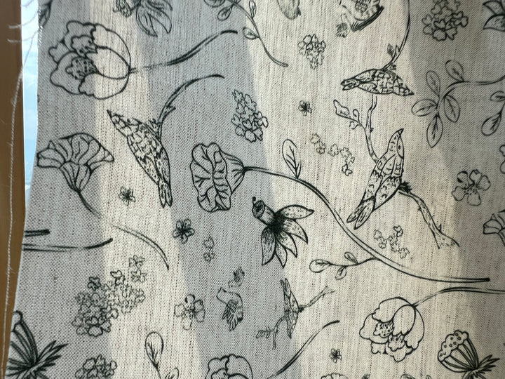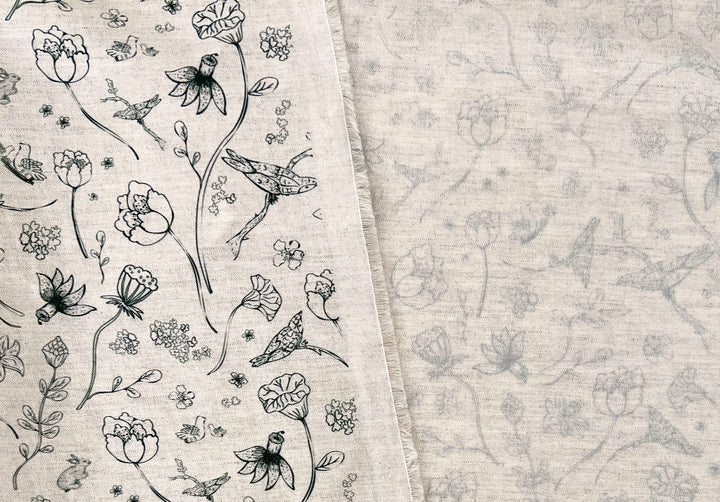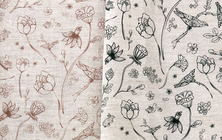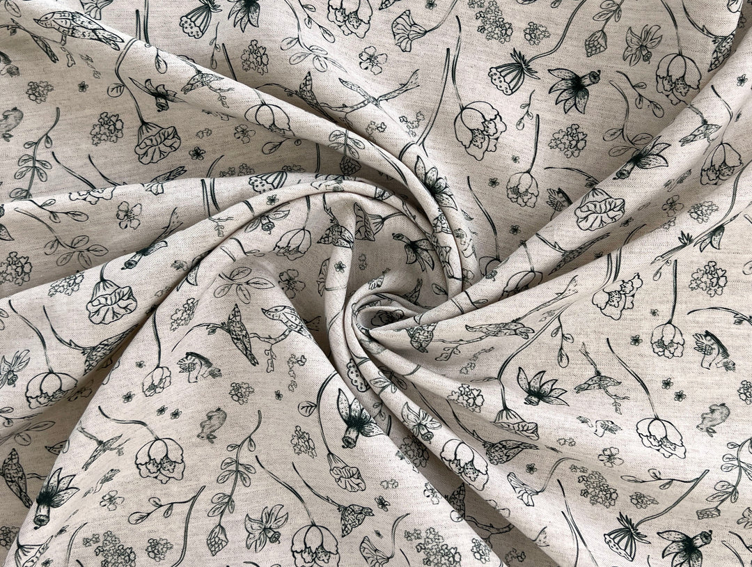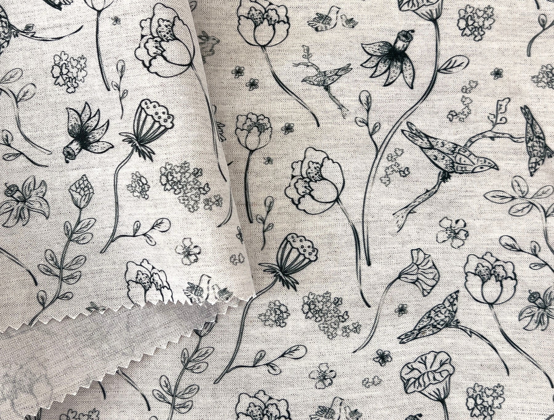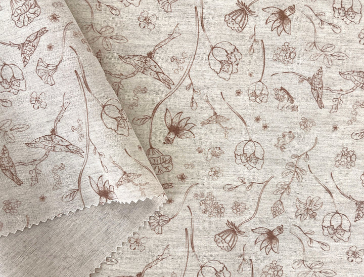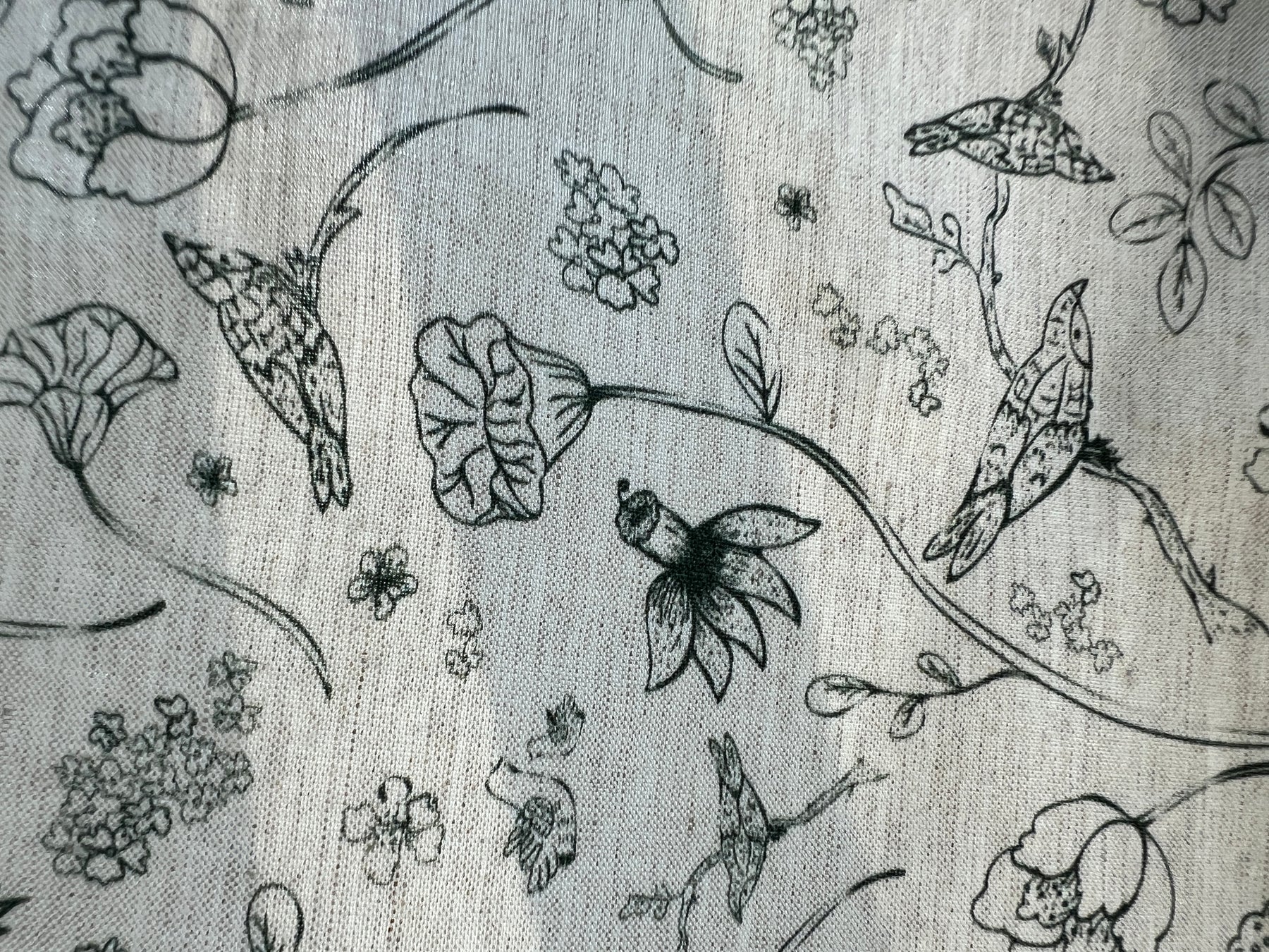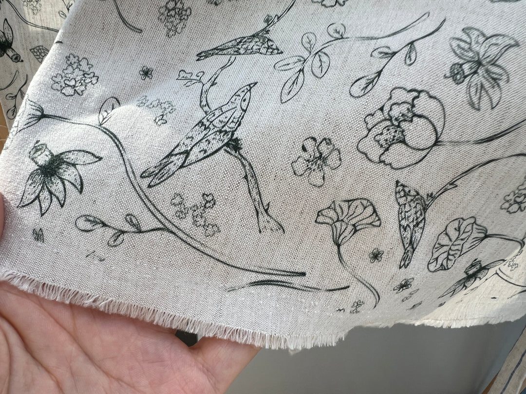 Birds of a Feather, Linen Rayon Silk Print Fabric, Design by Madeline, Madswick Studio, 8227 8228