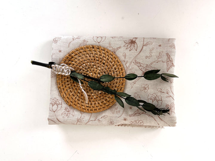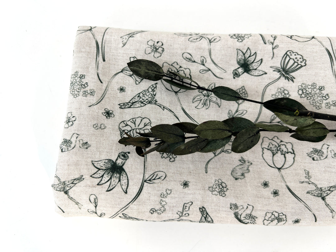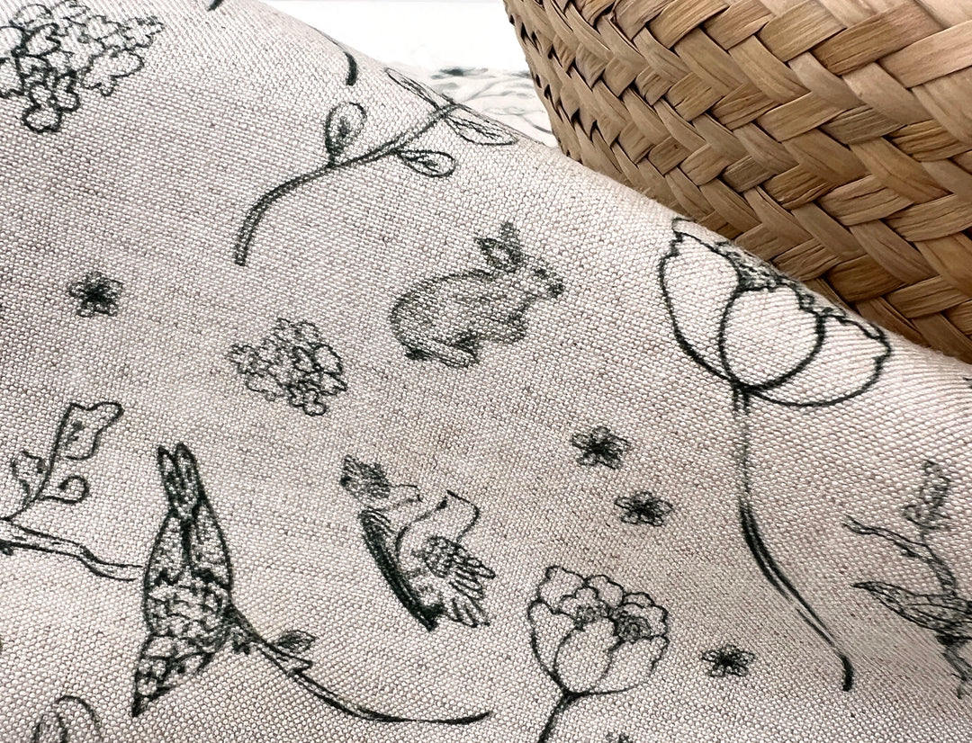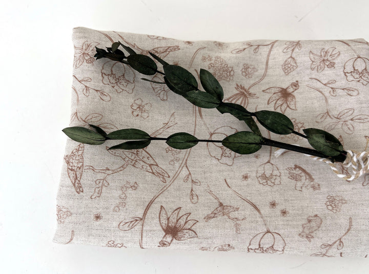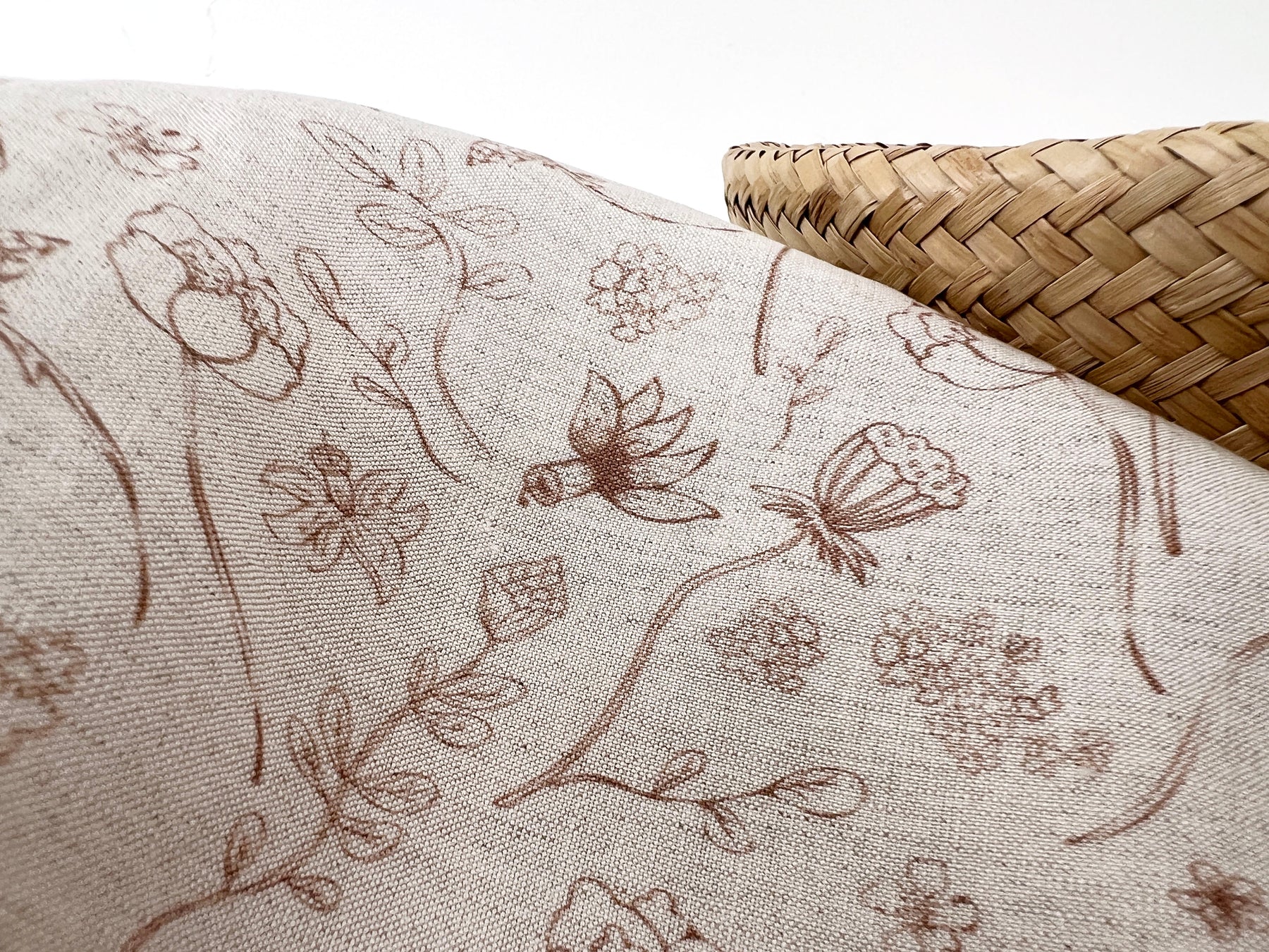Printed on a soft natural base, this linen-rayon-silk blend fabric has a smooth, pre-washed finish and a gentle, comfortable touch. The addition of 7% silk enhances the fabric’s softness, giving it a more refined handfeel. With its light-to-medium weight, it is versatile for both apparel and interior projects—ideal for dresses, blouses, scarves, or elegant décor pieces.