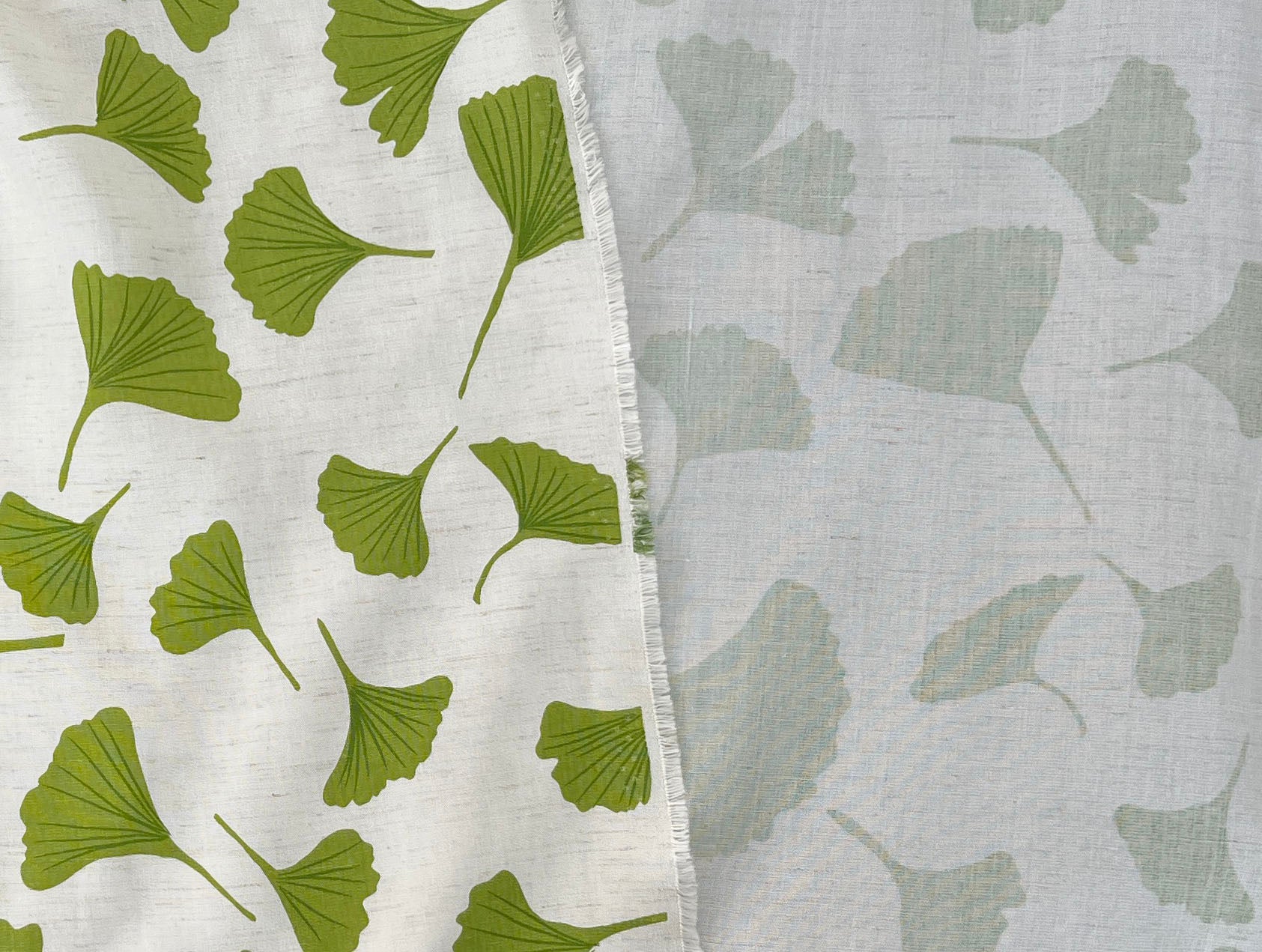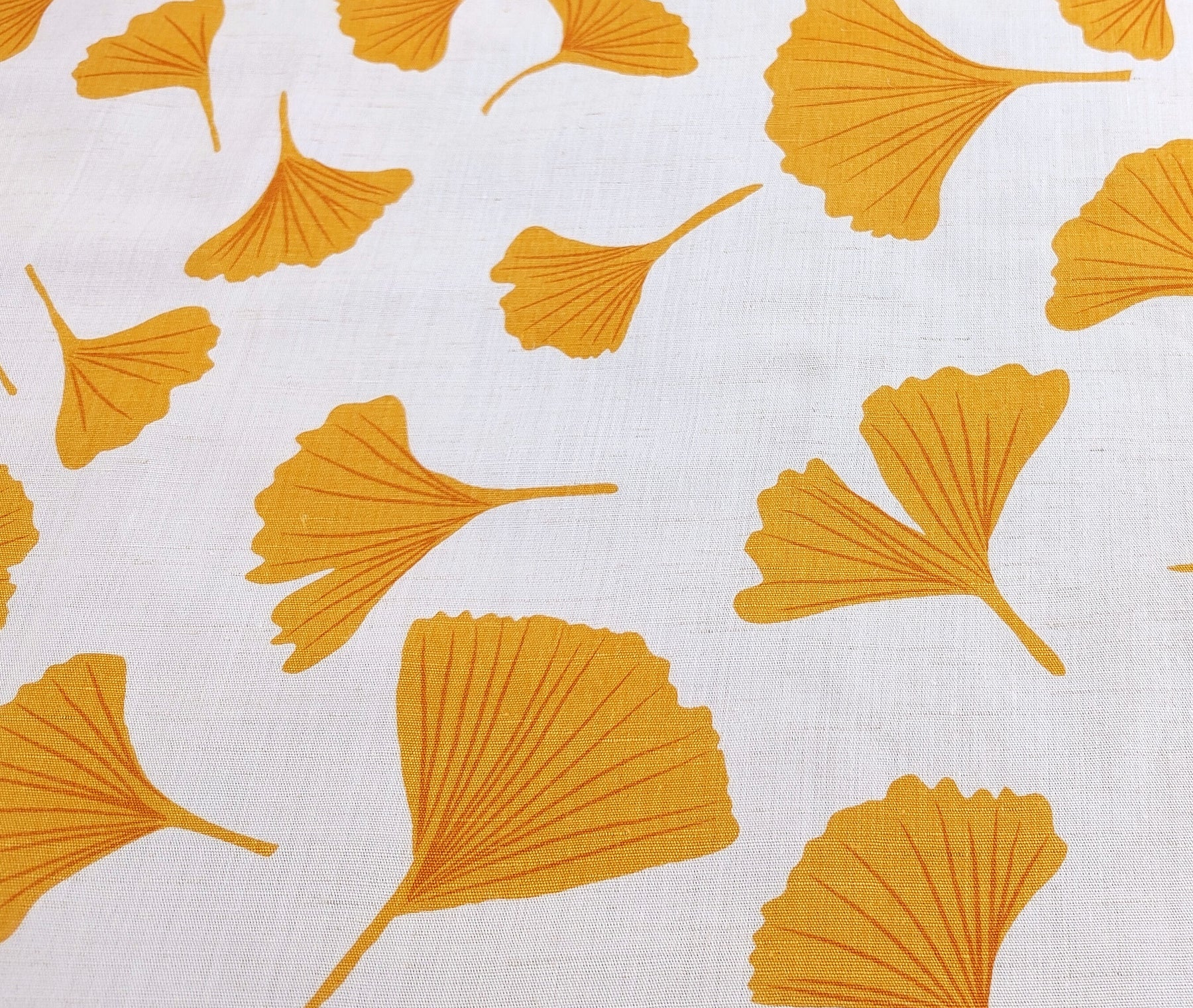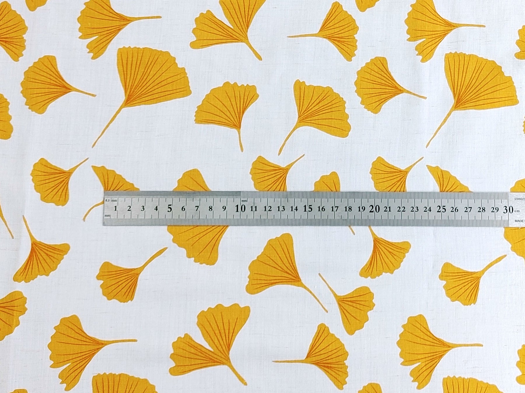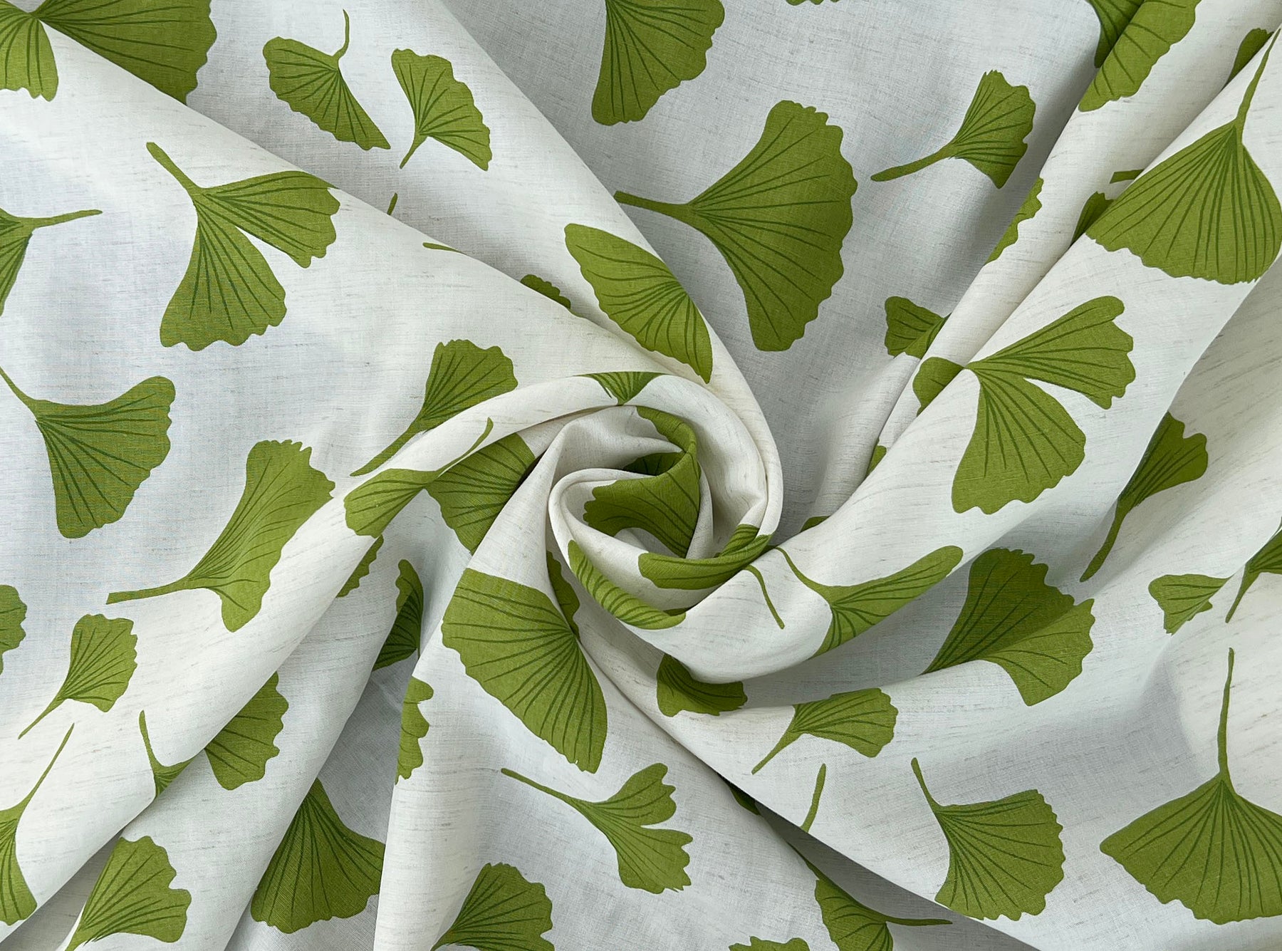 Enhance your sewing projects with our ginkgo Leaf Soft Linen Rayon Fabric. This fabric features a beautiful ginkgo leaf print and is composed of 7% linen and 93% rayon, providing a smooth, soft texture perfect for various uses. The lightweight material, at 119 g/sqm (3.51 oz per square yard), ensures ease of handling and comfort.