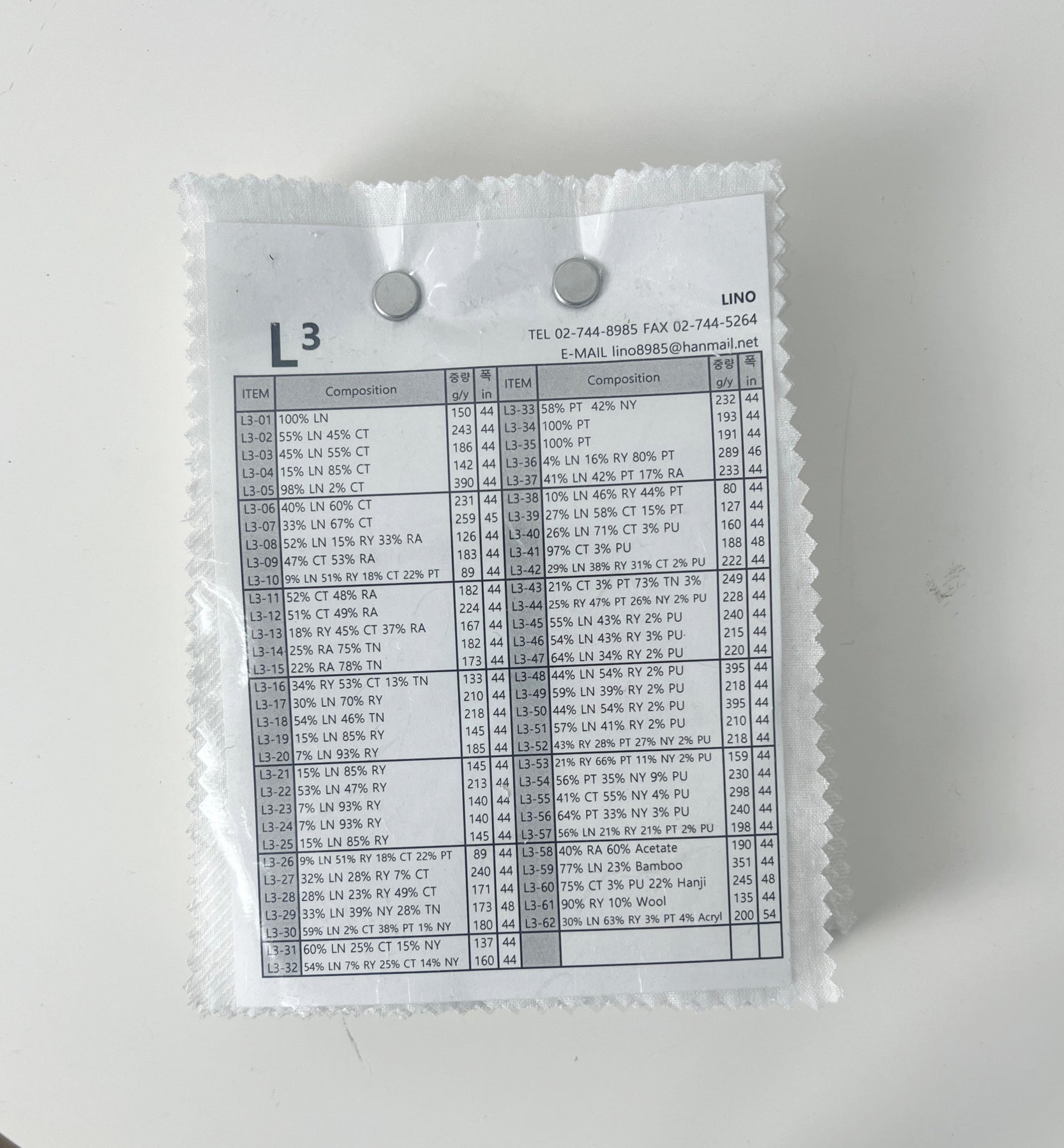 The L3 Collection offers a thoughtfully curated mix of linen-blend fabrics, combining linen with cotton, Tencel, nylon, wool, ramie, polyester, spandex, and more. Most fabrics come in off-white or natural tones—either undyed, unbleached, or bleached—making them ideal for DIY dyeing, printing projects, or working with neutral color palettes.