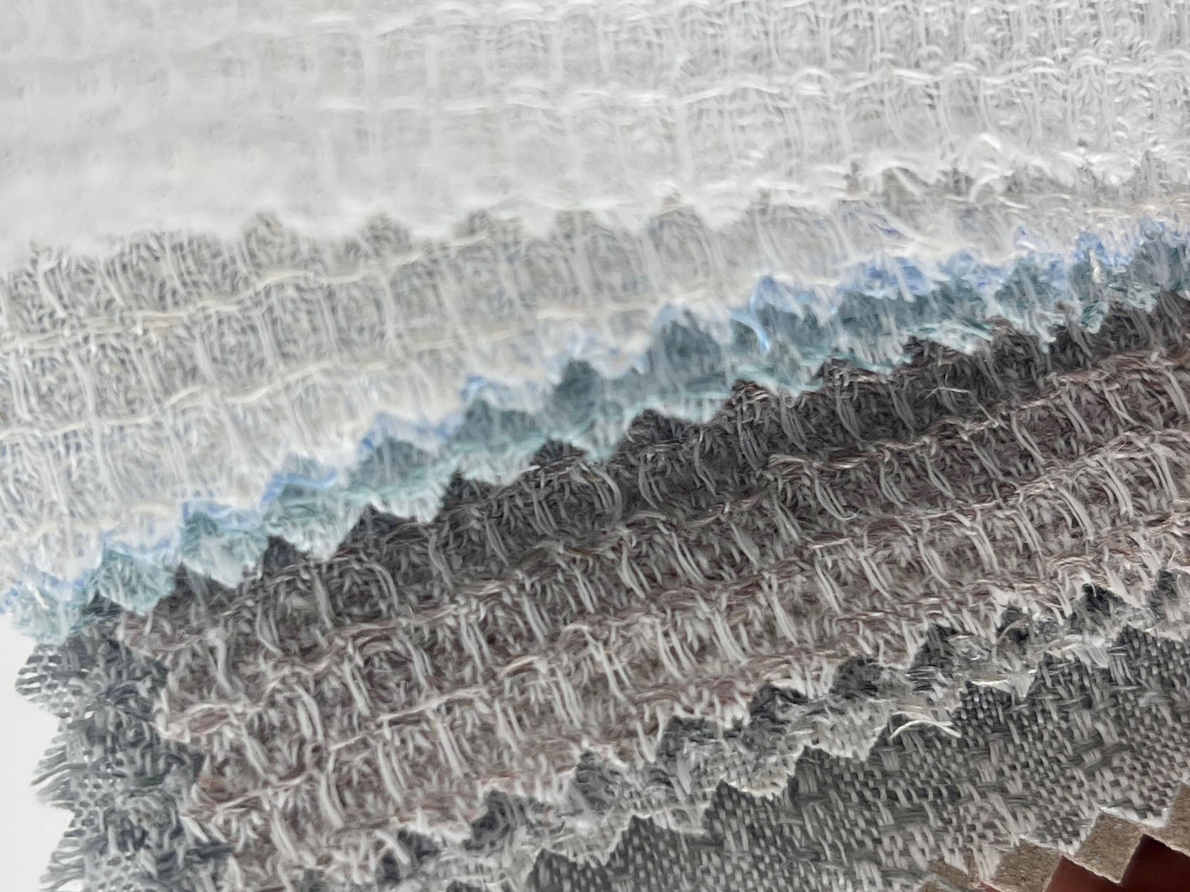 The W2 Collection features a curated selection of 100% linen fabrics, including waffle-textured linen and jacquard weaves. The fabrics range from soft melange effects and crisp whites to subtle two-tone finishes, offering a variety of looks and textures. Fabric widths range from 52 to 54 inches.