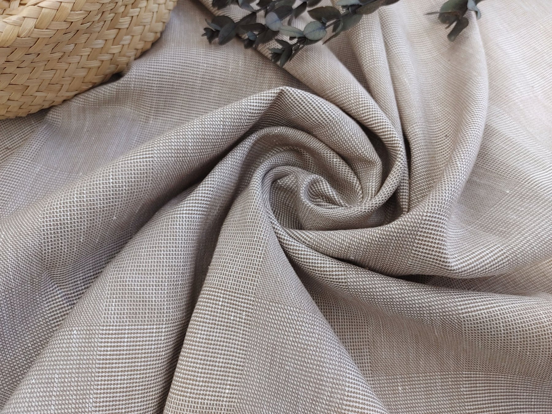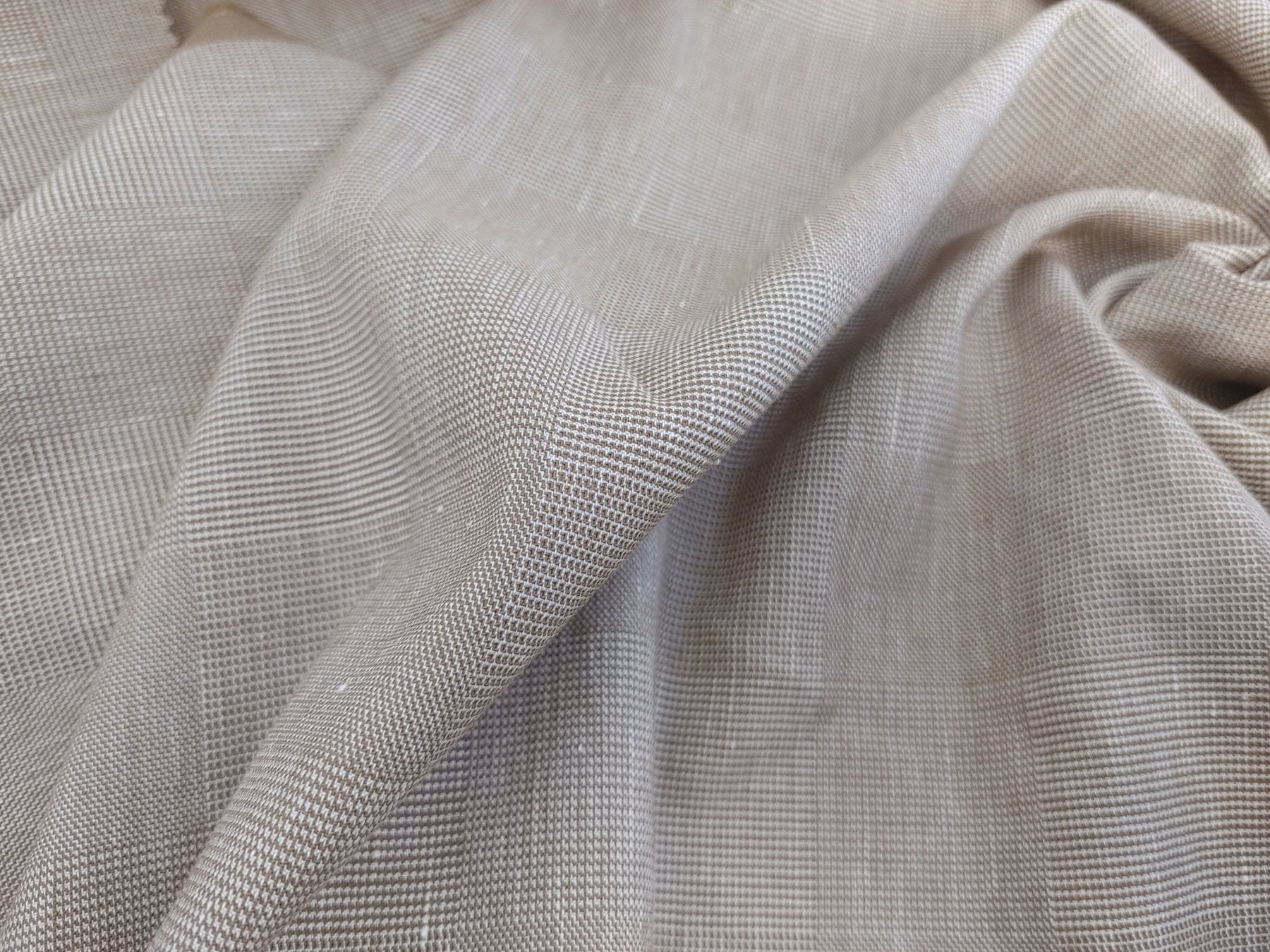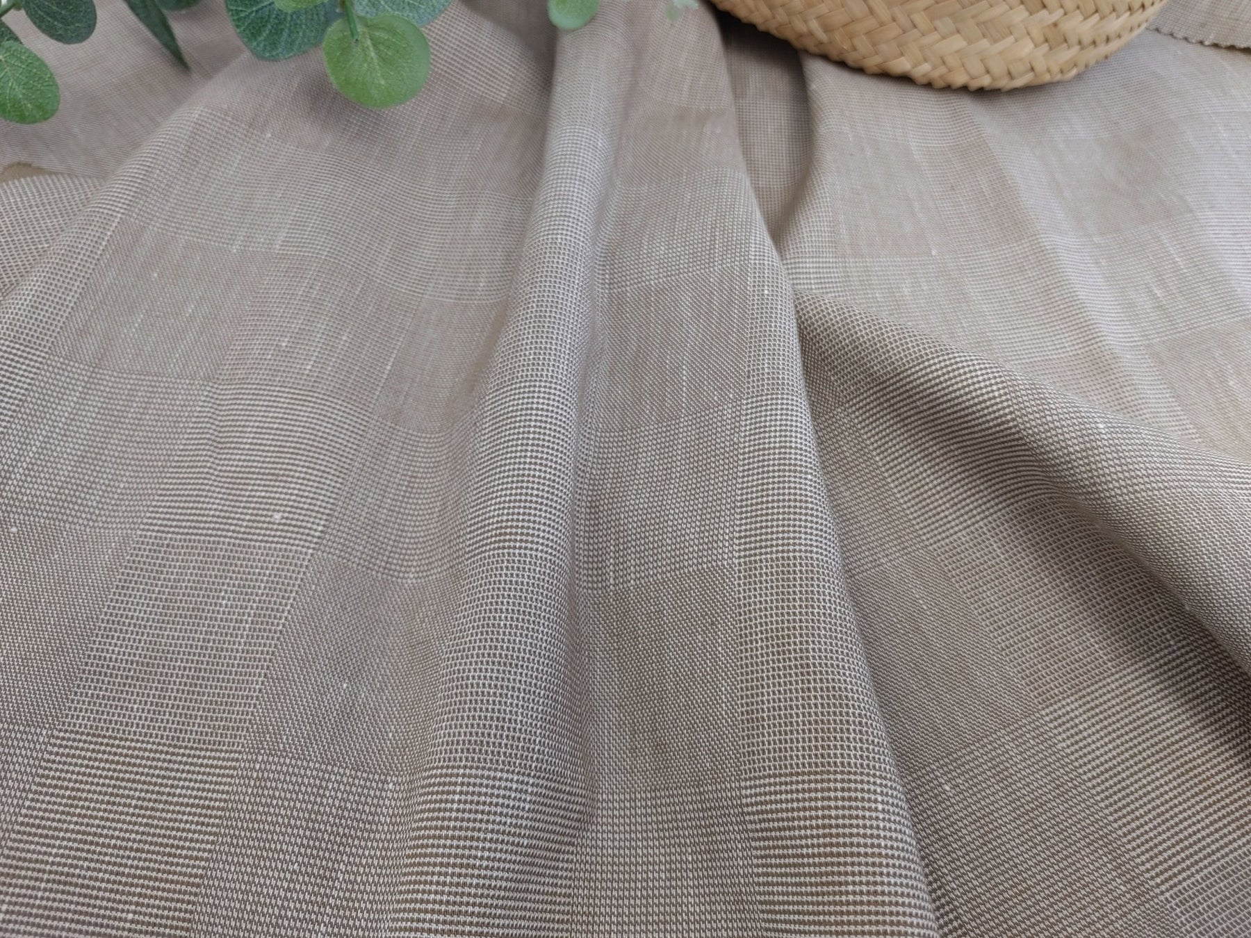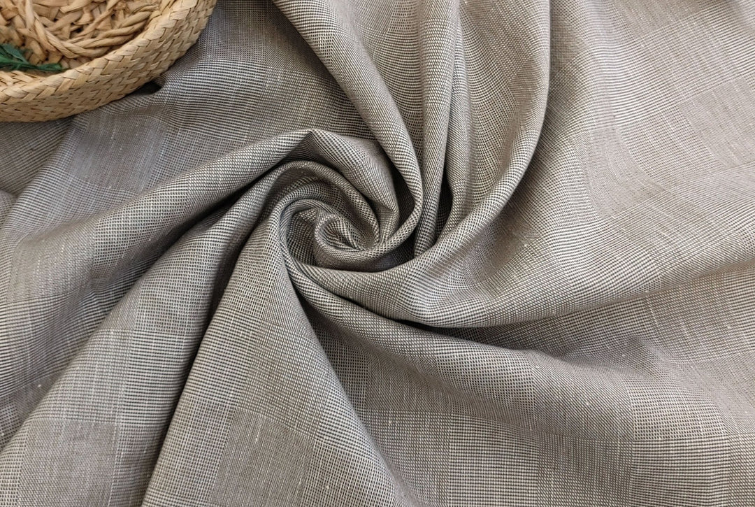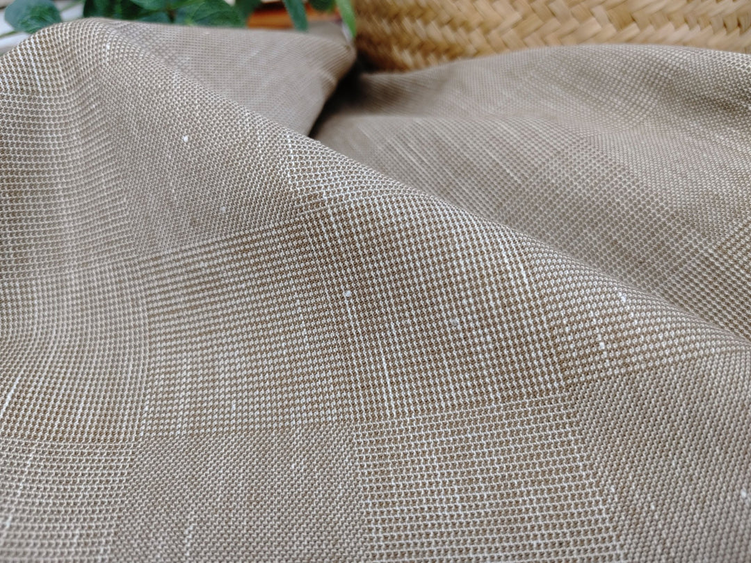 EaseBlend Beige Linen Stretch Fabric: Subtle Checkered Harmony 7295 - The Linen Lab - Beige