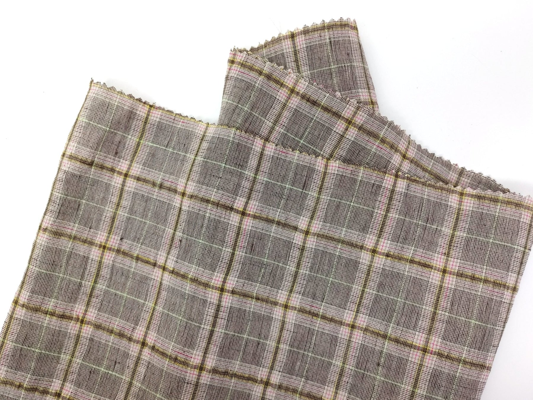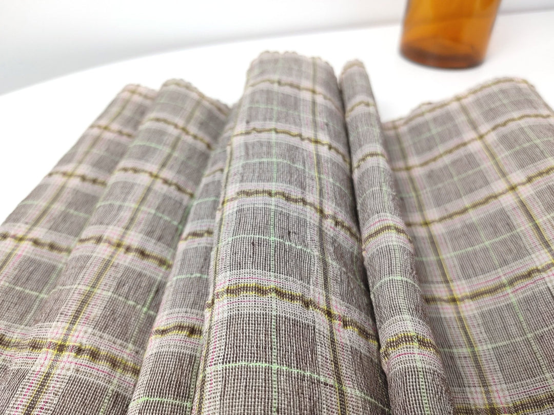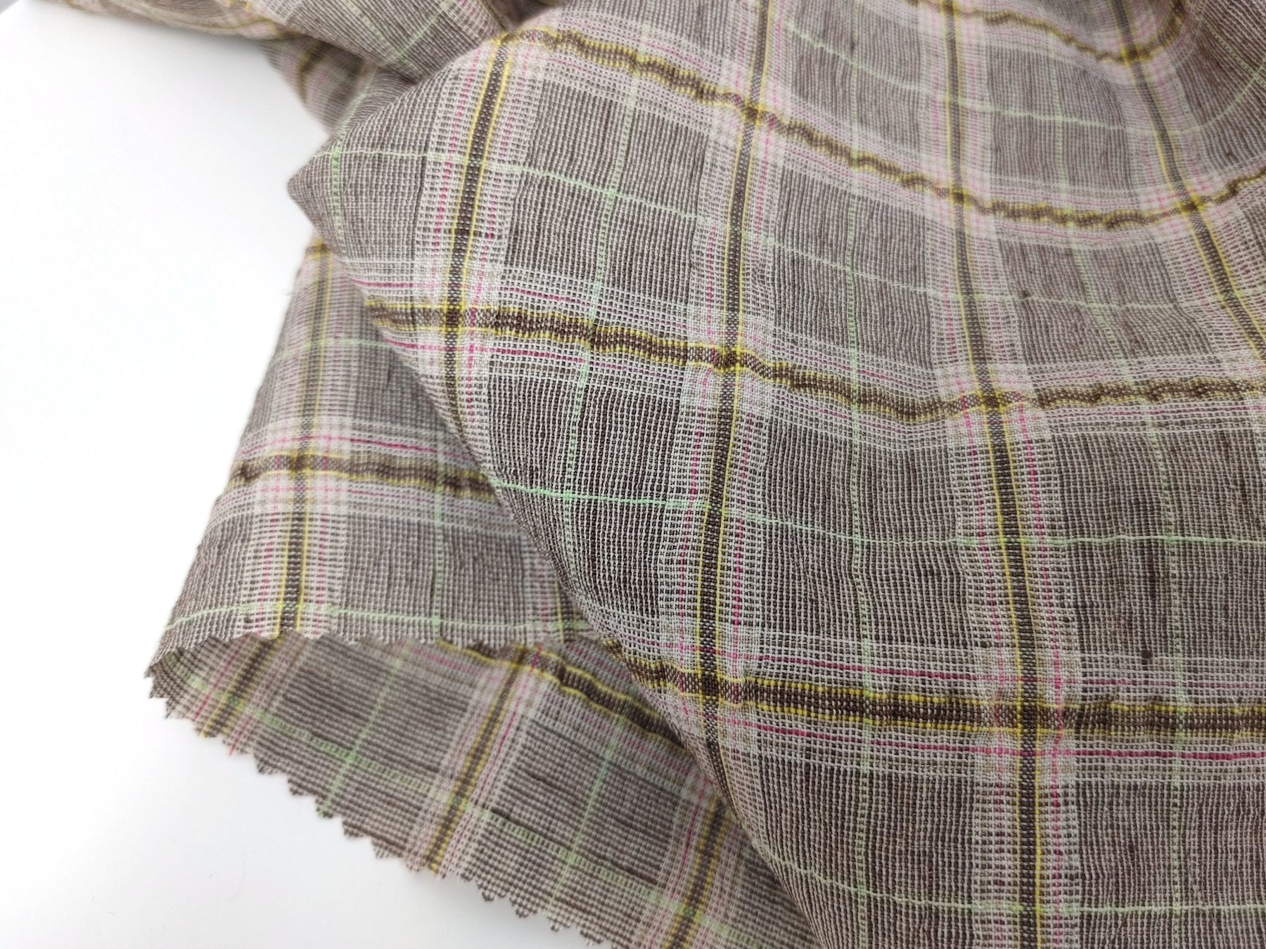 Introducing our Linen Polyester Stretch Fabric in a stylish Tartan Plaid pattern, featuring a mix of brown and yellow colors. With a composition of 60% linen, 38% polyester, and 2% PU, this lightweight fabric (125 g/sqm or 3.68 oz per square yard) incorporates a natural wrinkle effect for added texture. Pre-washed for a soft feel and offering elasticity, it's the perfect choice for comfortable and trendy creations.