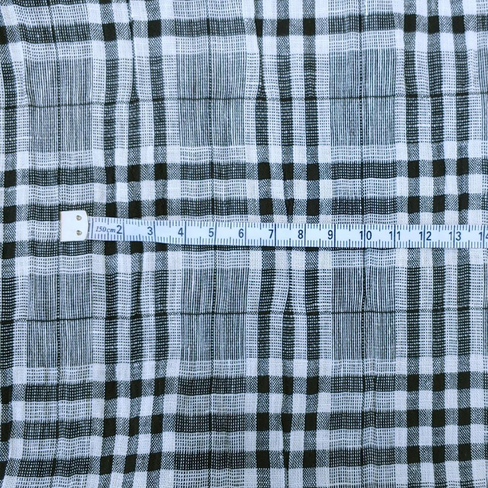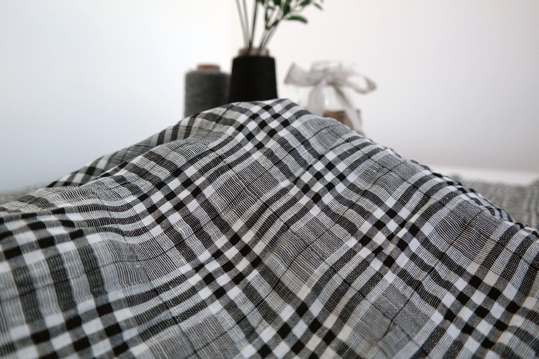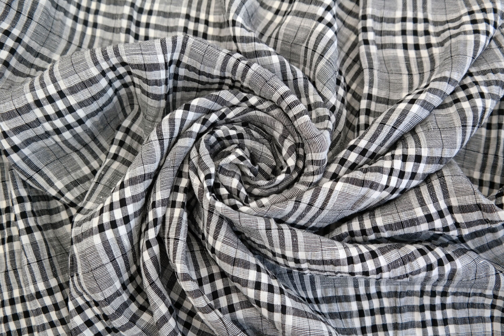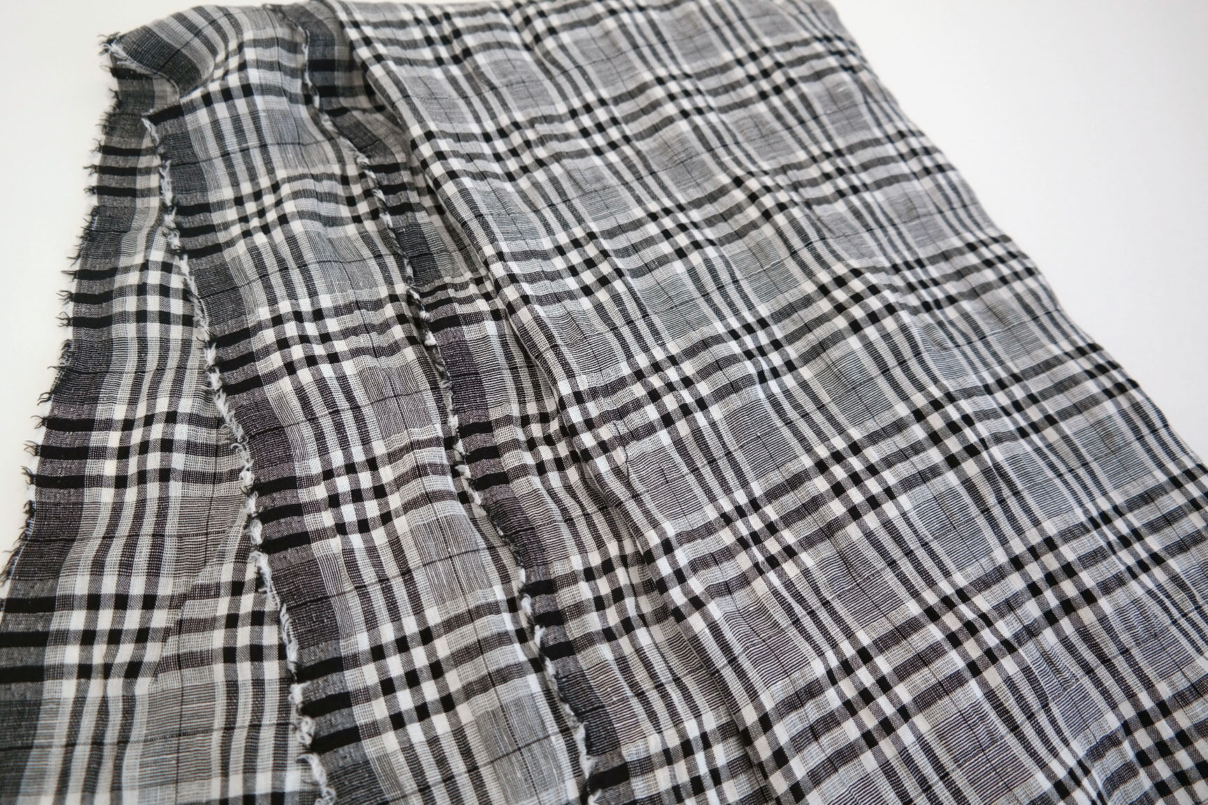 Linen Rayon Plaid Stretch Wrinkled Fabric (6713) - The Linen Lab - White and Black
