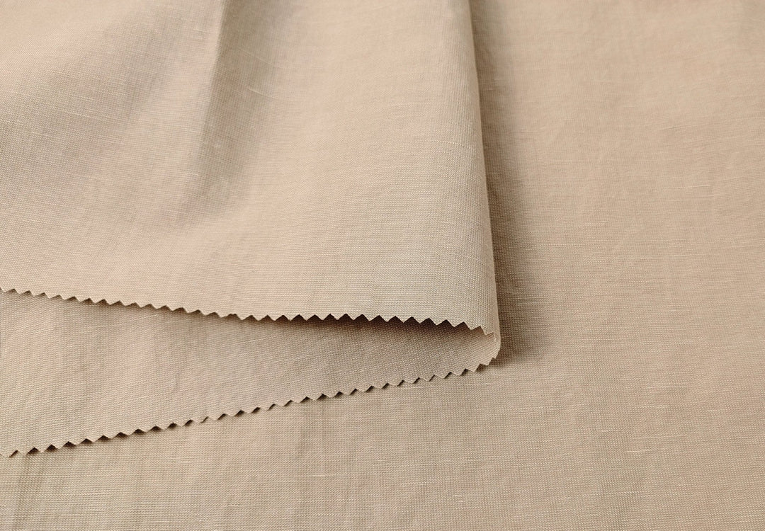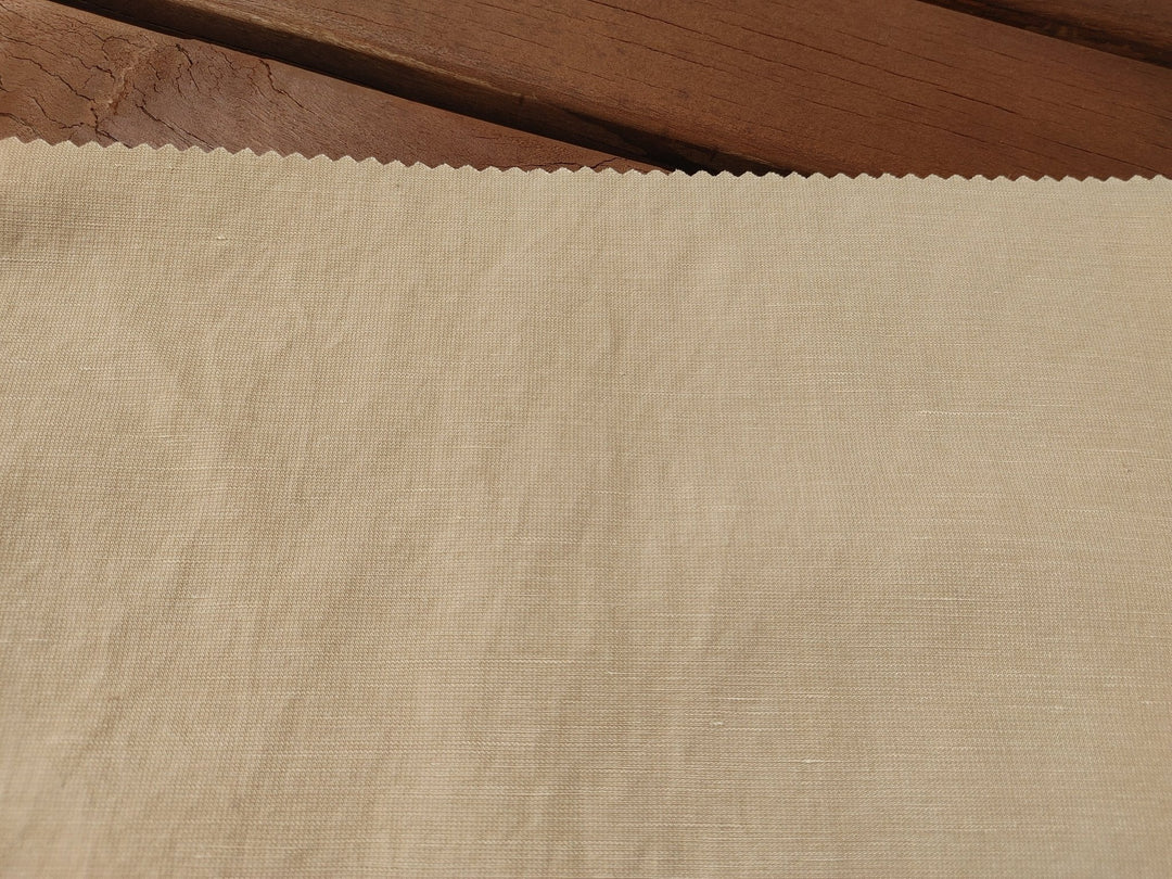 Soft Beige Linen Blend: Dobby Weave with Warp Span Stretch Fabric 7787 - The Linen Lab - Beige