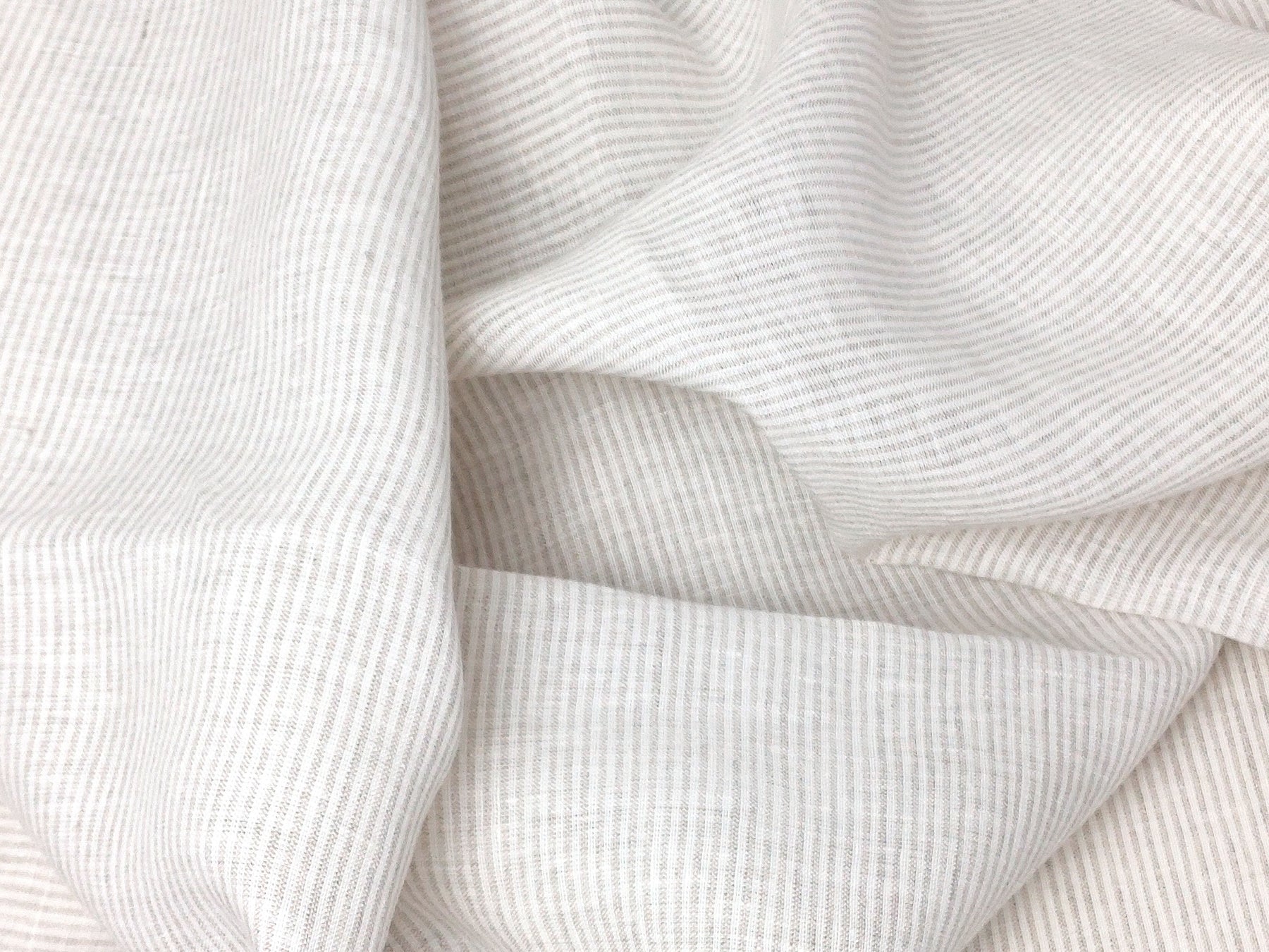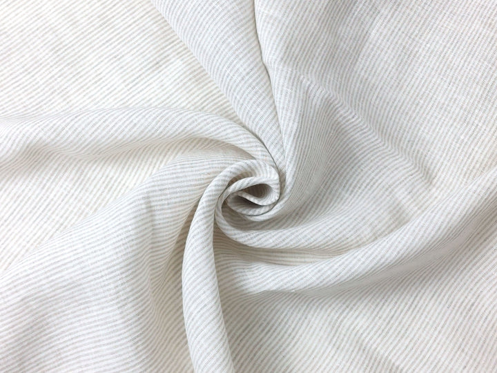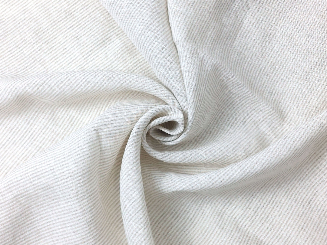 Whether you're creating breezy apparel or stylish home textiles, this thin-striped linen offers a perfect blend of understated elegance and functionality.