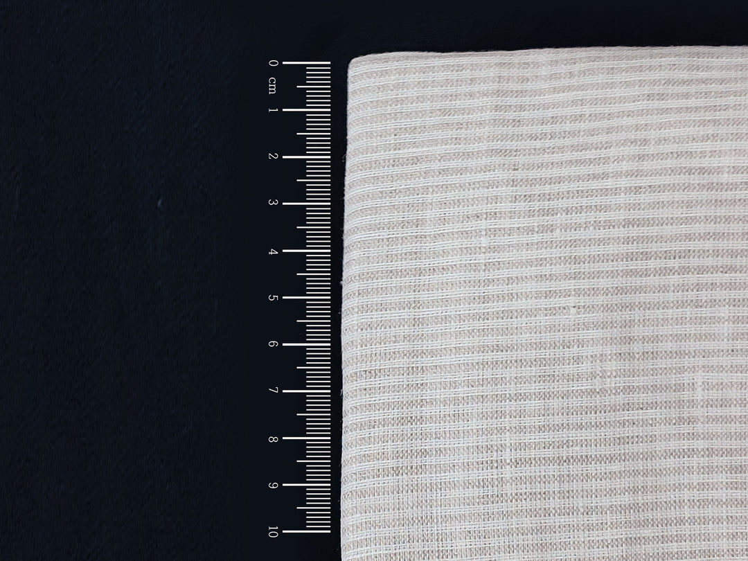 100% Linen Fabric with Light Beige Thin Horizontal Stripe 8007