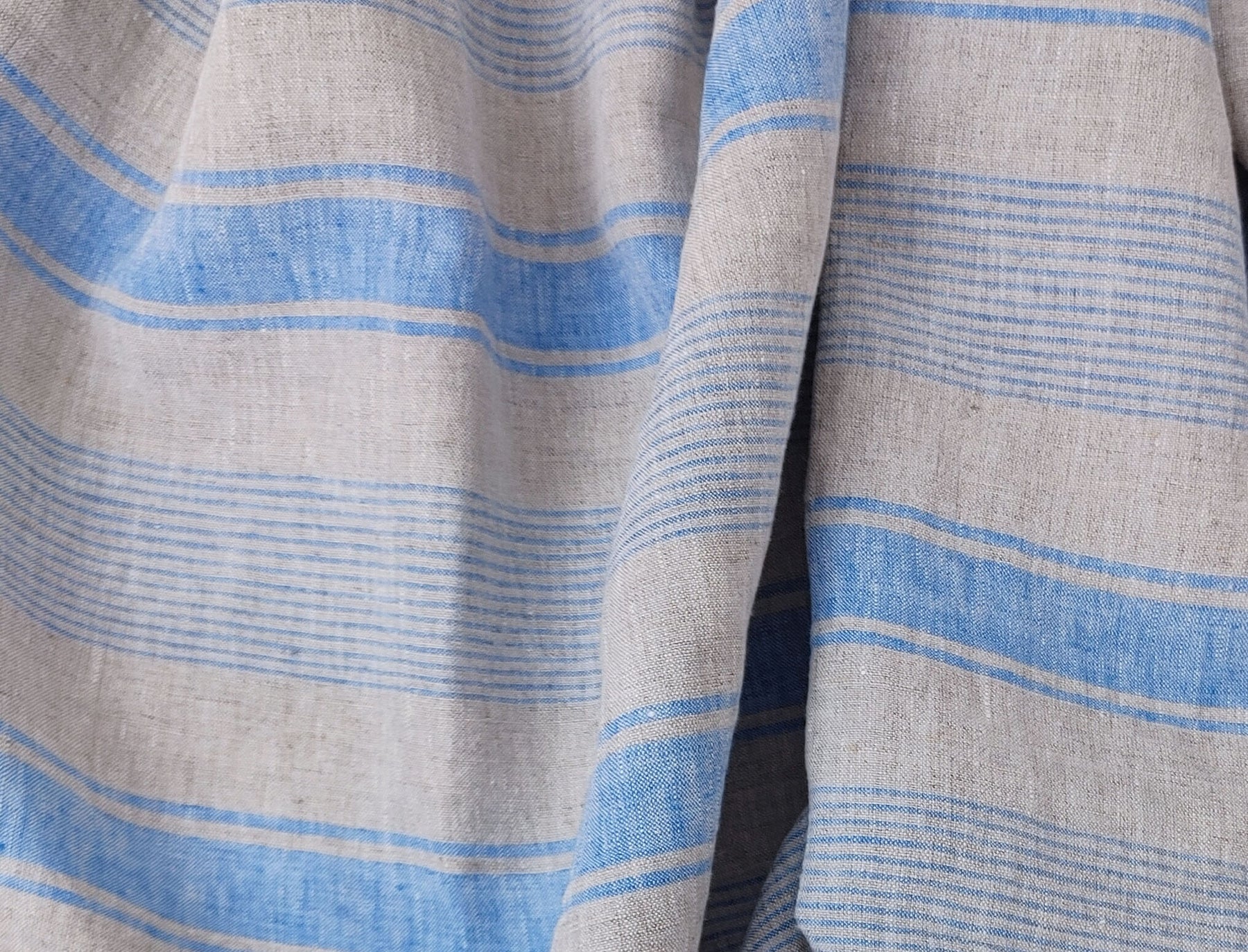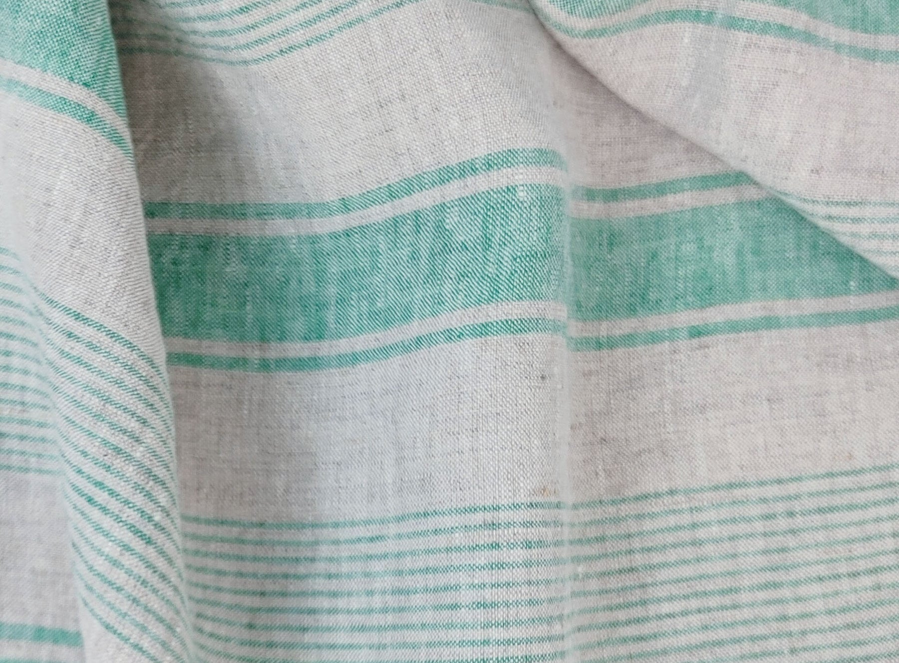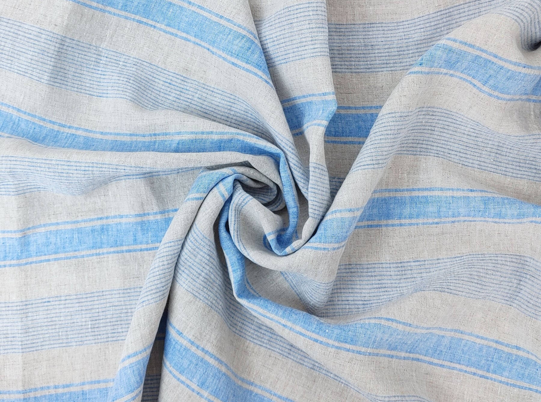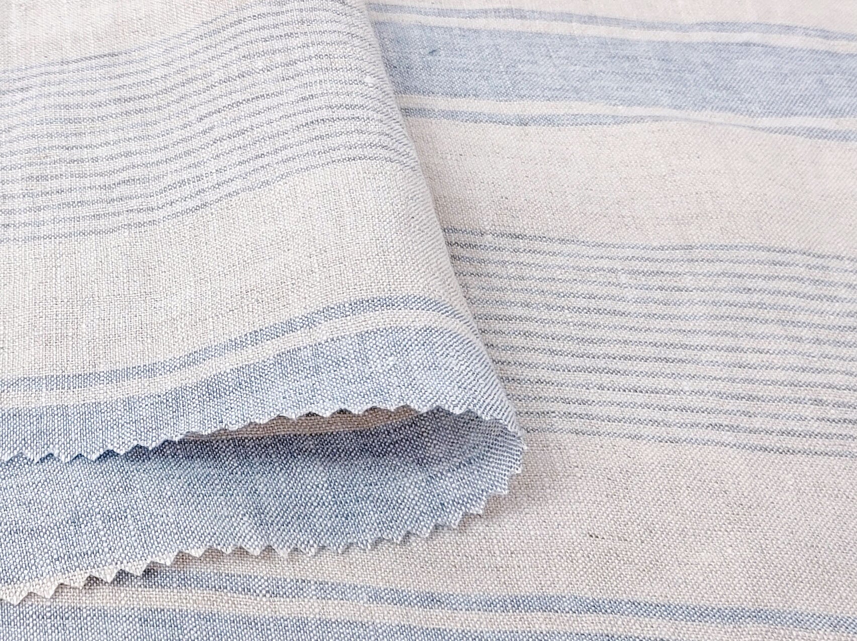 A signature fabric from The Linen Lab, this yarn-dyed 100% linen showcases clean horizontal stripe patterns in subtle, modern colorways. Crafted with 14s and 40LEA linen yarn, it has a naturally textured surface and a medium-weight body. The pre-washed finish adds softness without losing the crisp handfeel of authentic linen. Ideal for relaxed shirts, dresses, or light outerwear, as well as structured