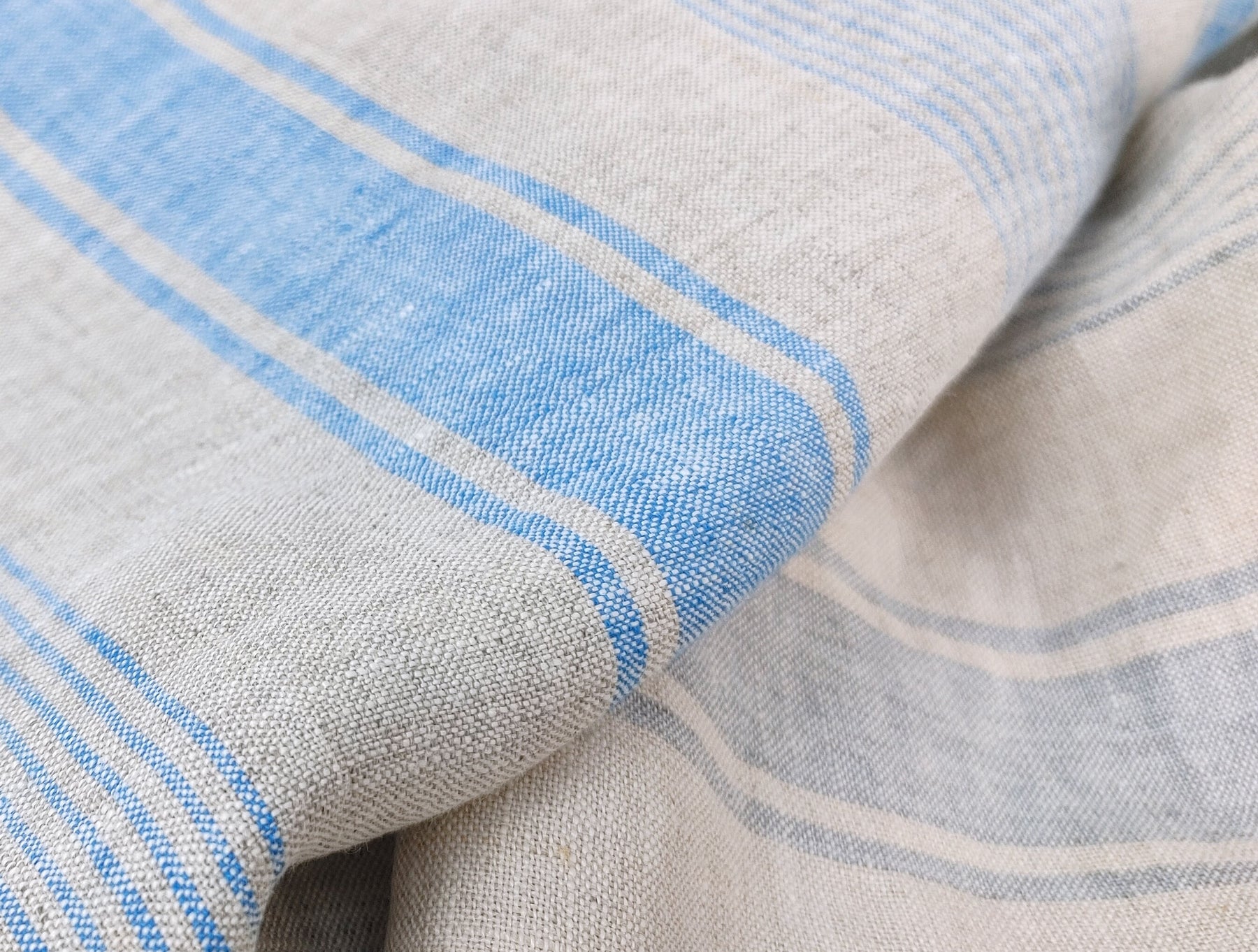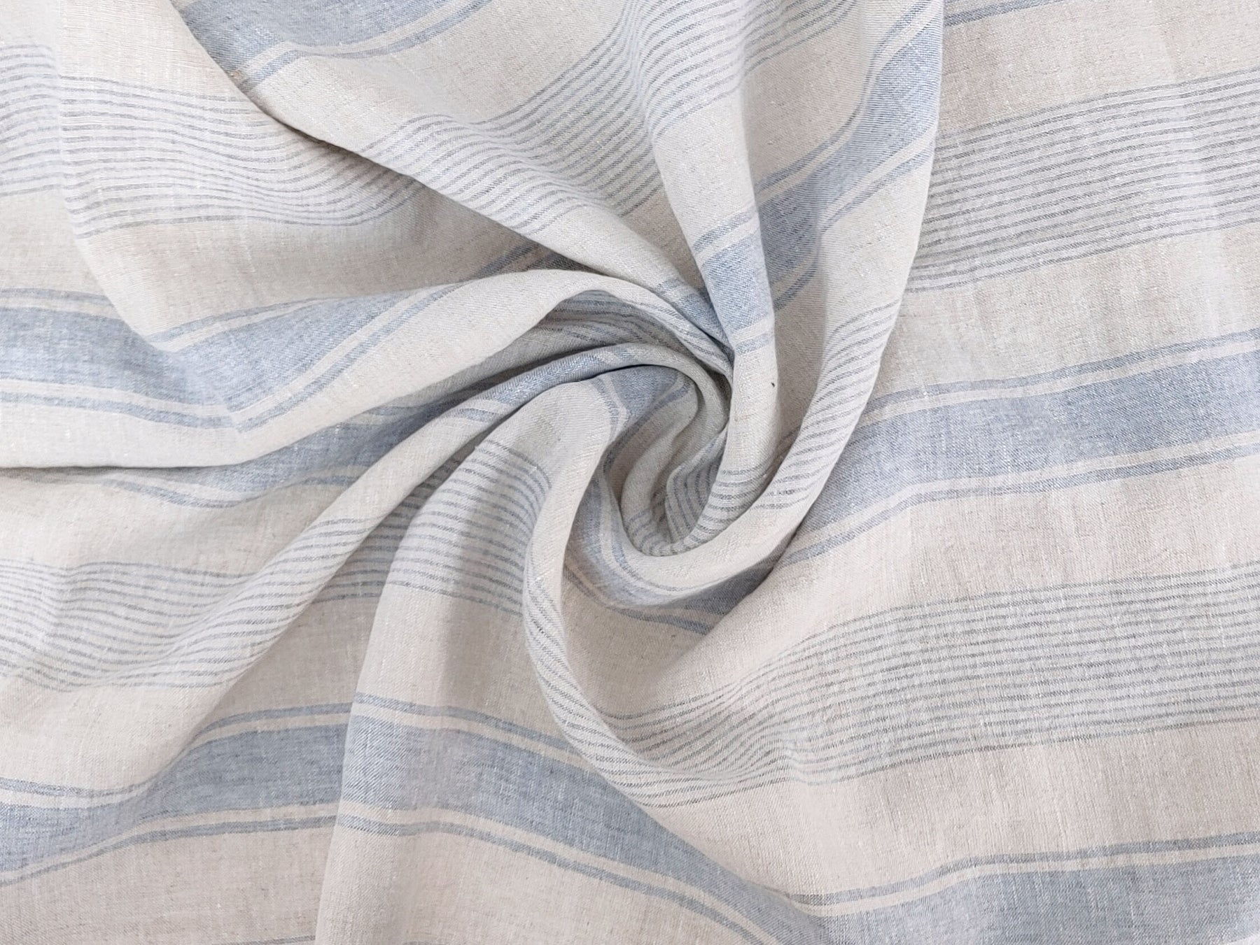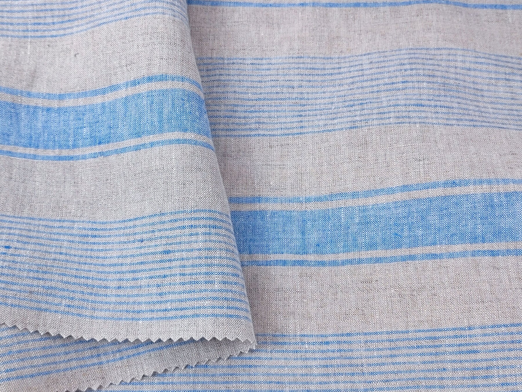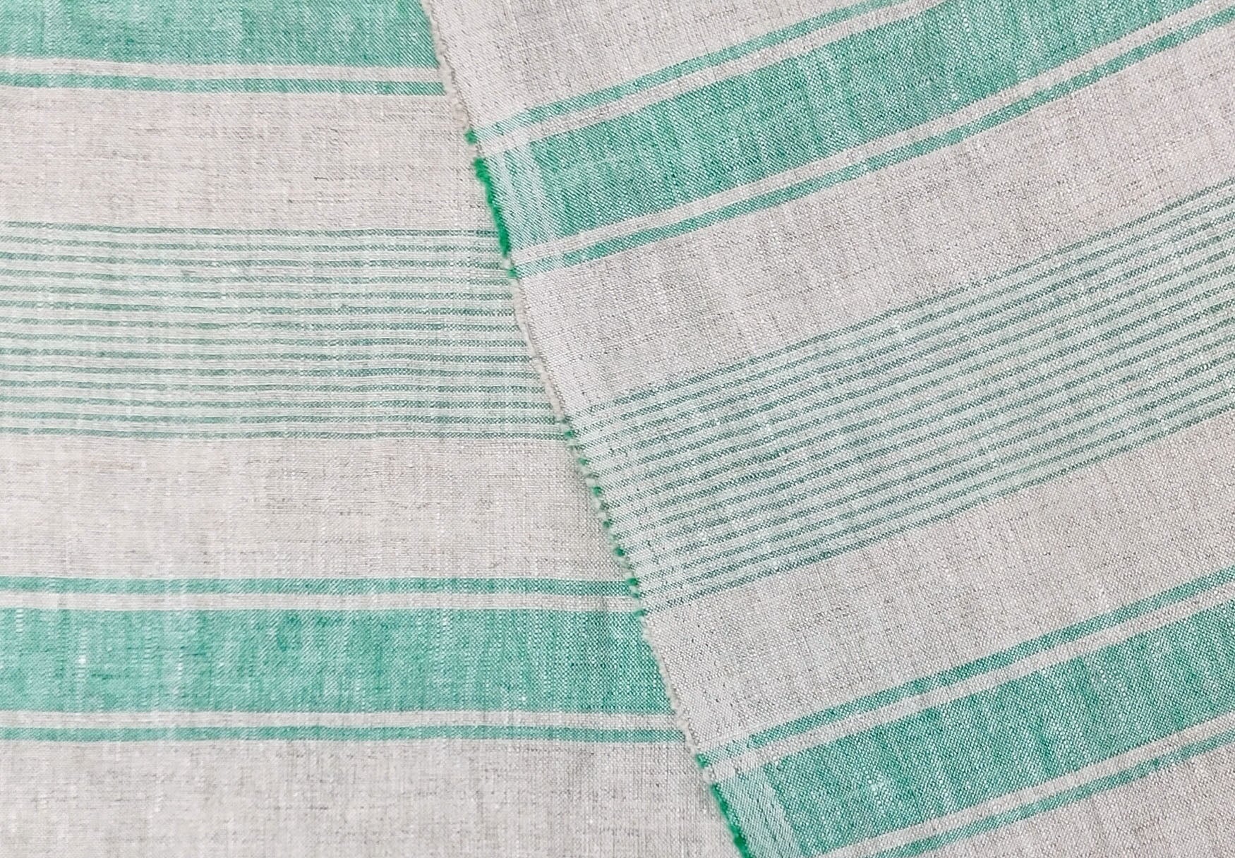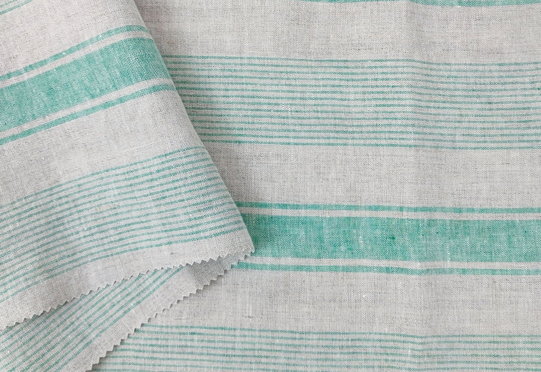 A signature fabric from The Linen Lab, this yarn-dyed 100% linen showcases clean horizontal stripe patterns in subtle, modern colorways. Crafted with 14s and 40LEA linen yarn, it has a naturally textured surface and a medium-weight body. The pre-washed finish adds softness without losing the crisp handfeel of authentic linen. Ideal for relaxed shirts, dresses, or light outerwear, as well as structured
