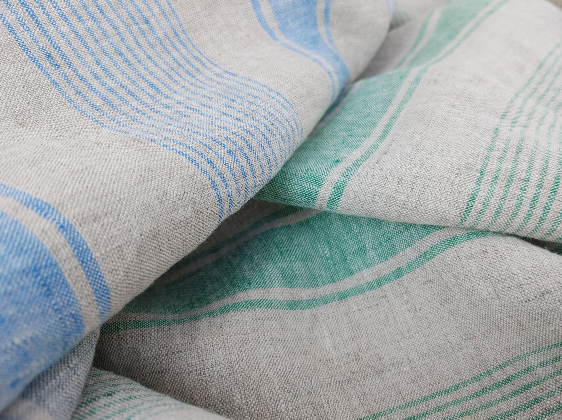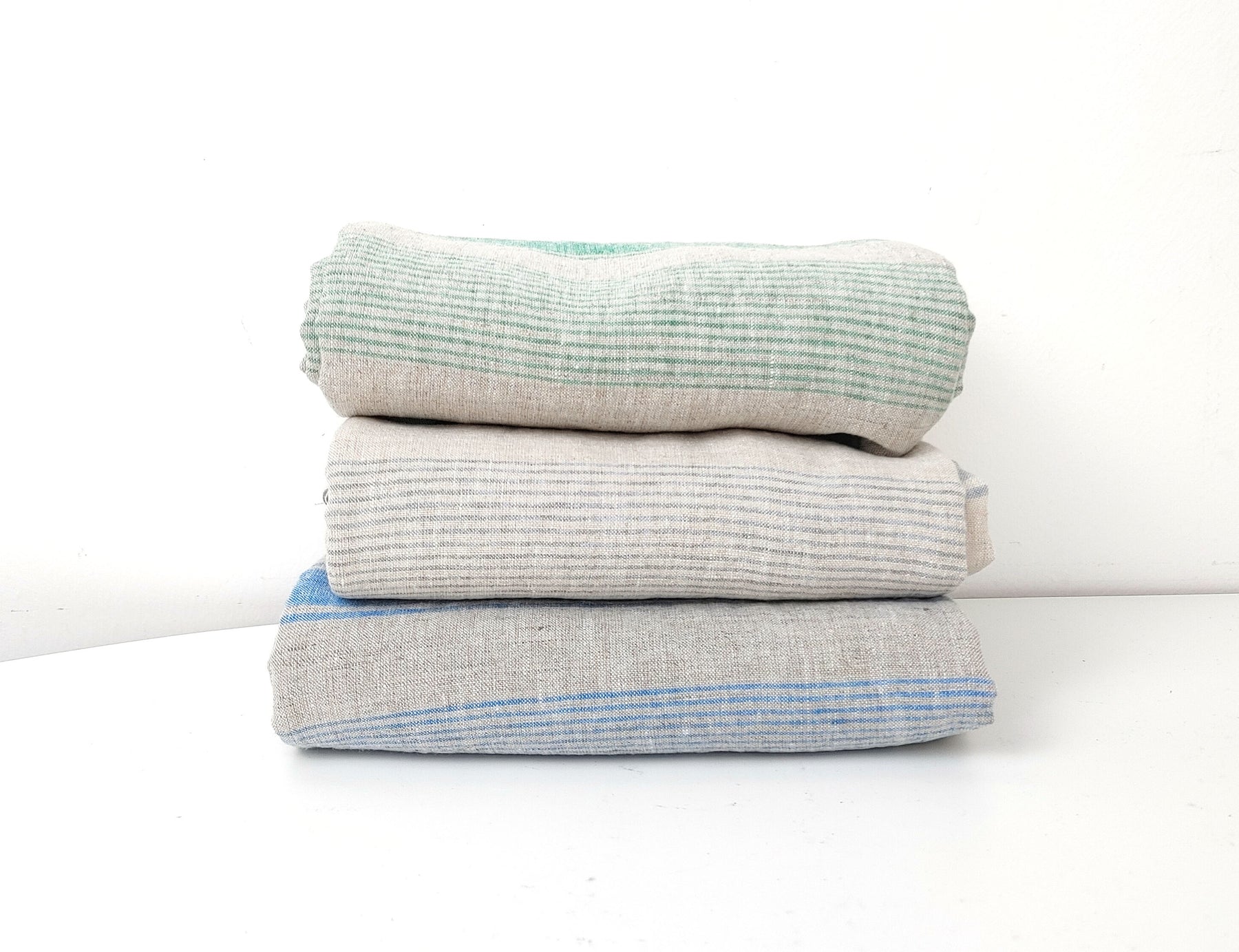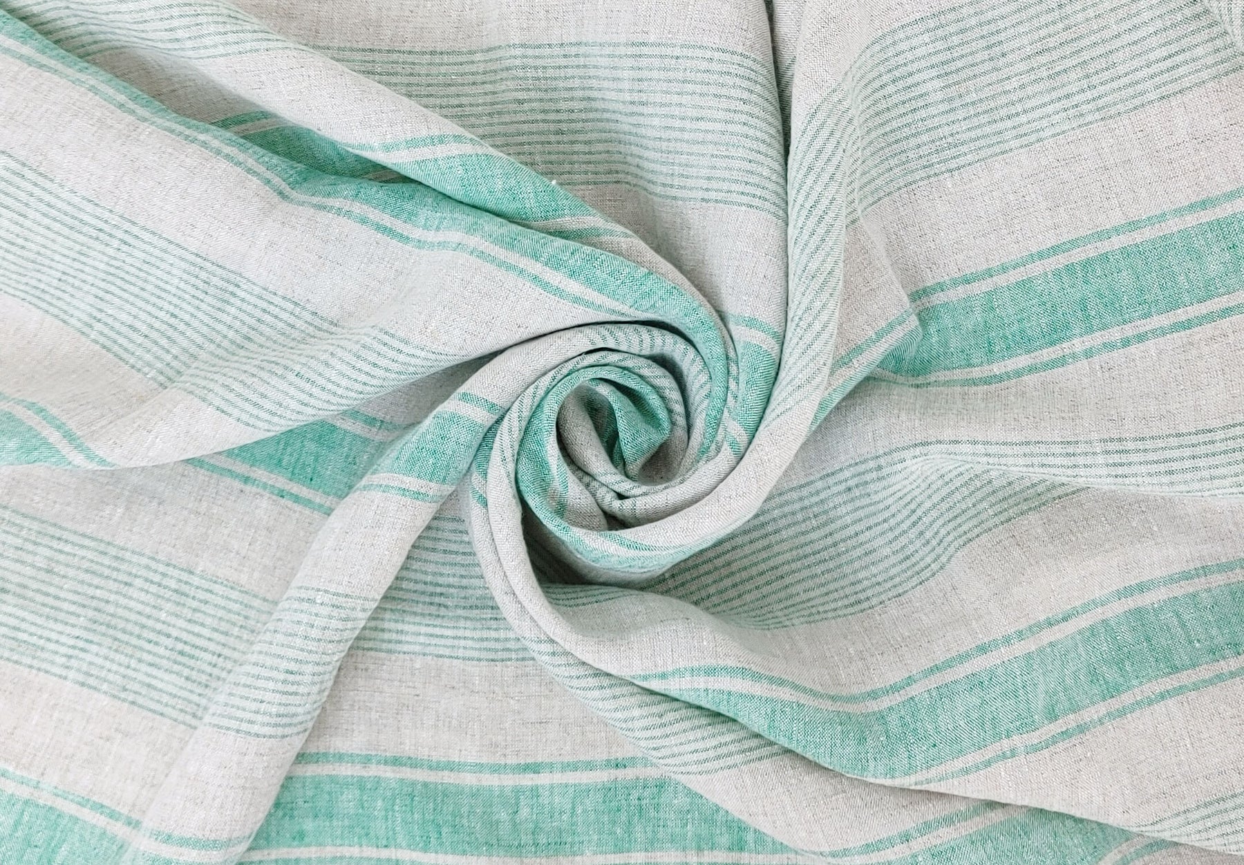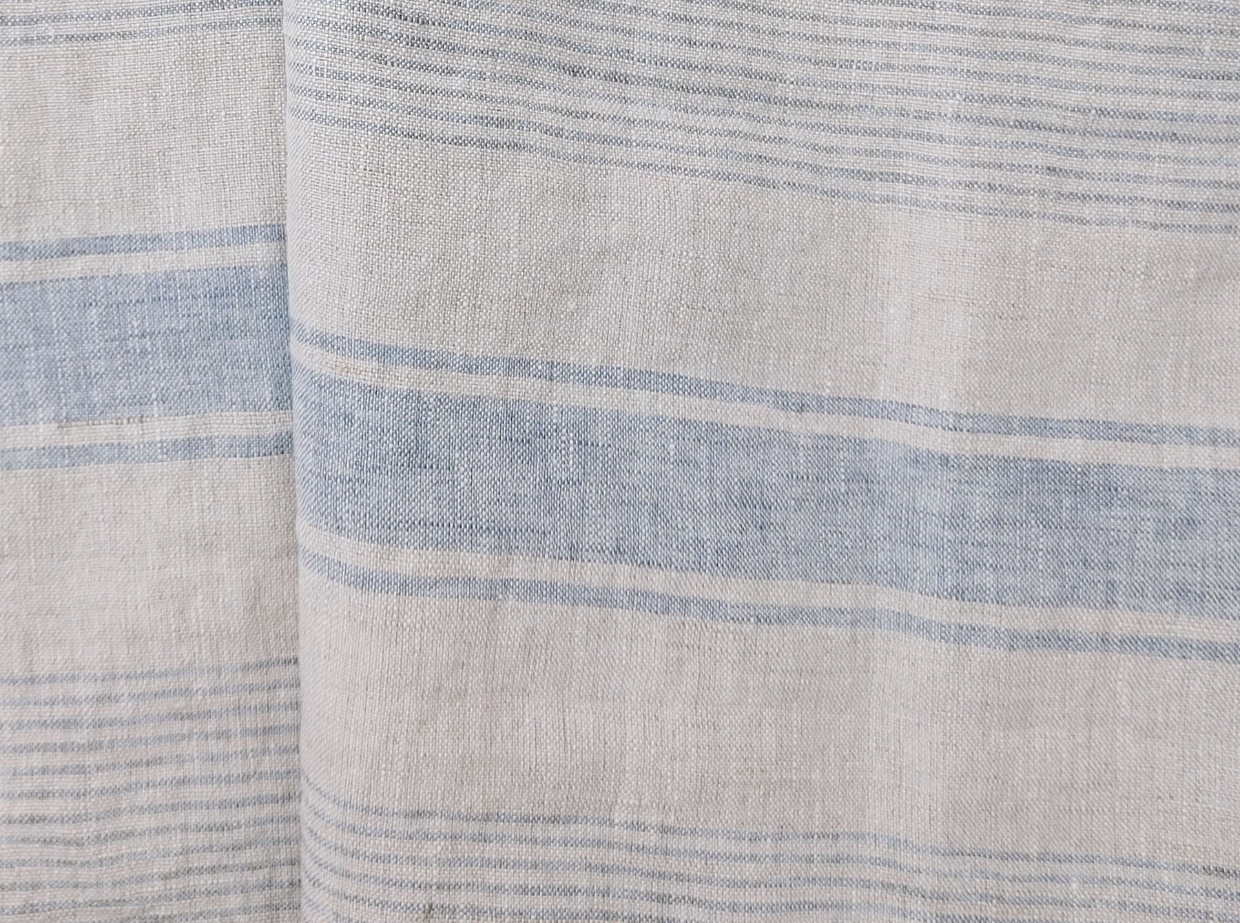 A signature fabric from The Linen Lab, this yarn-dyed 100% linen showcases clean horizontal stripe patterns in subtle, modern colorways. Crafted with 14s and 40LEA linen yarn, it has a naturally textured surface and a medium-weight body. The pre-washed finish adds softness without losing the crisp handfeel of authentic linen. Ideal for relaxed shirts, dresses, or light outerwear, as well as structured