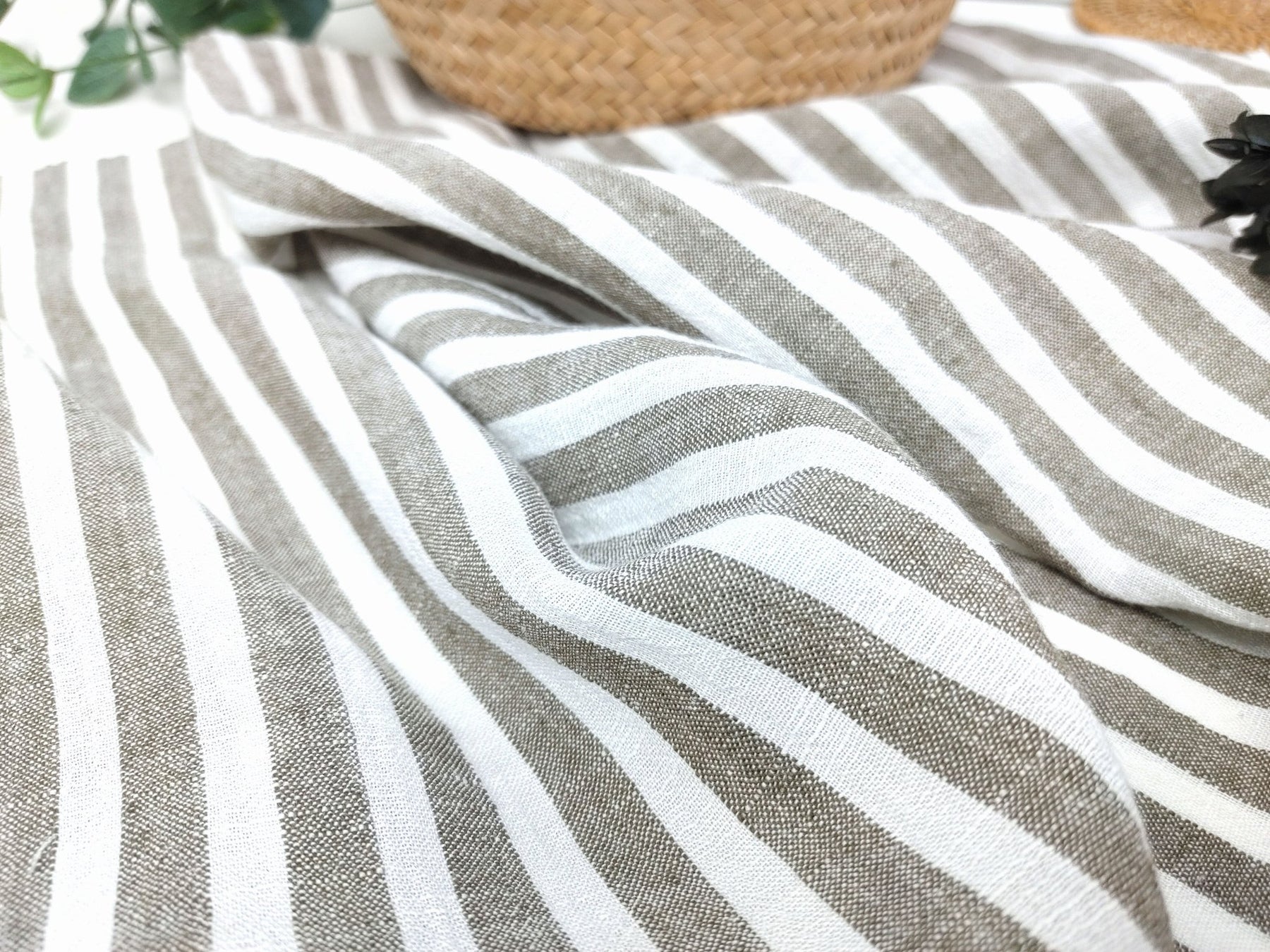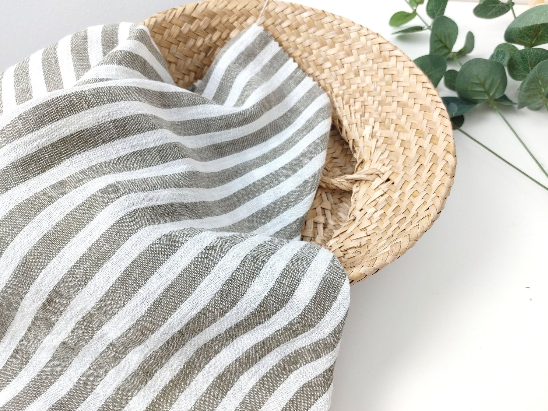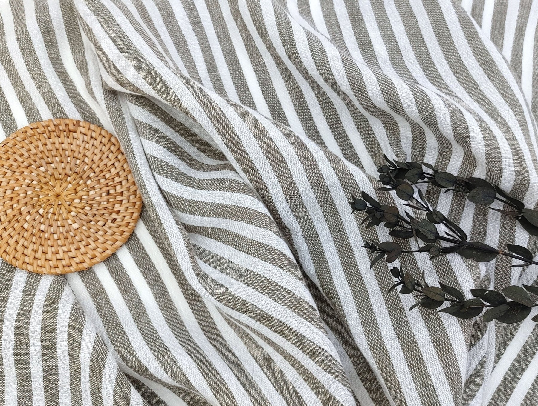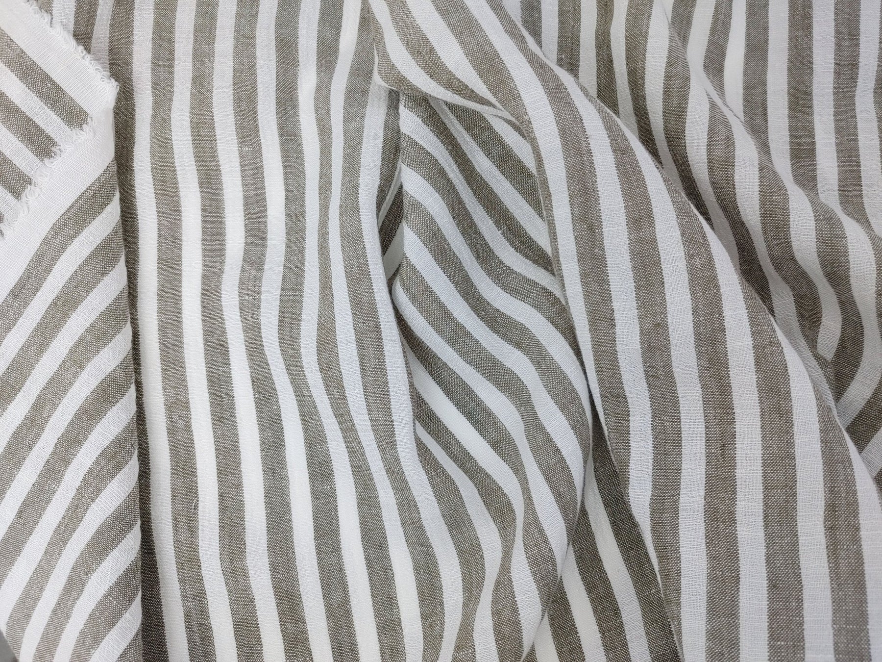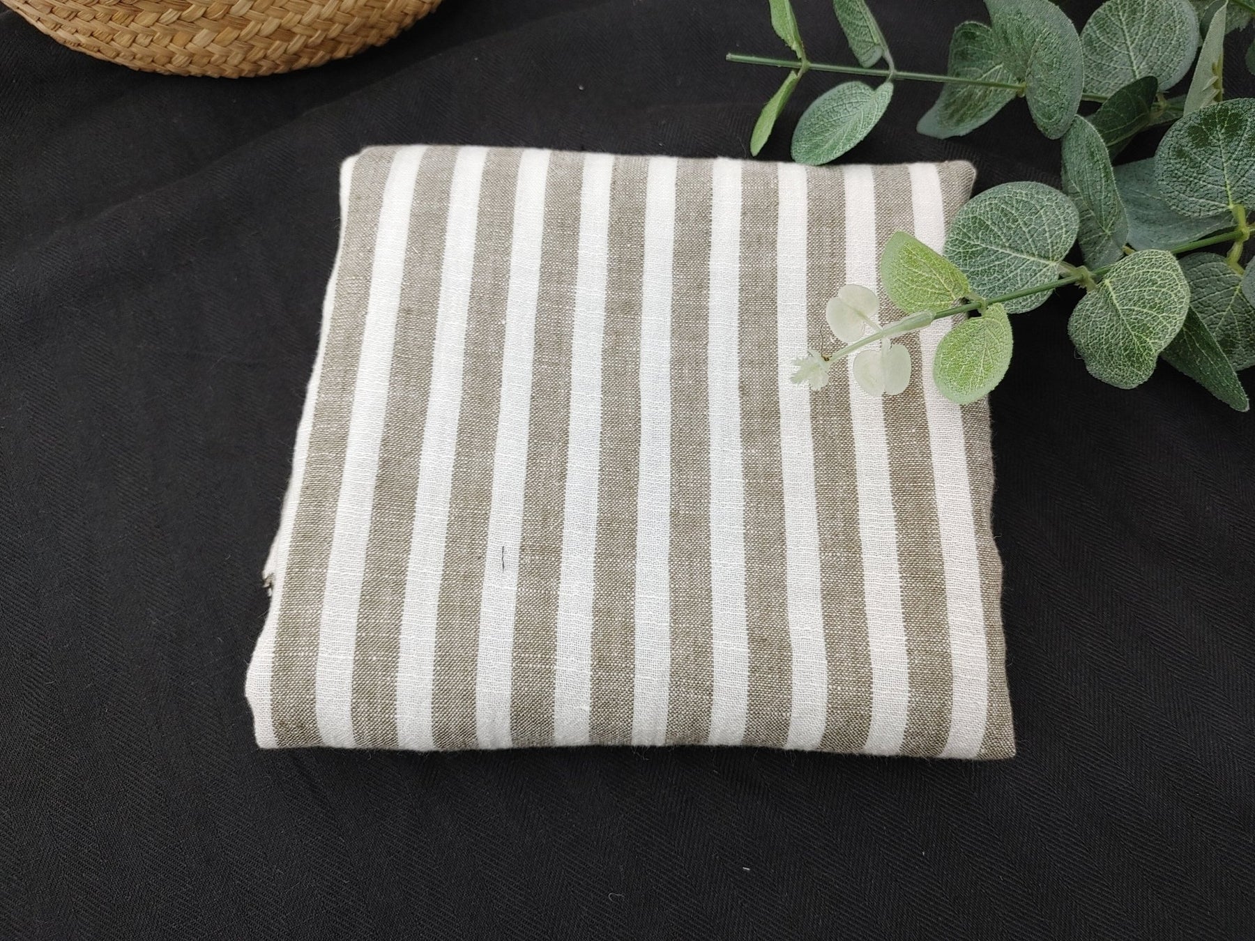 Explore the comfort and subtle charm of "Effortless Stripes," a linen-rayon blend fabric designed to elevate your creations. Comprising 75% linen and 25% rayon, this fabric features a unique interplay of high-twisted linen yarn and linen-rayon mixed yarn, offering a soft touch and a delicate wrinkle effect.