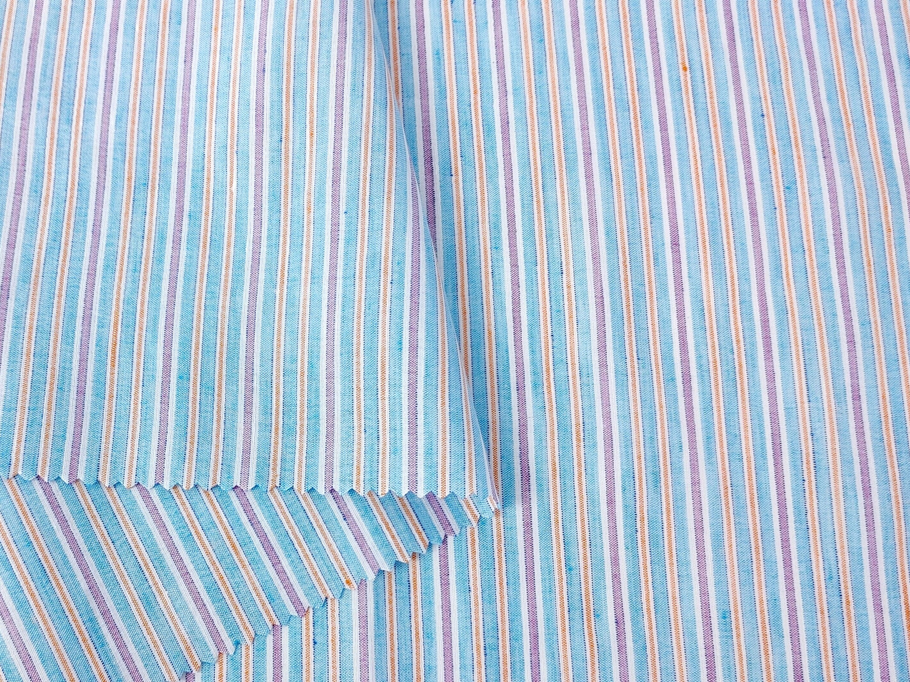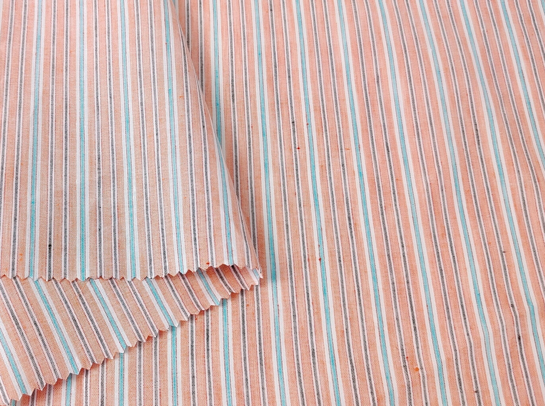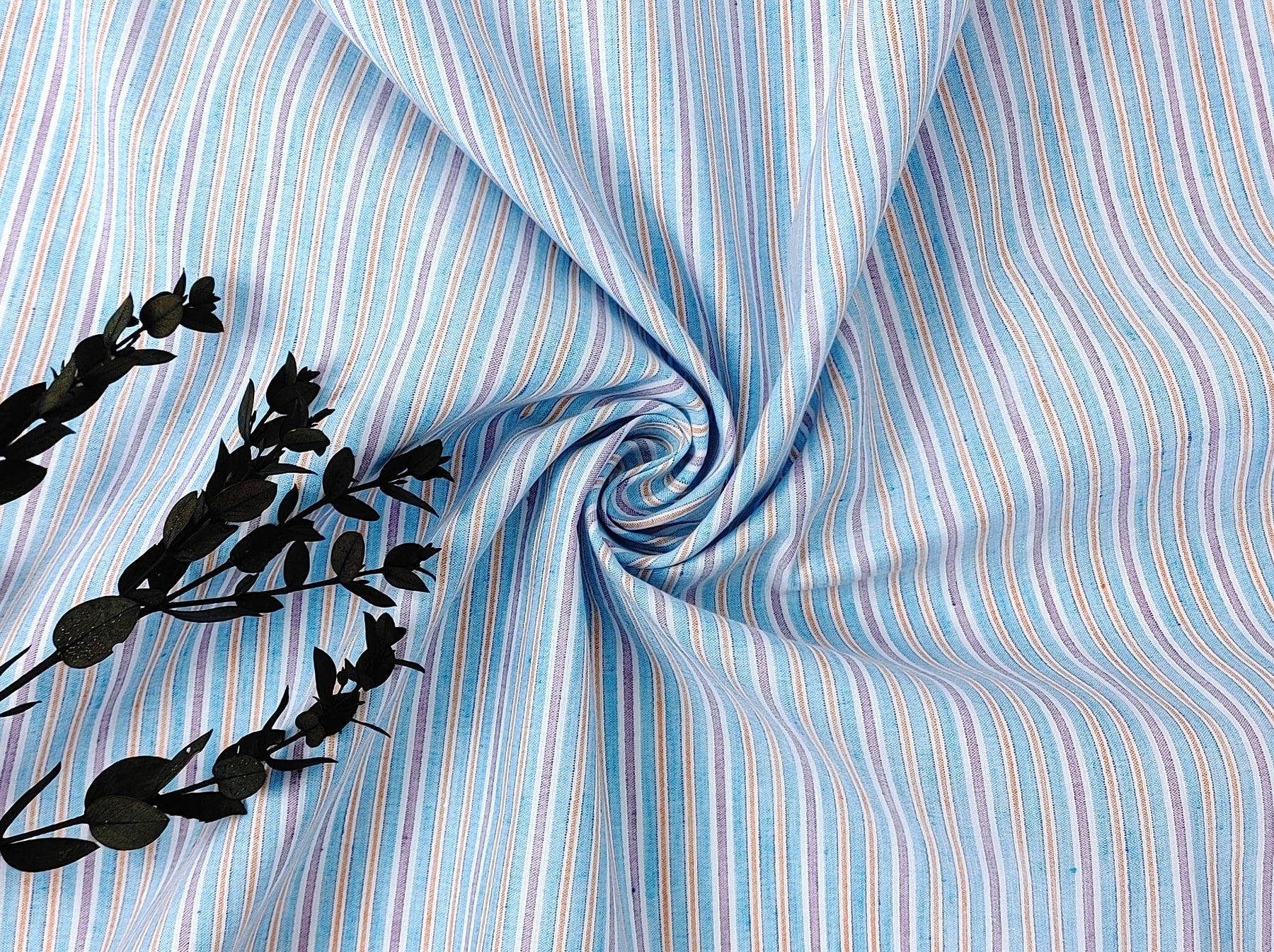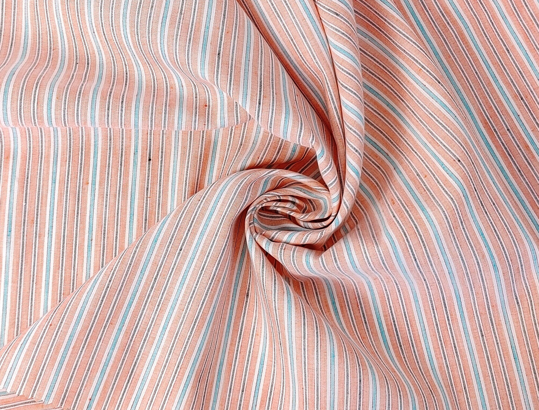 This fabric features a blend of 52% linen and 48% cotton, combining the breathability of linen with the smoothness of compact cotton. The warp is made from fine linen yarn (linen 23s), while the weft uses high-quality compact cotton yarn (cm80/2), creating a refined stripe pattern. Pre-washed for a soft handfeel, this lightweight fabric is perfect for breathable and comfortable garments with a natural texture. The fabric has no elasticity, offering a structured drape suitable for shirts, dresses, or home textiles. Ideal for creating versatile, casual, or semi-formal pieces.