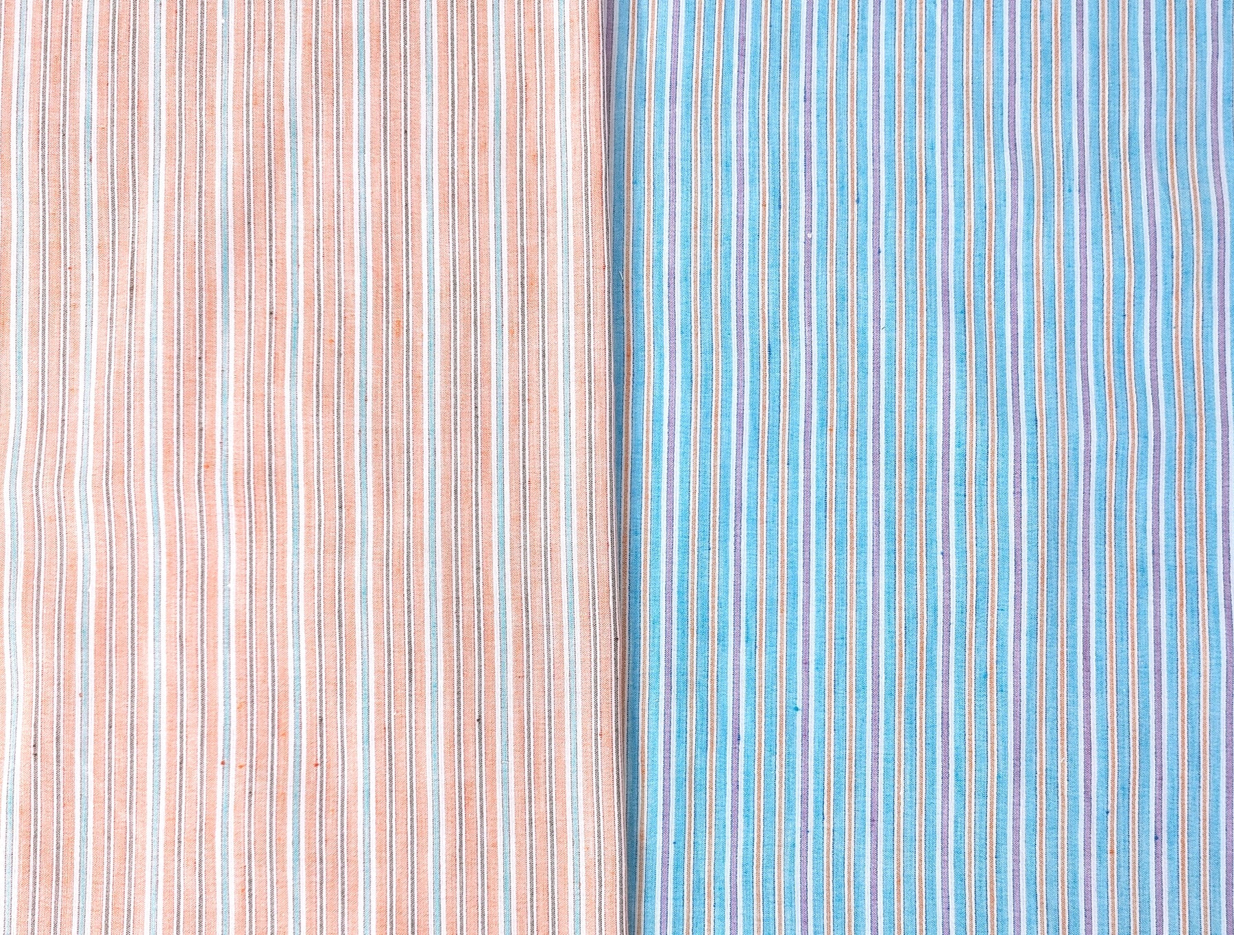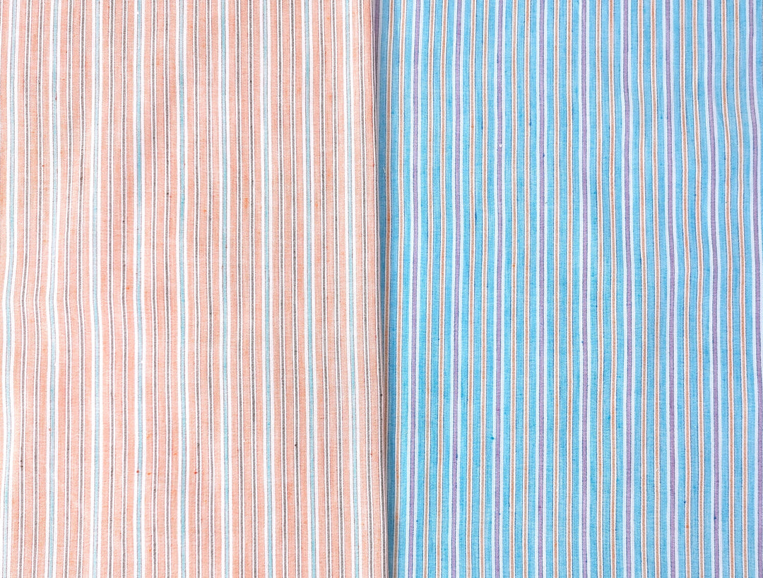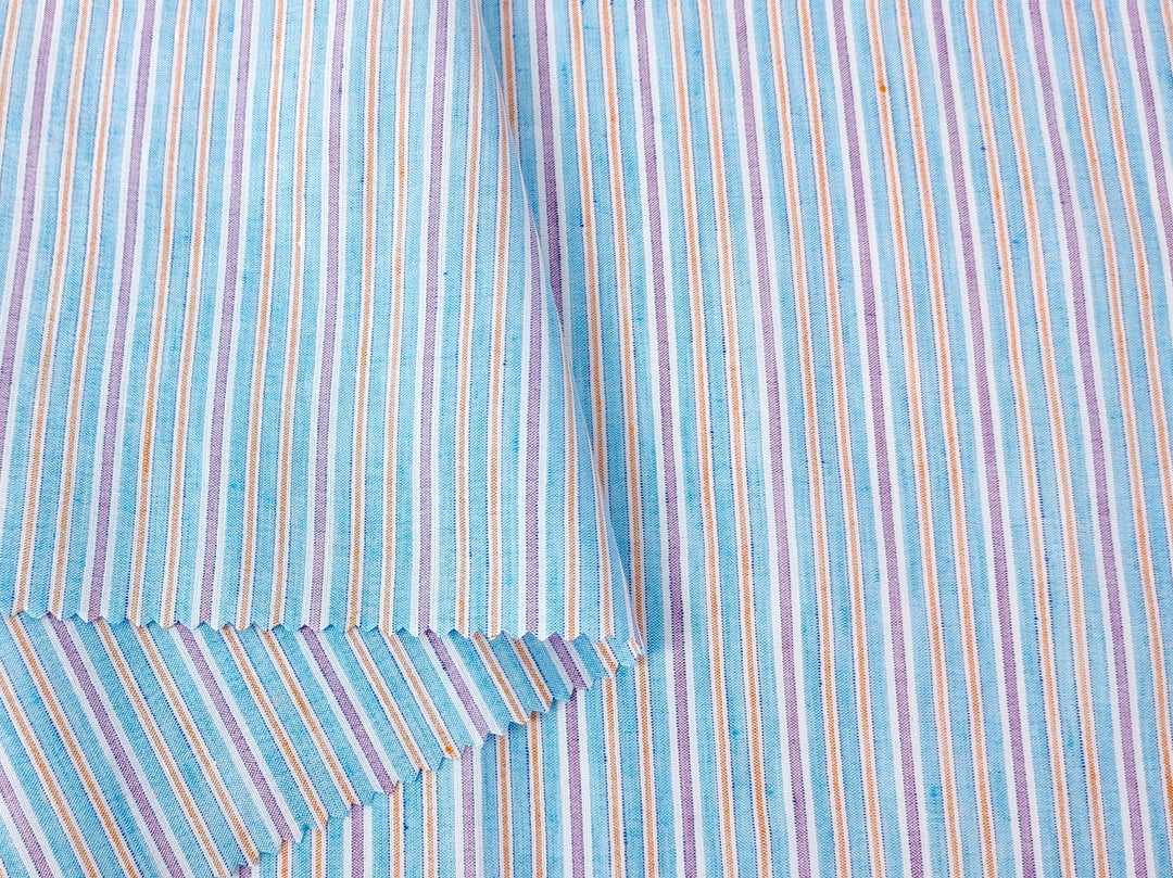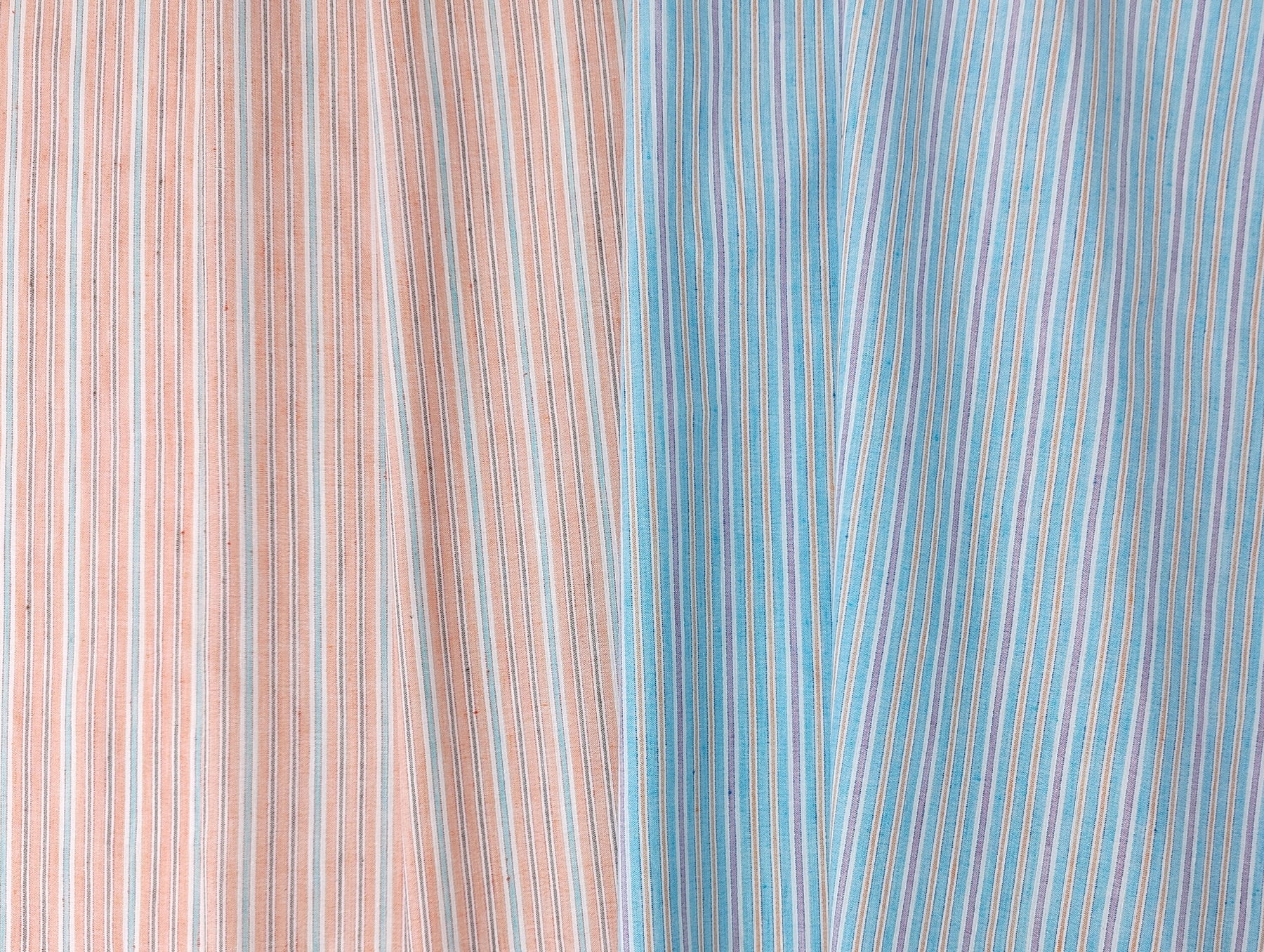 This fabric features a blend of 52% linen and 48% cotton, combining the breathability of linen with the smoothness of compact cotton. The warp is made from fine linen yarn (linen 23s), while the weft uses high-quality compact cotton yarn (cm80/2), creating a refined stripe pattern. Pre-washed for a soft handfeel, this lightweight fabric is perfect for breathable and comfortable garments with a natural texture. The fabric has no elasticity, offering a structured drape suitable for shirts, dresses, or home textiles. Ideal for creating versatile, casual, or semi-formal pieces.