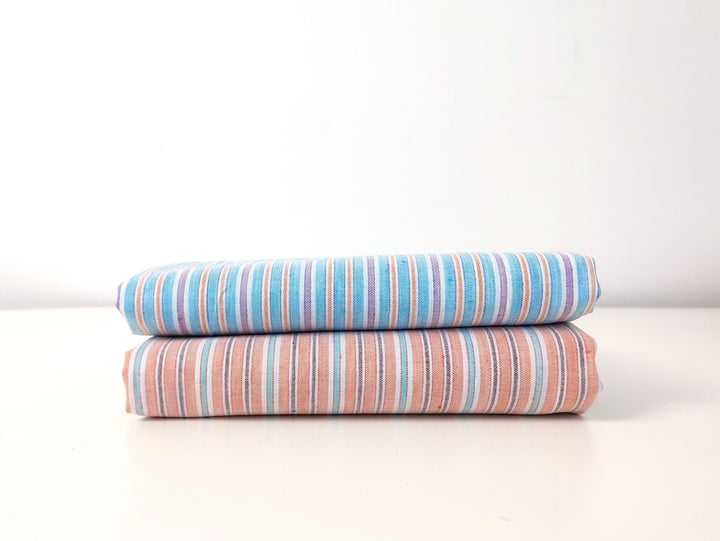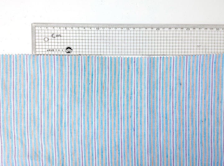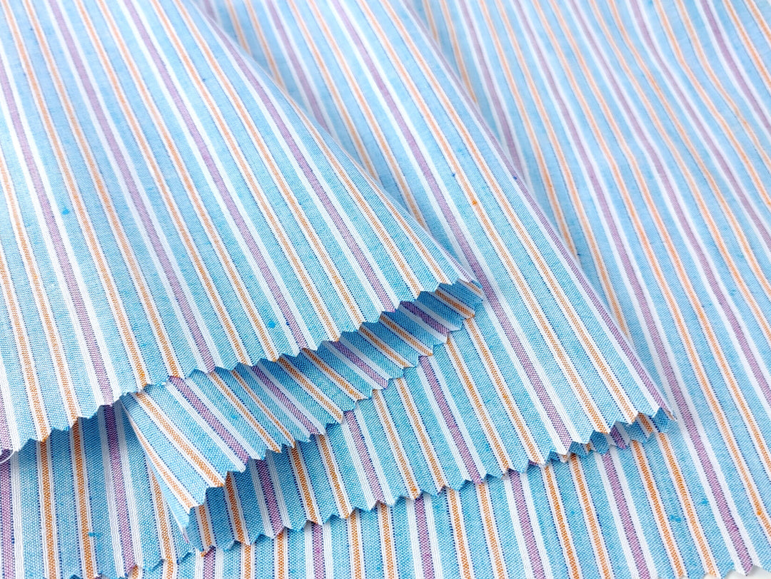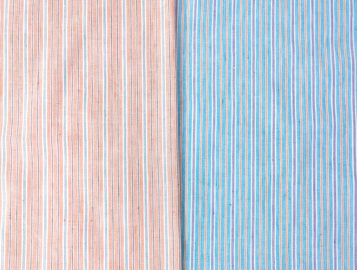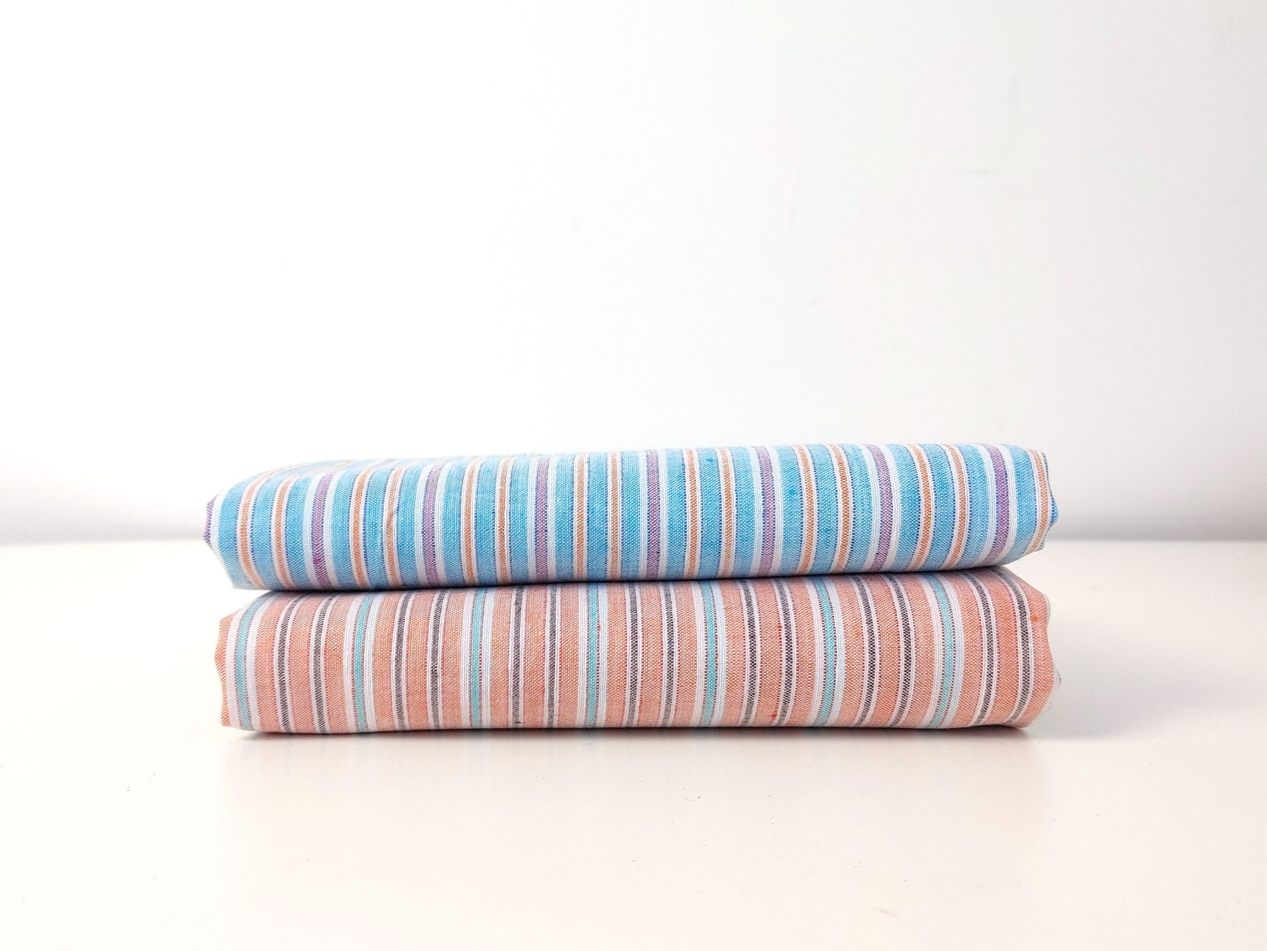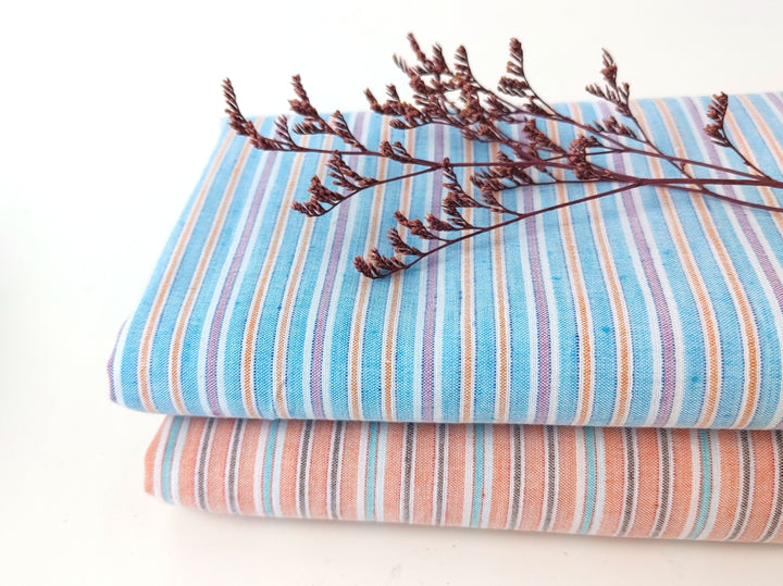 This fabric features a blend of 52% linen and 48% cotton, combining the breathability of linen with the smoothness of compact cotton. The warp is made from fine linen yarn (linen 23s), while the weft uses high-quality compact cotton yarn (cm80/2), creating a refined stripe pattern. Pre-washed for a soft handfeel, this lightweight fabric is perfect for breathable and comfortable garments with a natural texture. The fabric has no elasticity, offering a structured drape suitable for shirts, dresses, or home textiles. Ideal for creating versatile, casual, or semi-formal pieces.