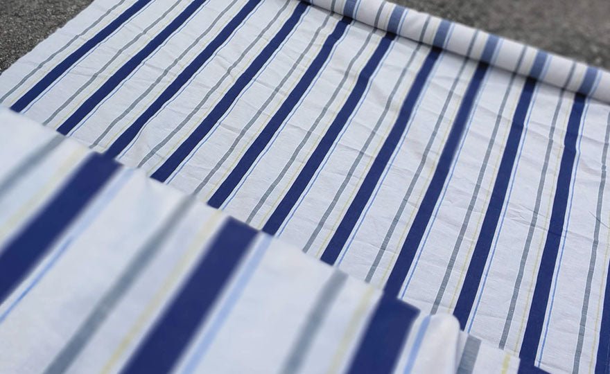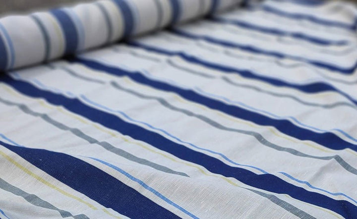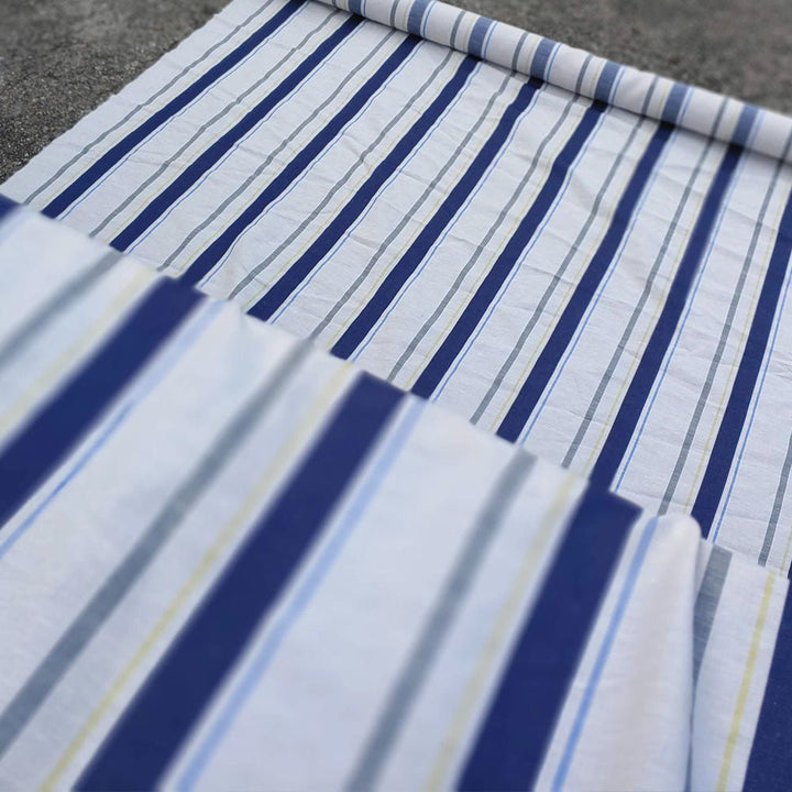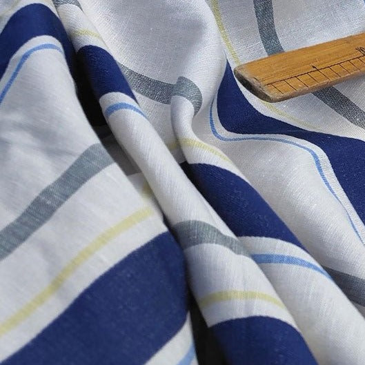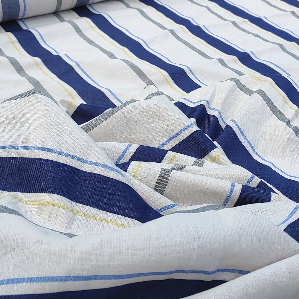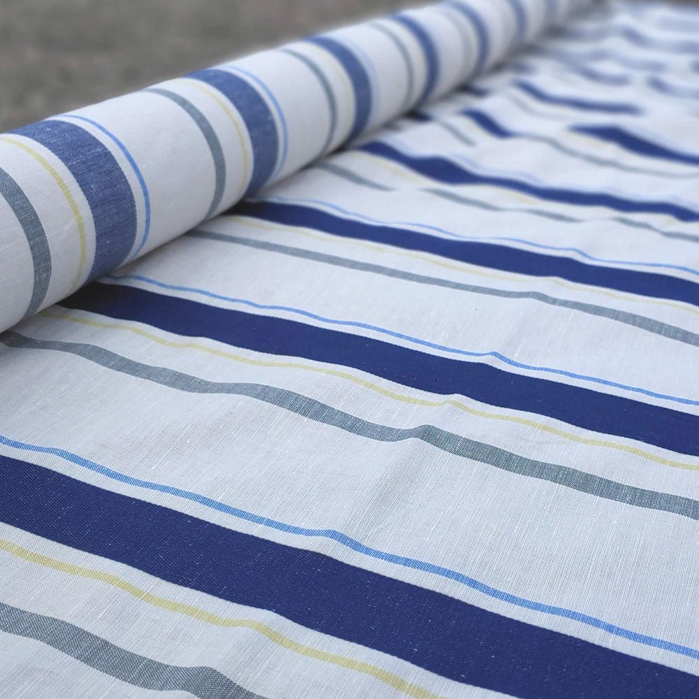 Linen Cotton Dobby Stripe Fabric (6396) - The Linen Lab - Beige with Navy