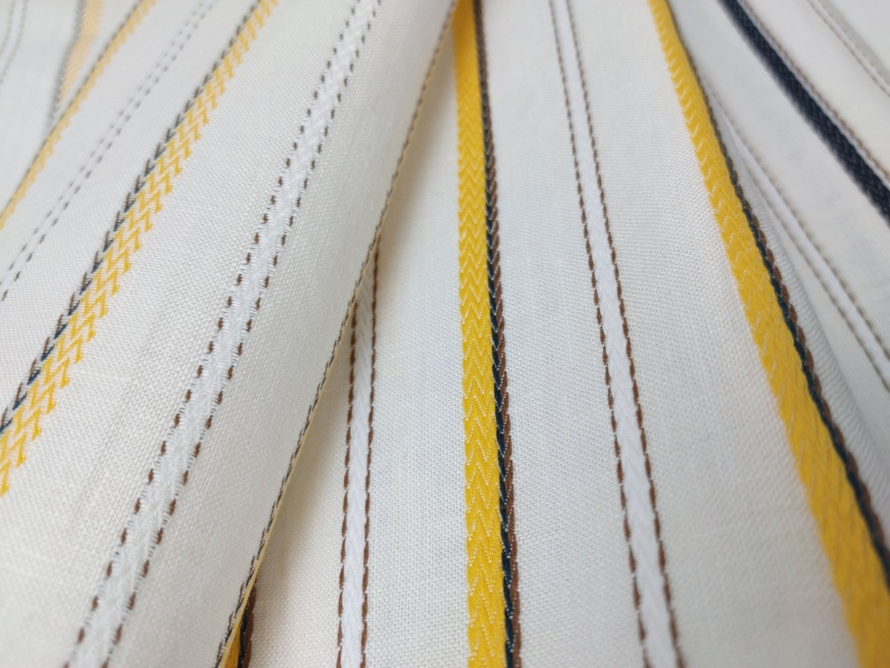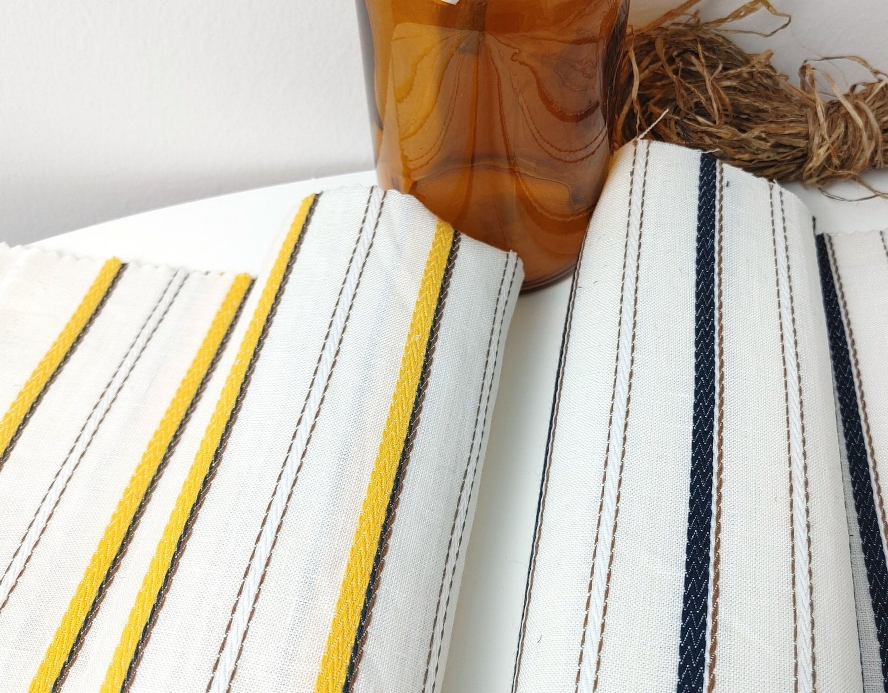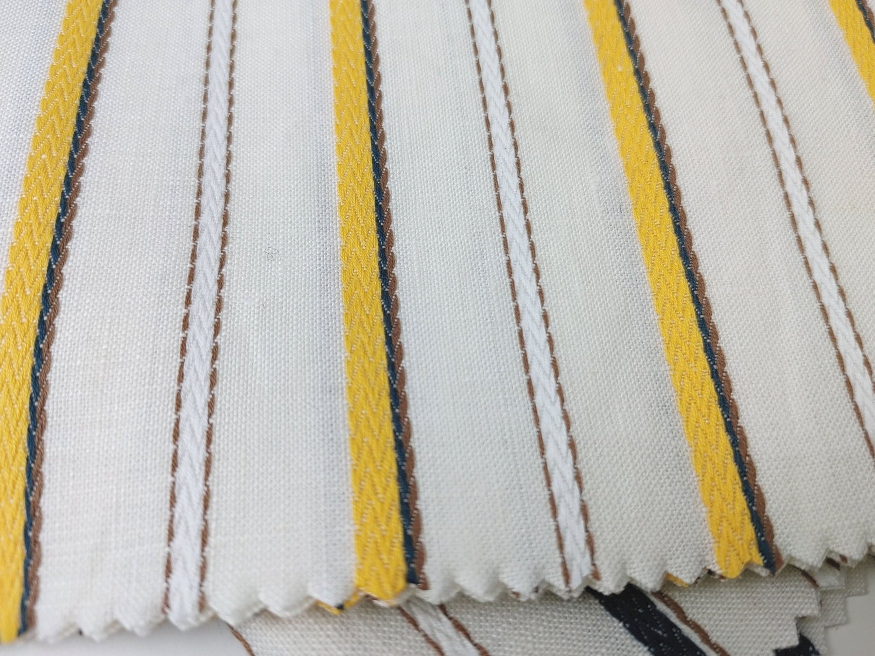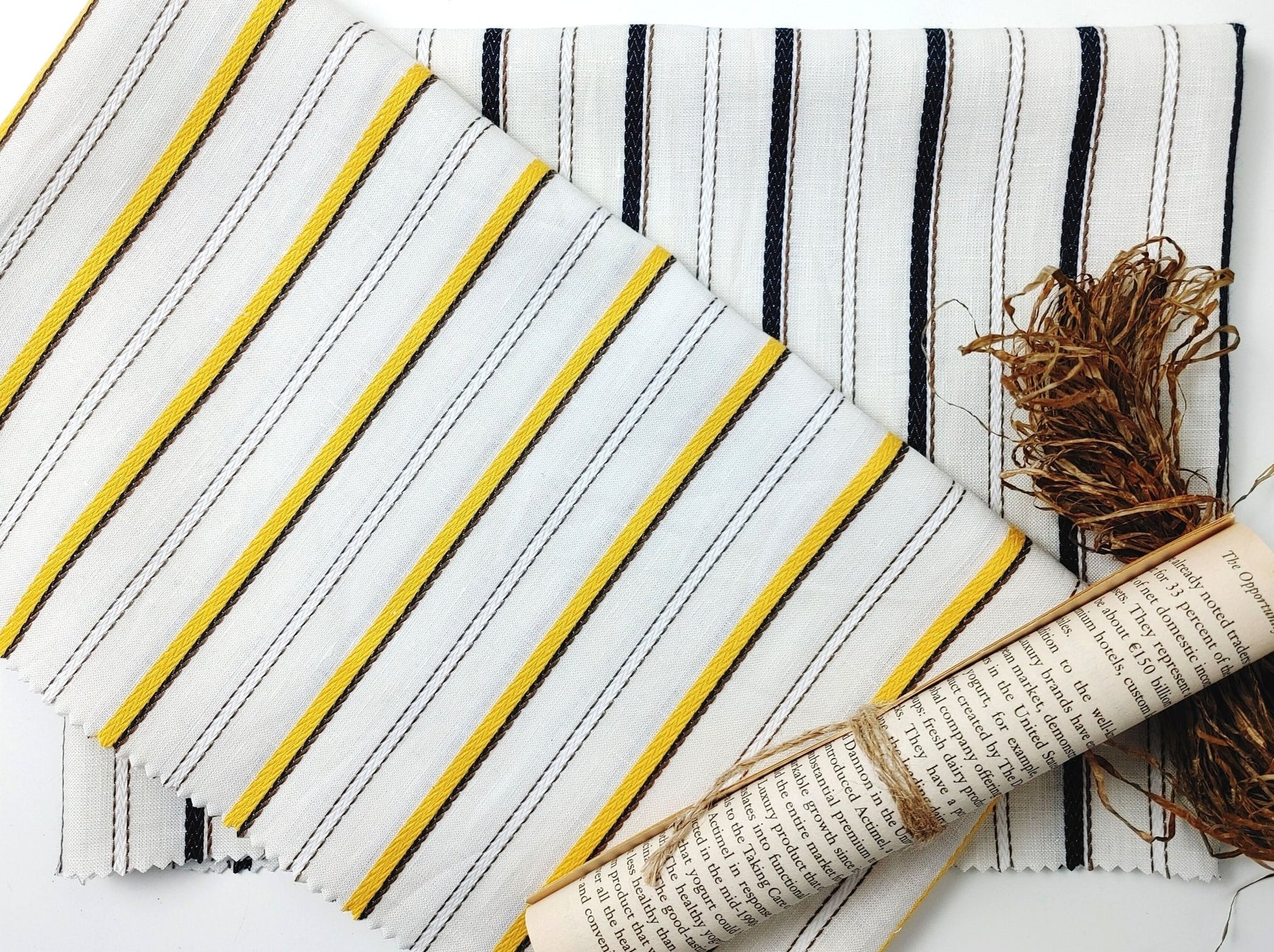 Linen Cotton Dobby Stripe Fabric Medium Weight 2804 2805 - The Linen Lab - Yellow