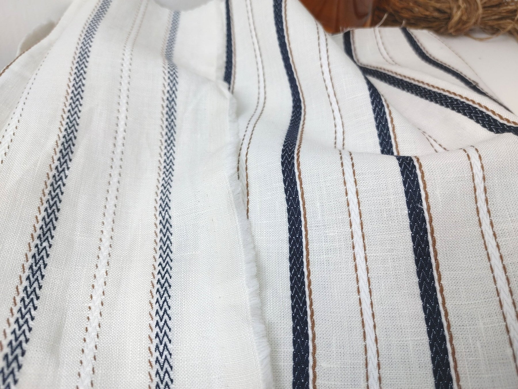 Linen Cotton Dobby Stripe Fabric Medium Weight 2804 2805