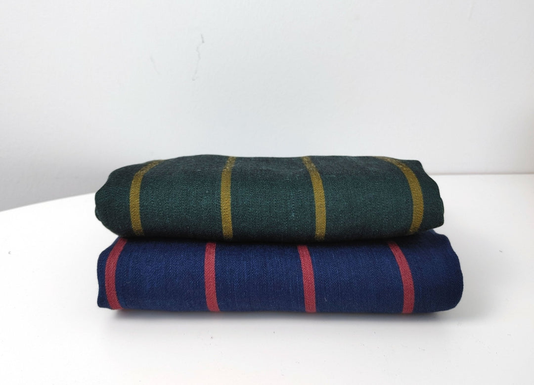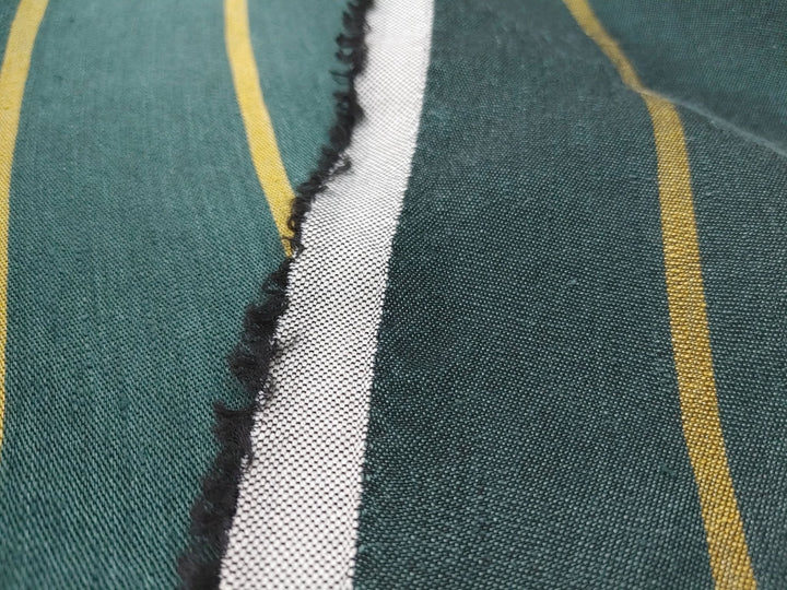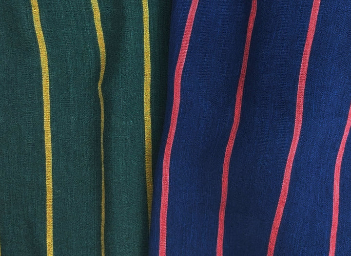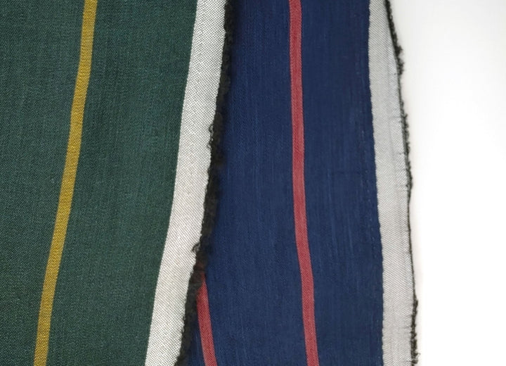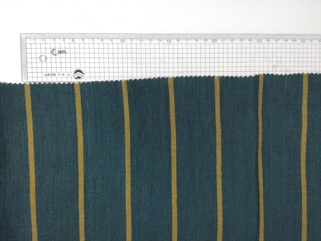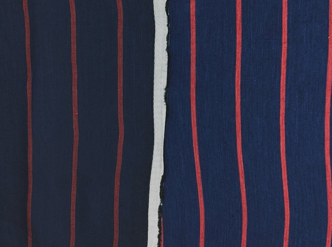 Meet our Linen Rayon Satin Stripe Fabric, a blend of classic charm and modern allure. The warp, woven with yarn-dyed linen, ensures lasting color and a touch of natural drape. The weft introduces a contemporary twist with high-twist black rayon filament yarn, offering both sheen and durability.