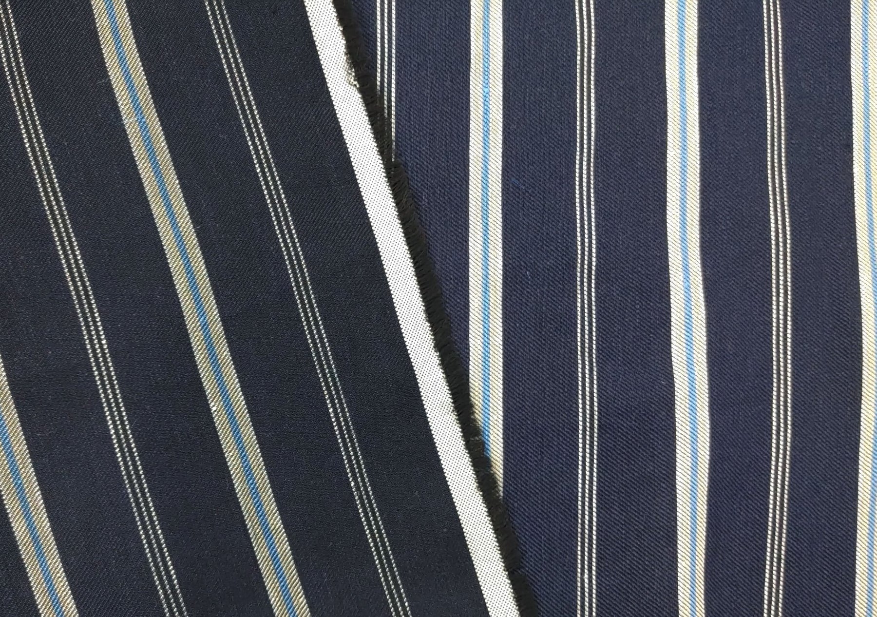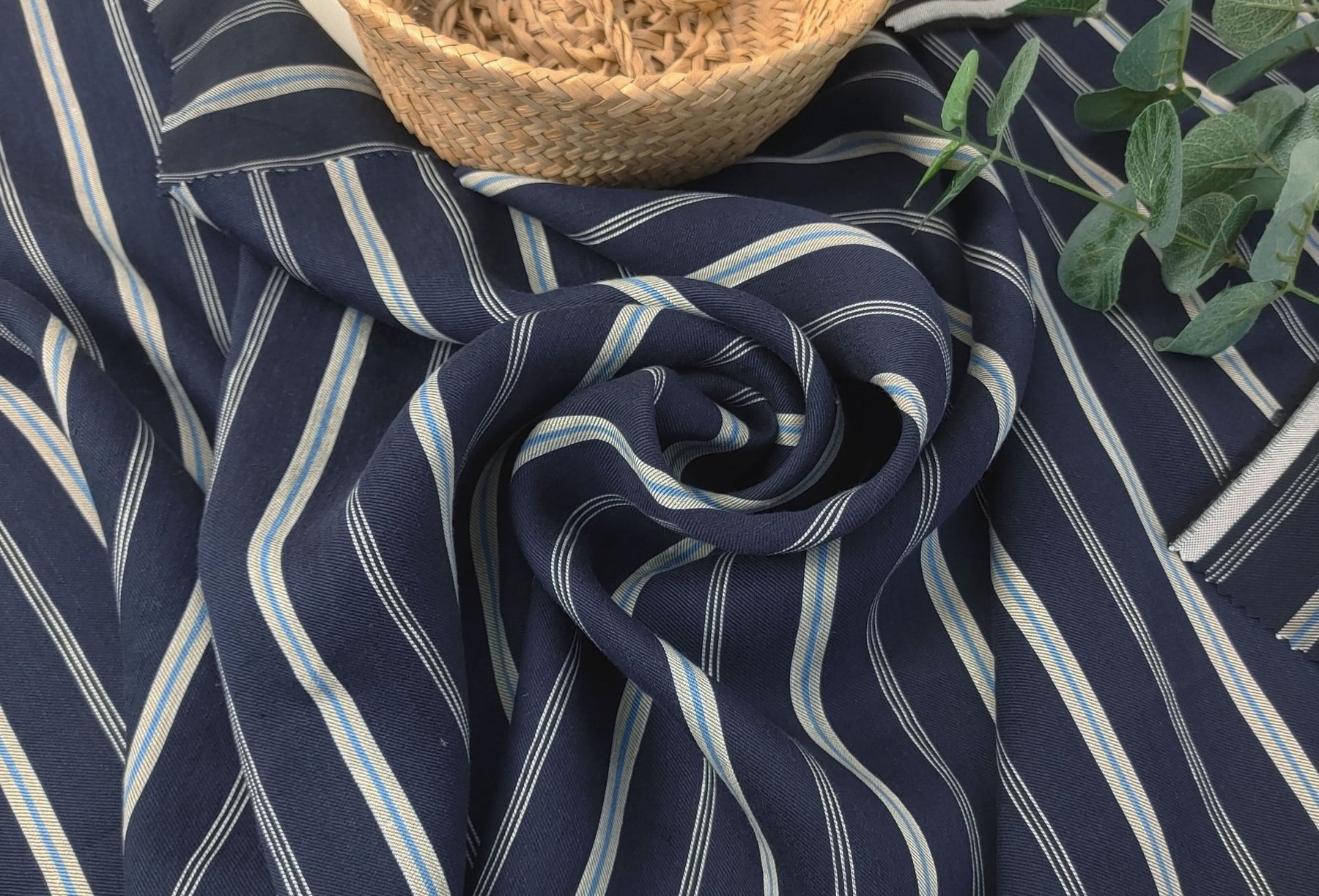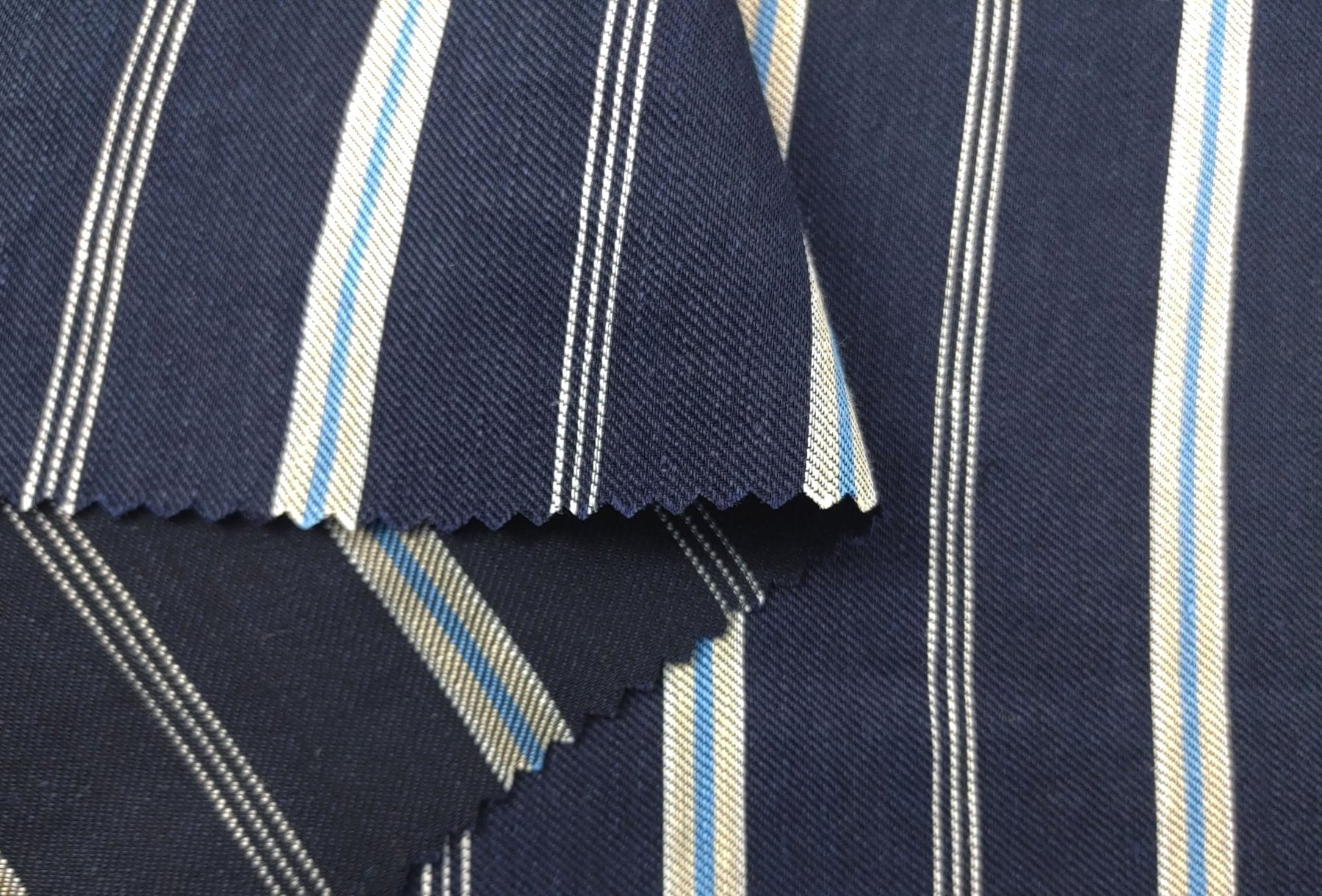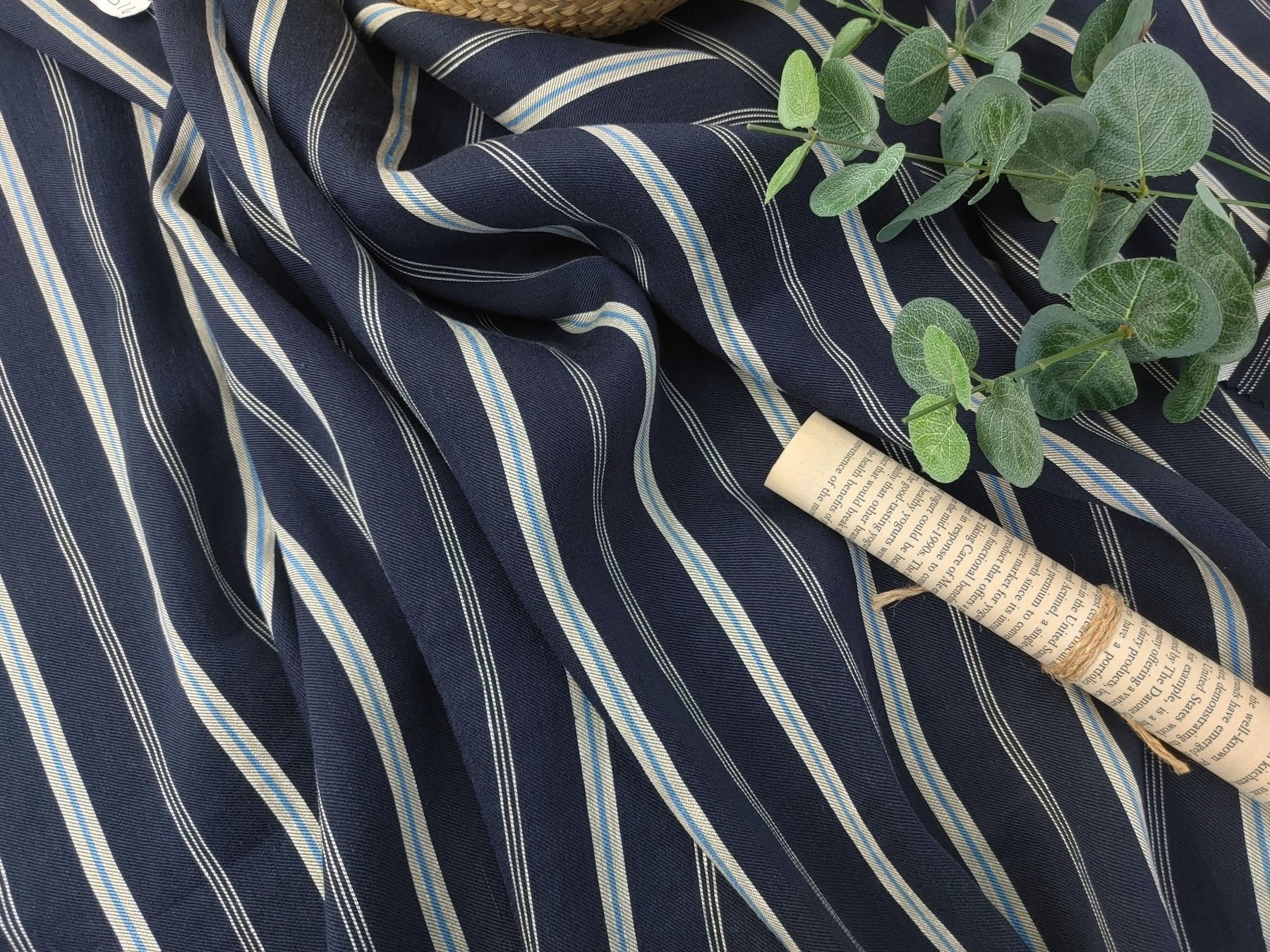 Linen Rayon Twill Fabric with Stripe Pattern, Subtle Glossy Effect 6809 6810 7154 - The Linen Lab - Navy