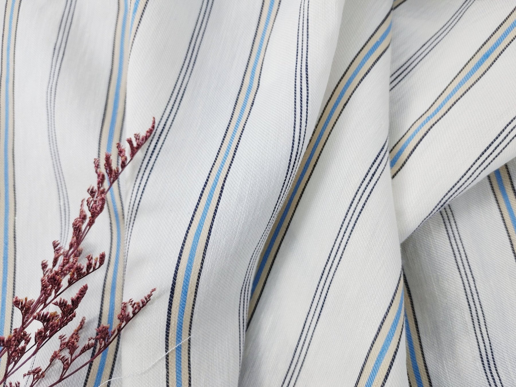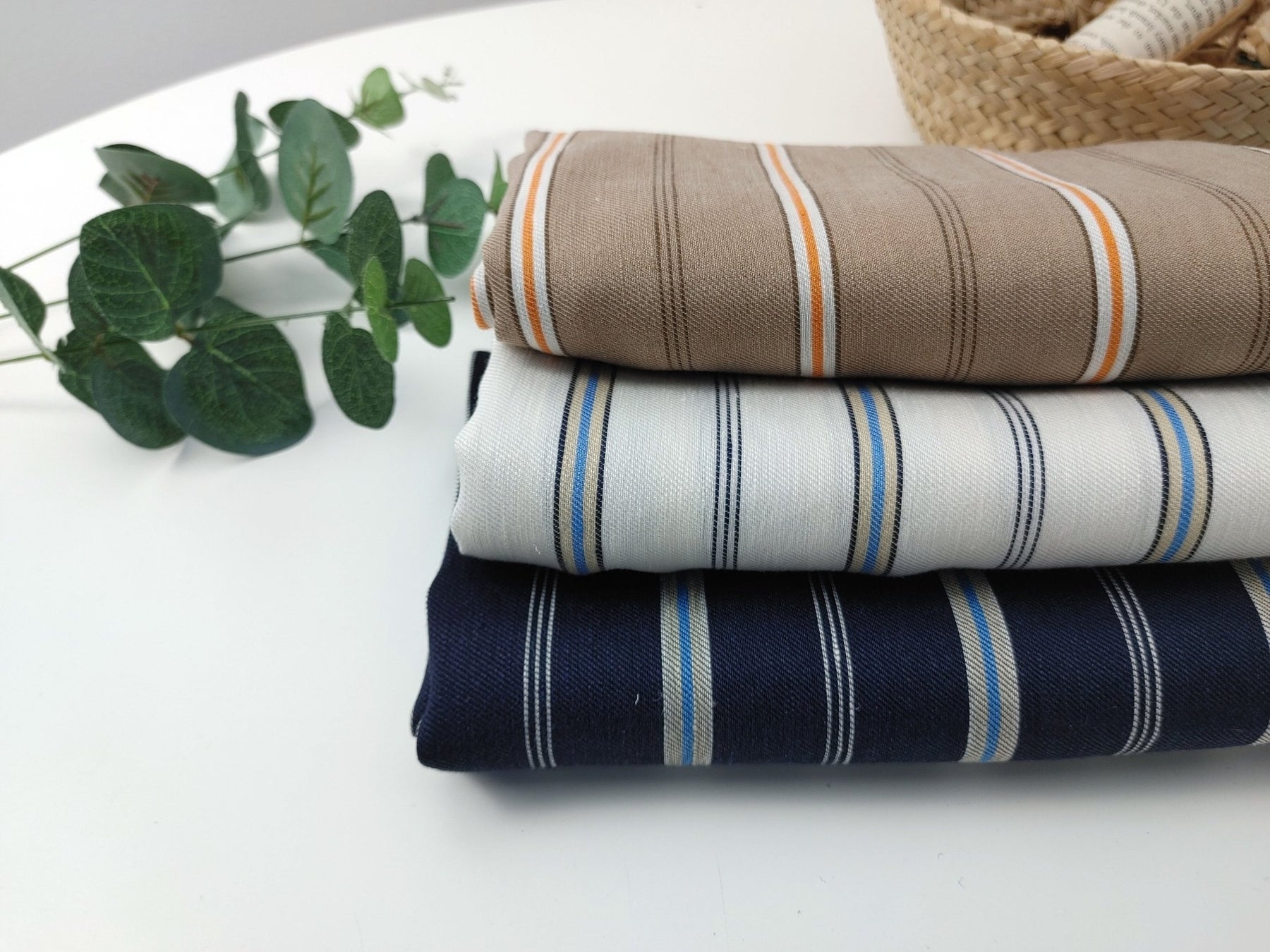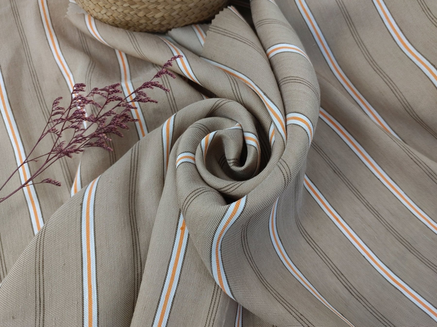 Linen Rayon Twill Fabric with Stripe Pattern, Subtle Glossy Effect 6809 6810 7154