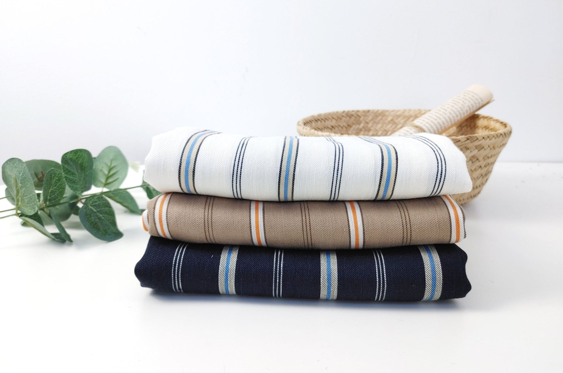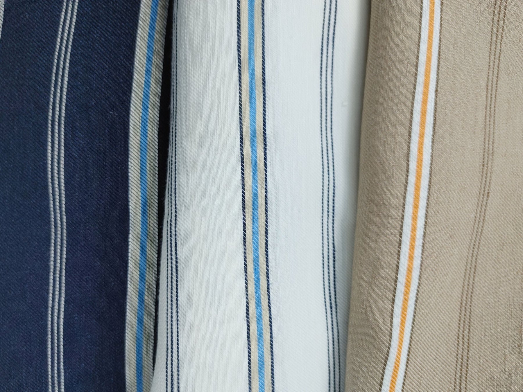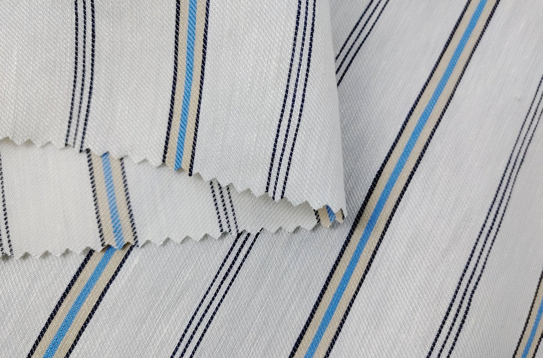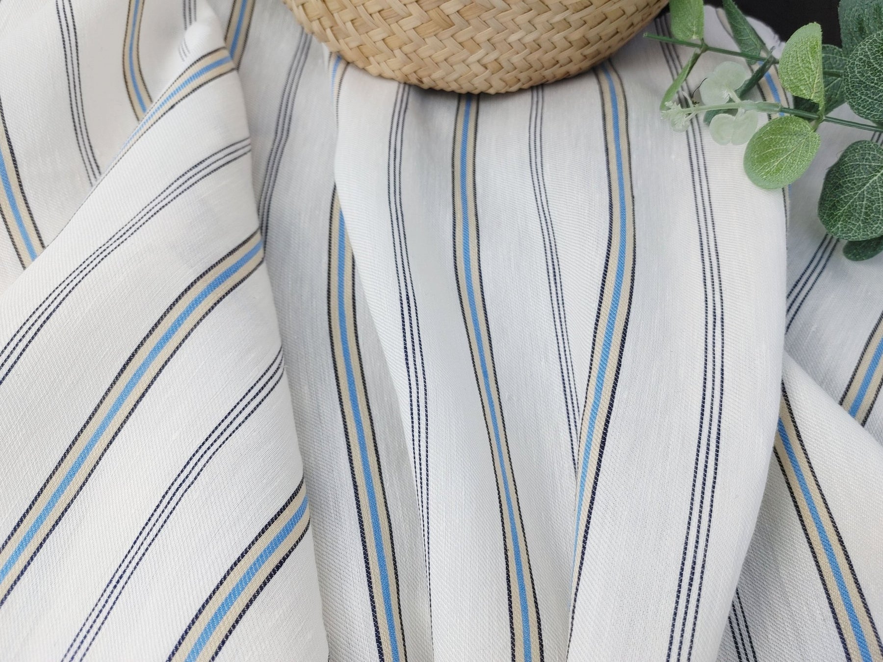 Linen Rayon Twill Fabric with Stripe Pattern, Subtle Glossy Effect 6809 6810 7154