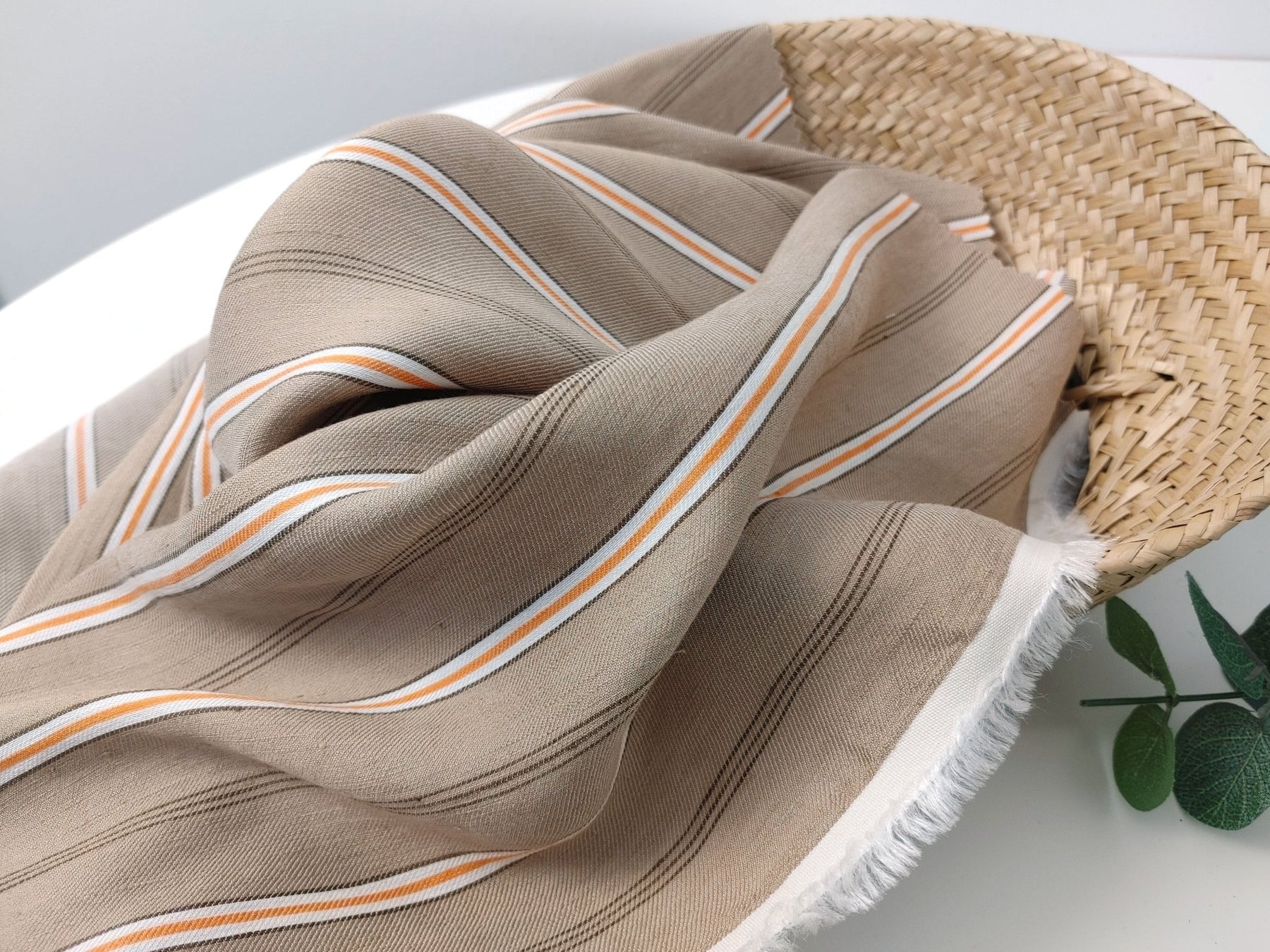 Linen Rayon Twill Fabric with Stripe Pattern, Subtle Glossy Effect 6809 6810 7154 - The Linen Lab - Beige