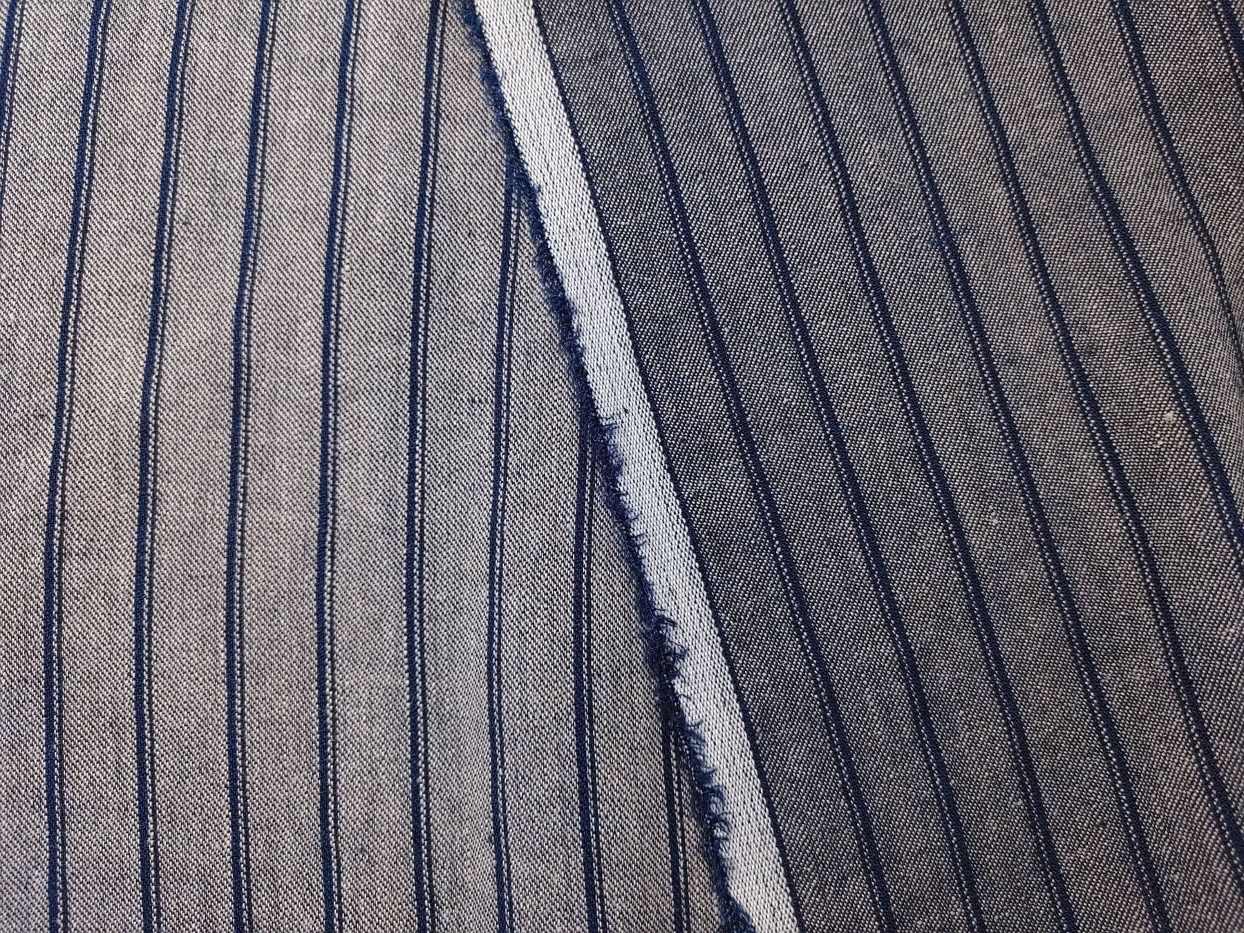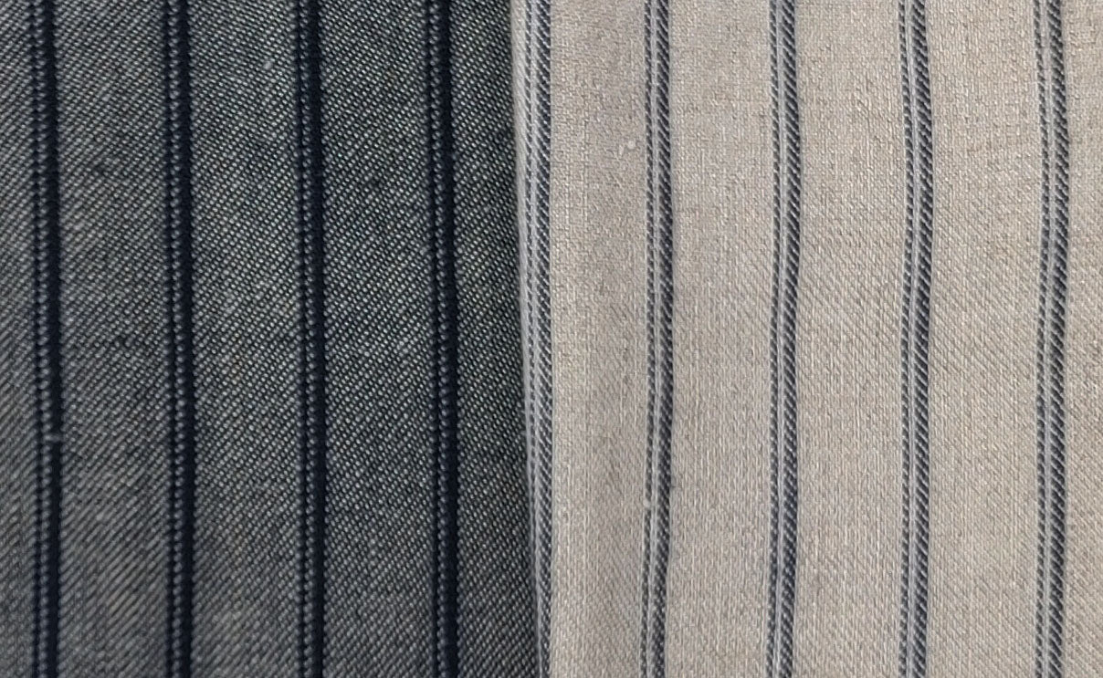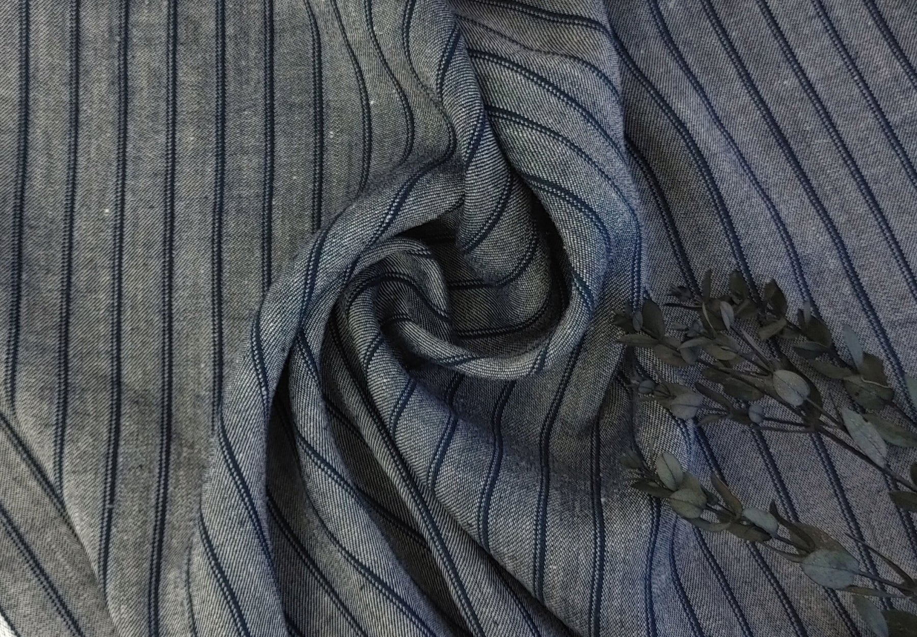 Introducing our Linen Rayon Twill Stripe Fabric, a balanced blend of style and comfort. Crafted with a linen warp and a twisted combination of linen and rayon yarns for the weft, this fabric offers a subtle natural stretch for comfortable wear and a pleasing drape.