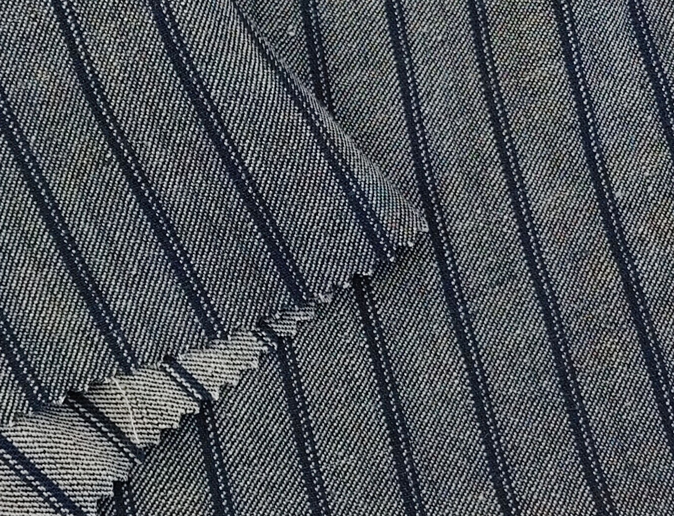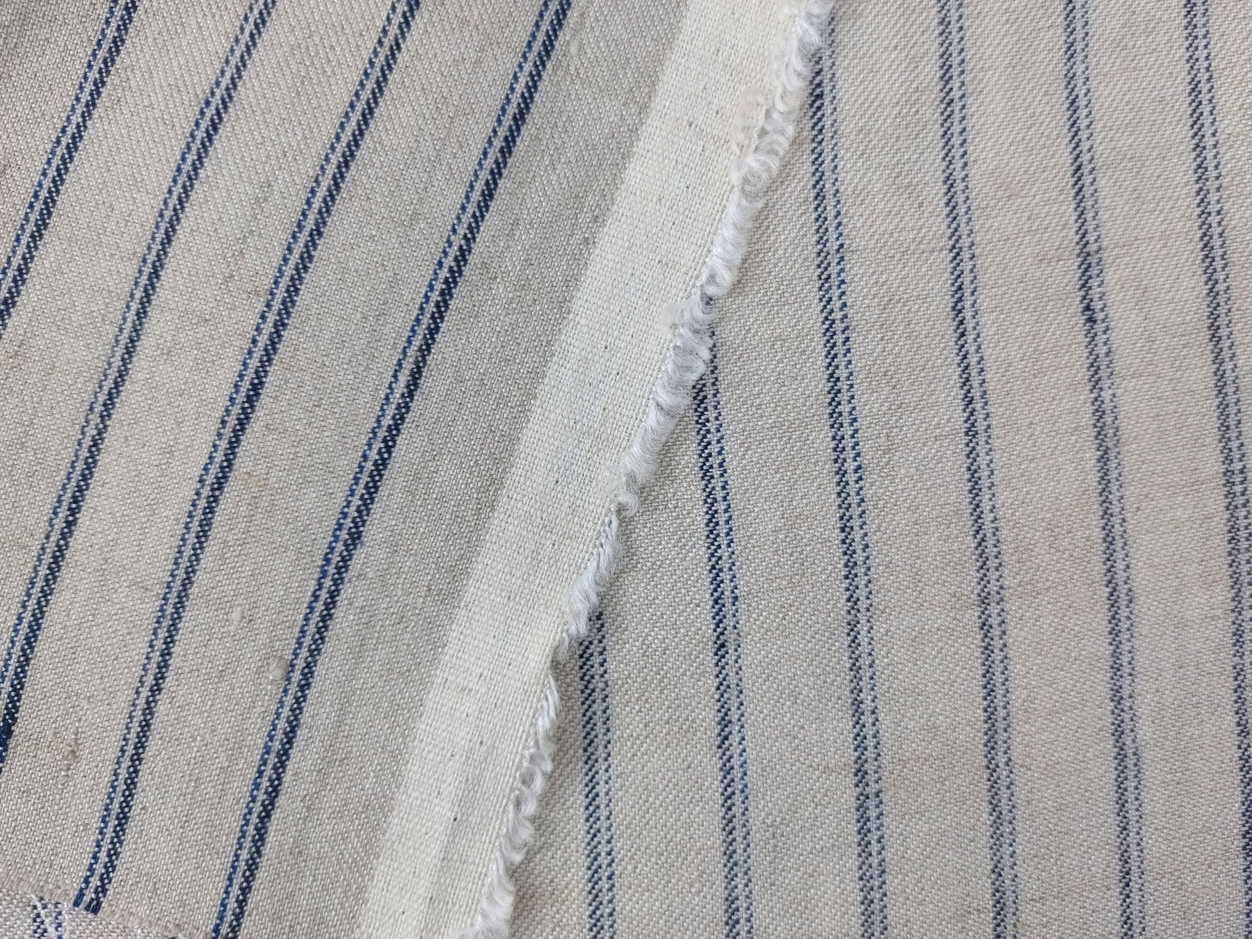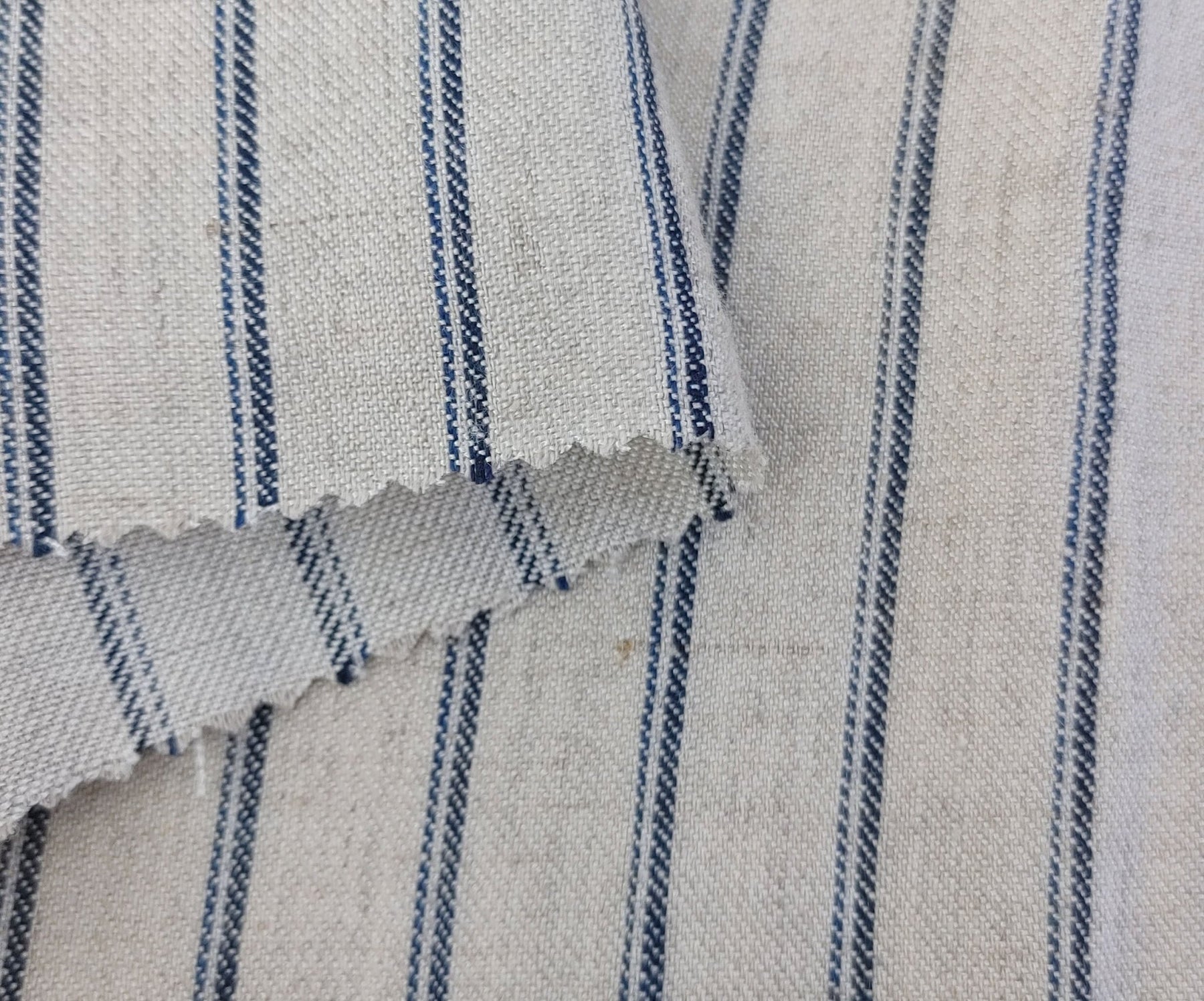 Introducing our Linen Rayon Twill Stripe Fabric, a balanced blend of style and comfort. Crafted with a linen warp and a twisted combination of linen and rayon yarns for the weft, this fabric offers a subtle natural stretch for comfortable wear and a pleasing drape.