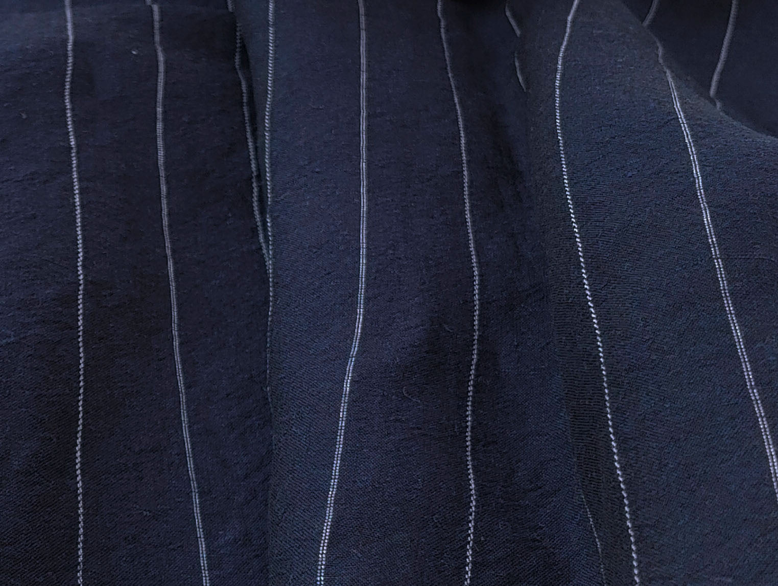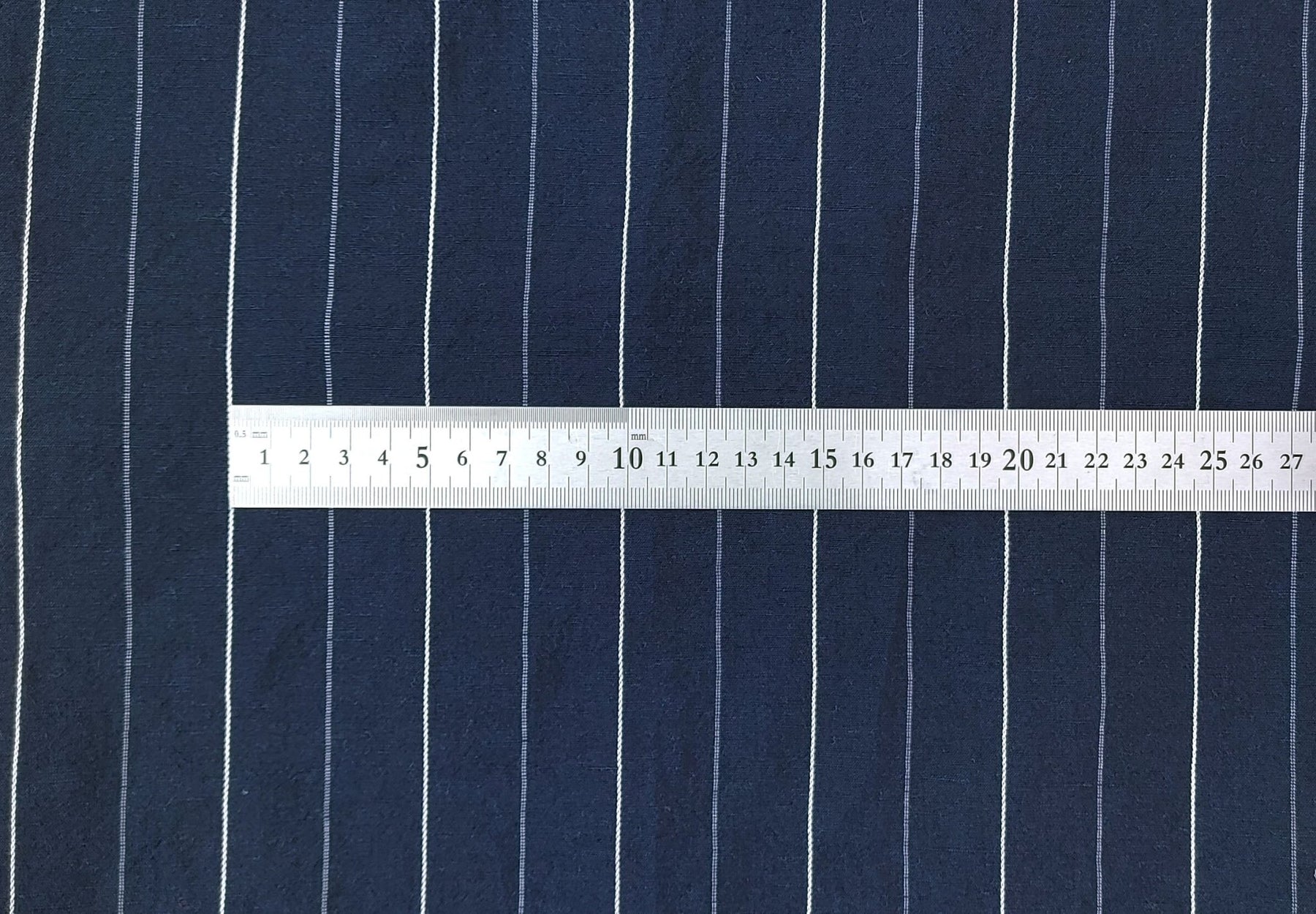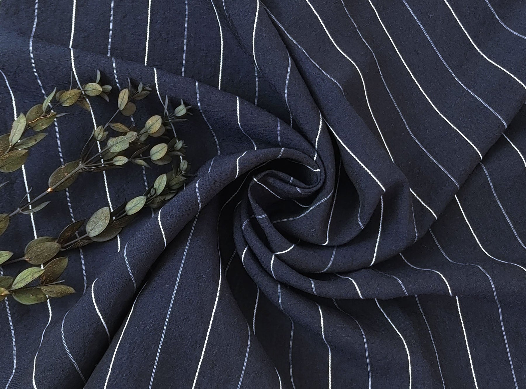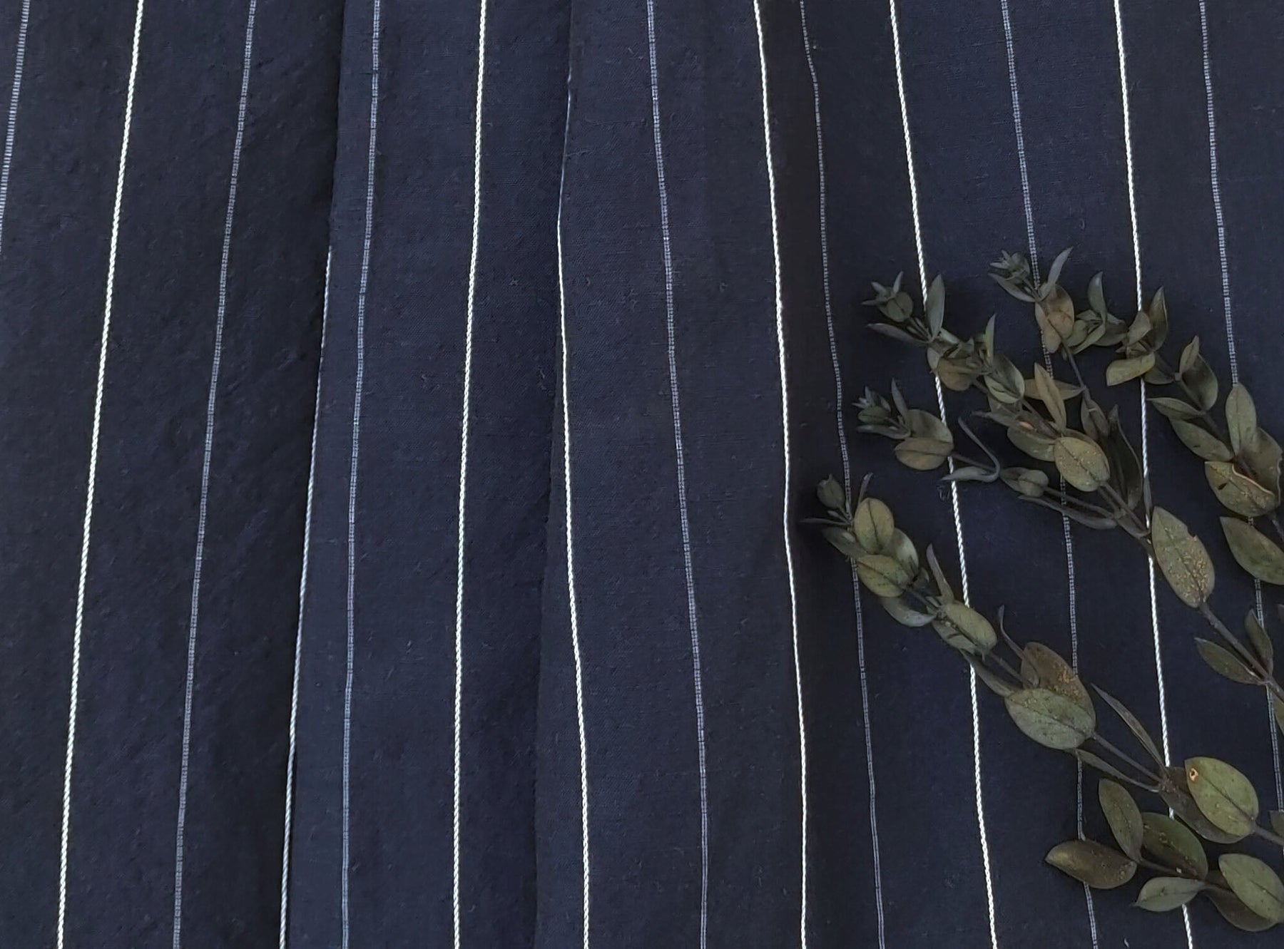 Whether you're envisioning chic apparel, home decor accents, or other creative ventures, our Navy Linen Tencel Dobby Stripe Fabric is the canvas for your next masterpiece. Elevate your creations with the timeless appeal and quality craftsmanship of this exceptional textile.