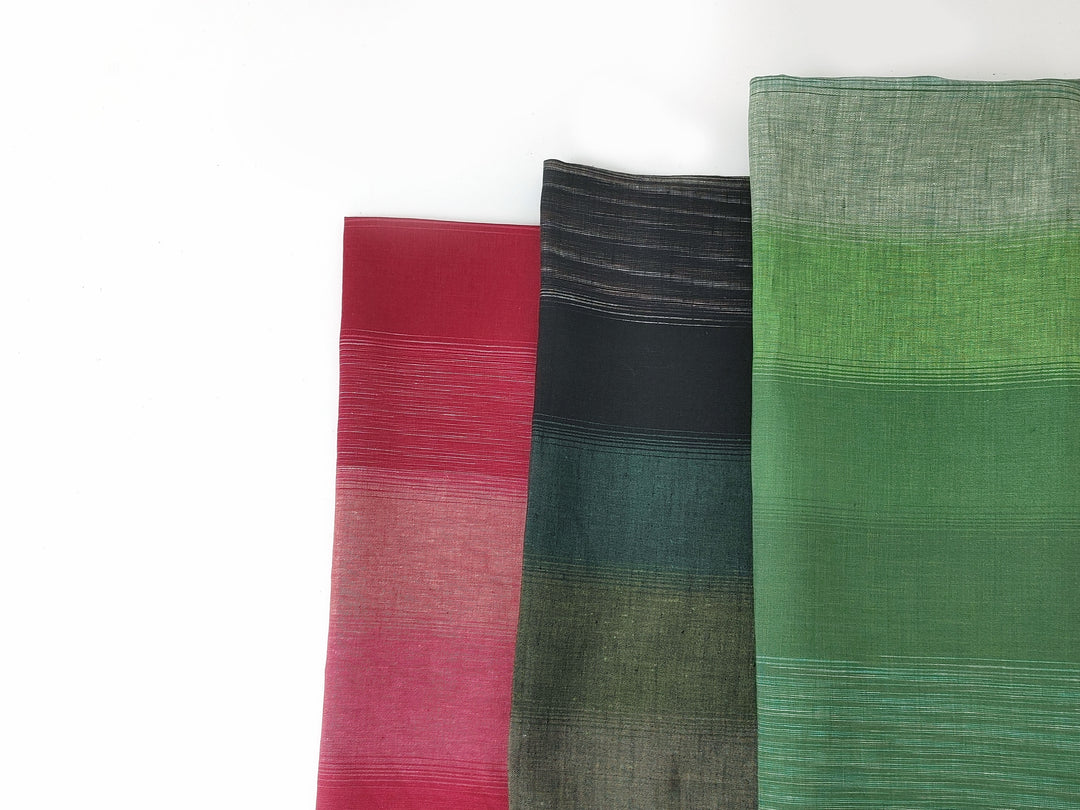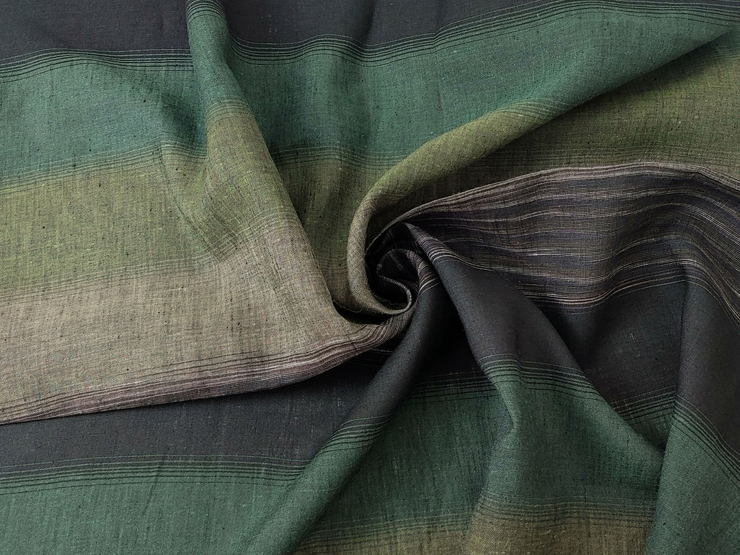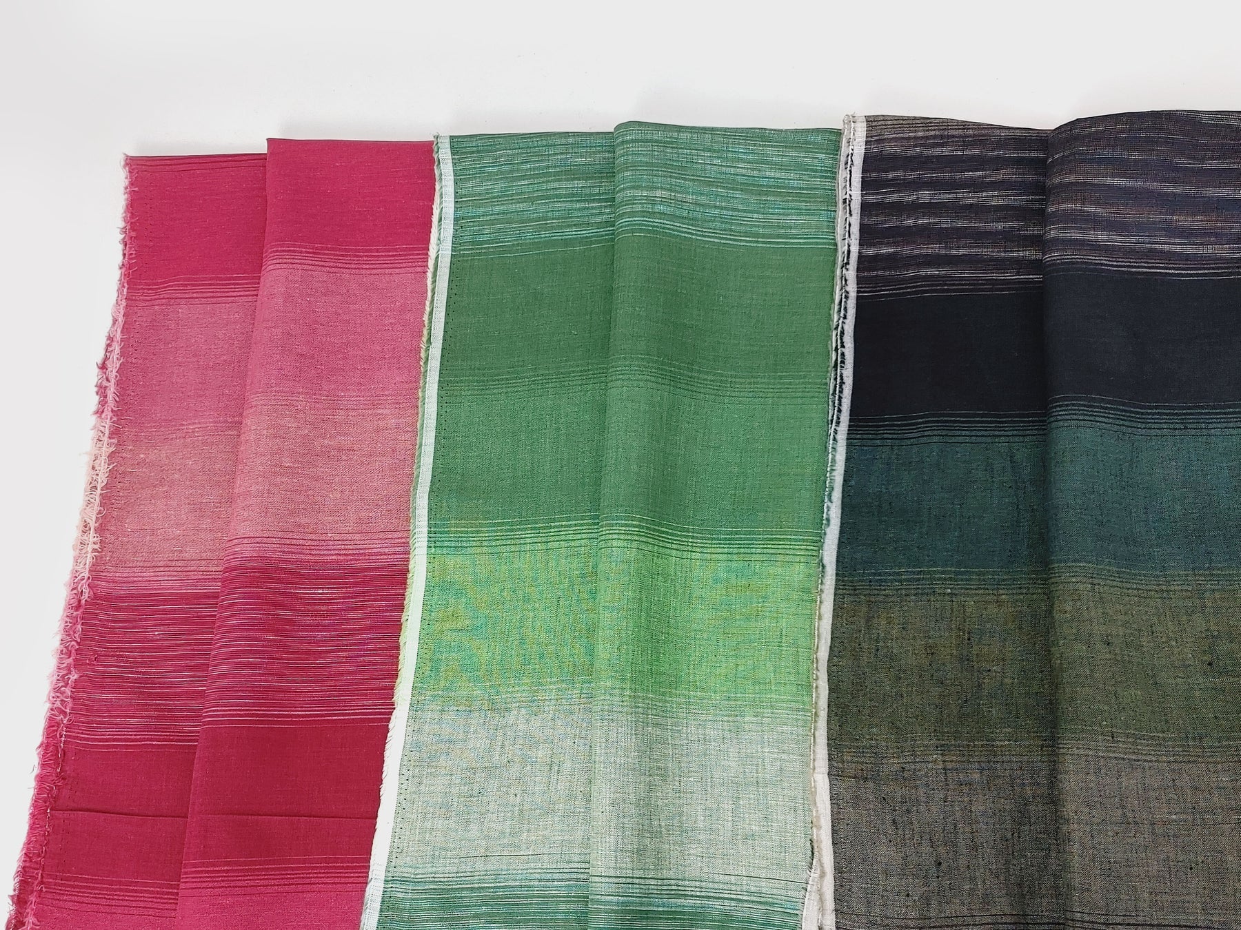 This lightweight, 100% linen fabric captures the essence of a sunrise with its stunning horizontal gradient stripes. The spaced-dyed yarn creates a unique, multi-colored effect, giving each stripe a natural, flowing transition of hues. Soft to the touch, the fabric has been pre-washed for added comfort. With a weight of 120 g/sqm (3.5 oz per square yard), it’s perfect for creating airy, breathable garments or home textiles. Non-elastic and naturally textured, this fabric embodies organic elegance, ideal for projects that call for both sophistication and simplicity.