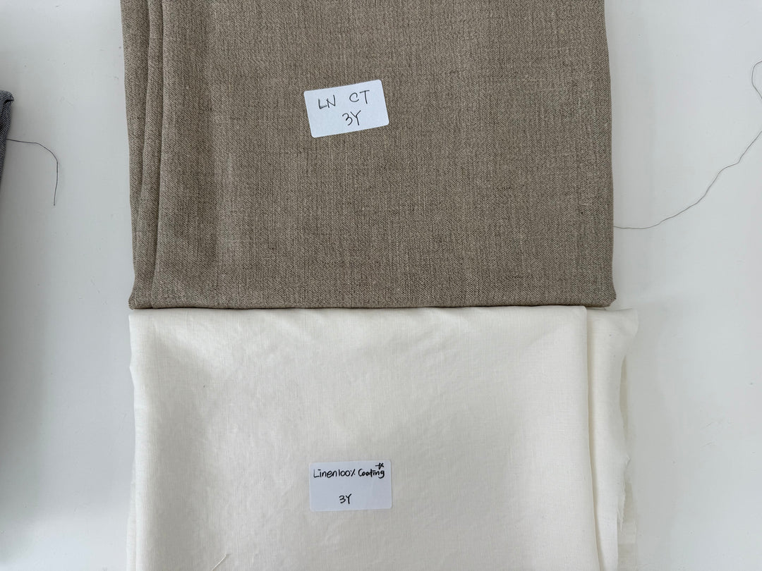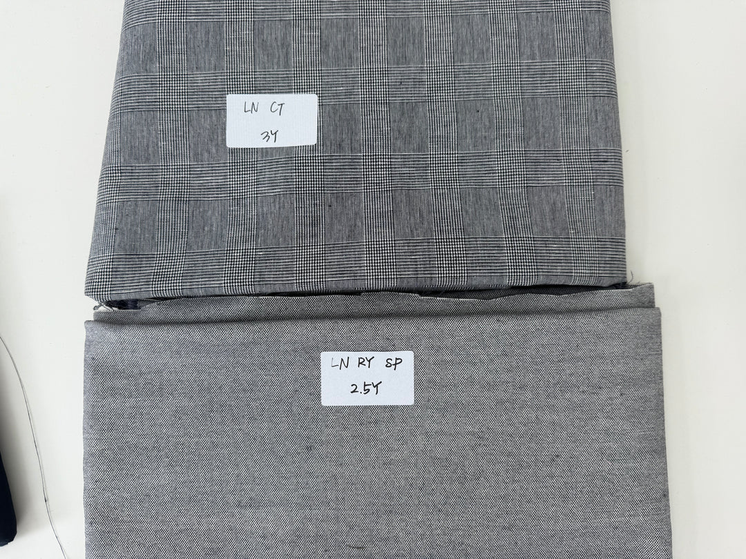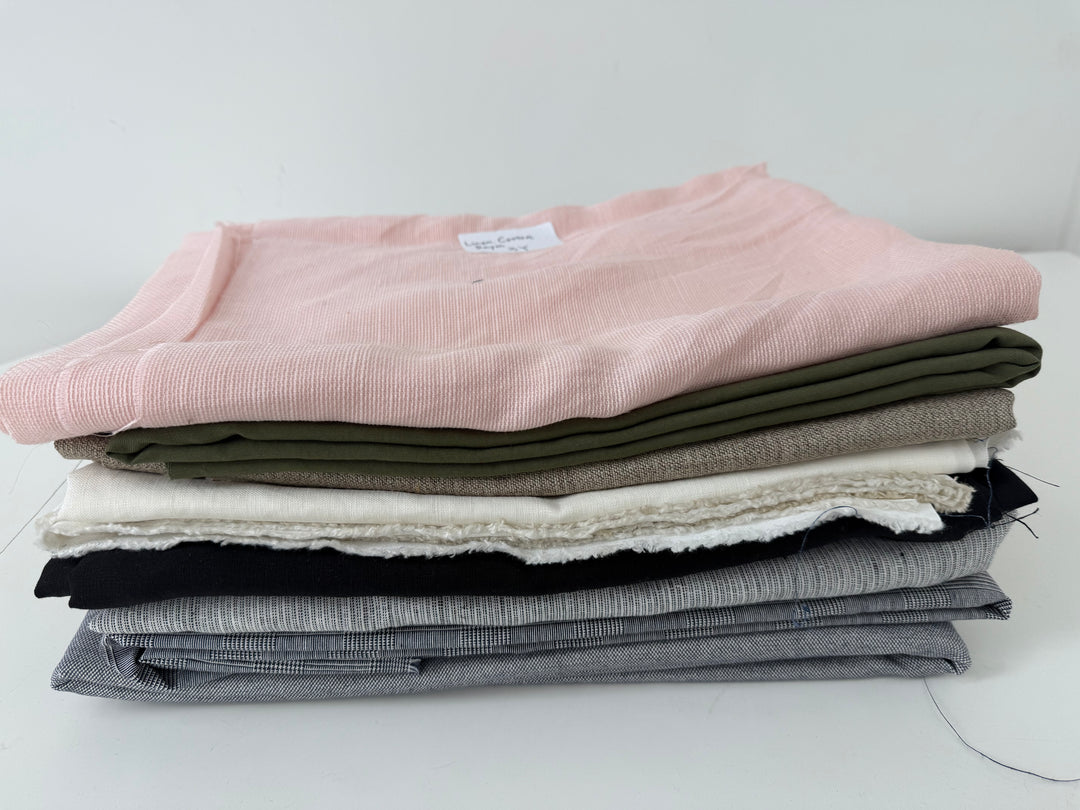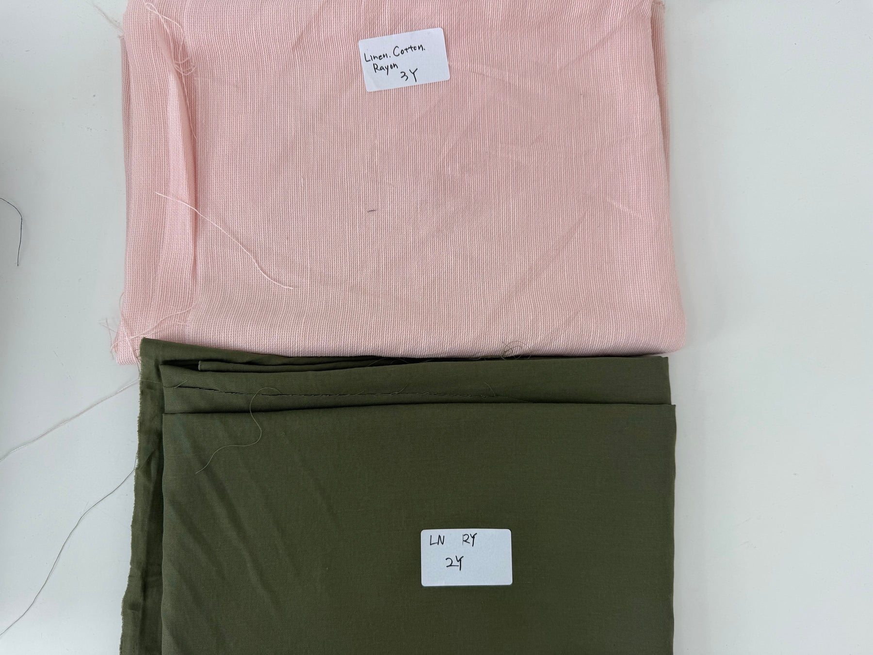 Total 24.5y, 9 fabrics Get creative with our Linen Fabric Surprise Box! Inside, you'll find kinds of fabric, including 100% Linen, Linen/Cotton, Linen/Nylon/Cotton, Linen/Rayon Each piece ranges from 2~ 3 yards, giving you a total of 24.5 yards of fabric to work with.