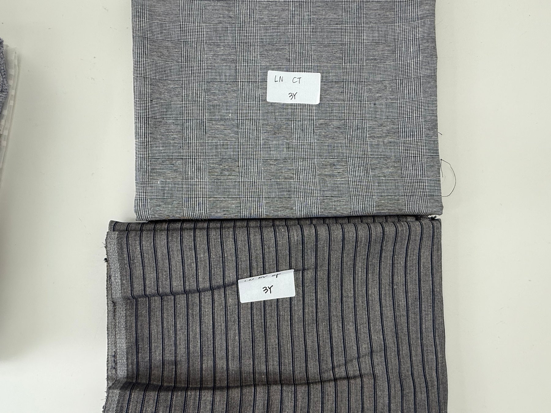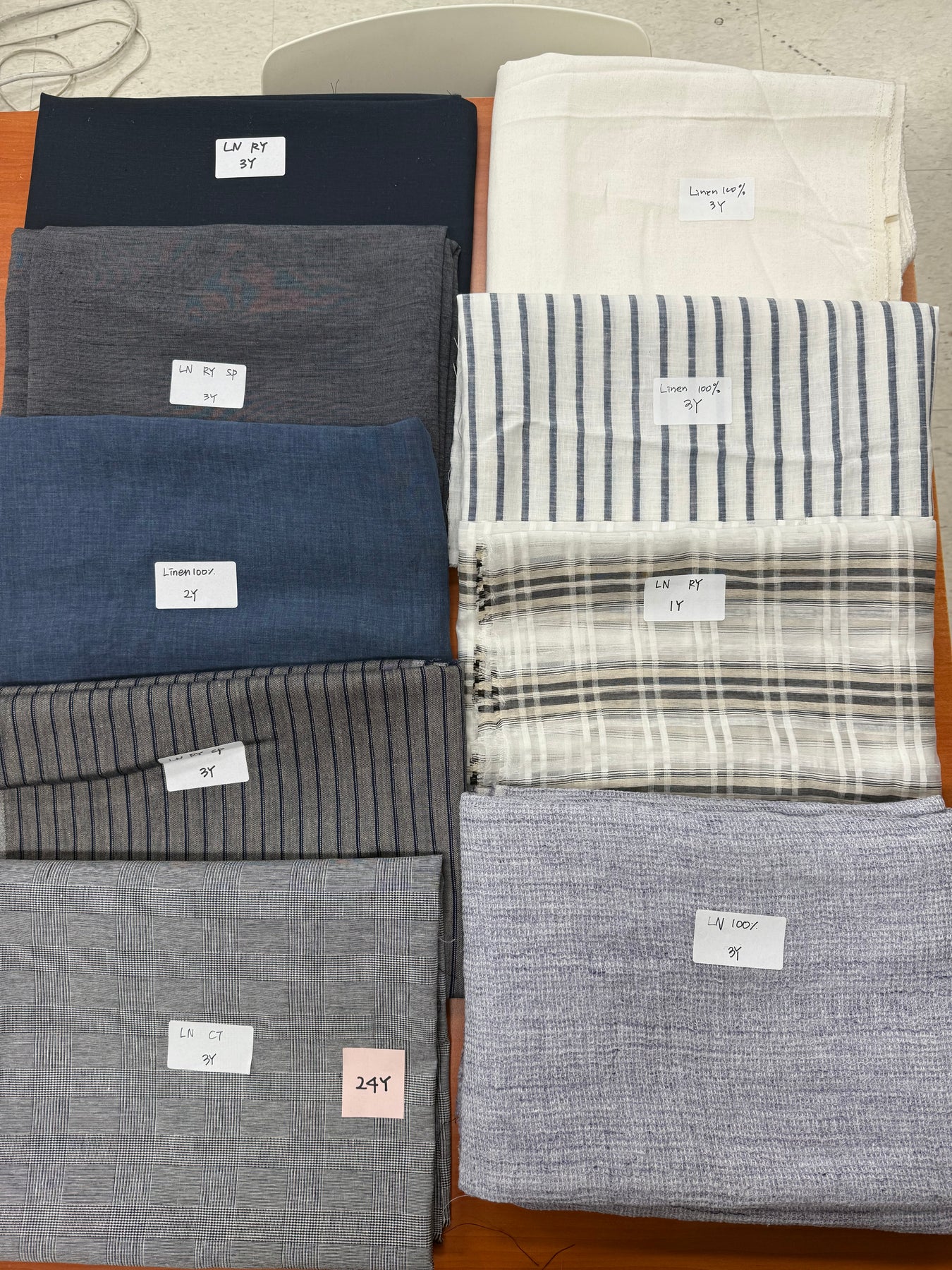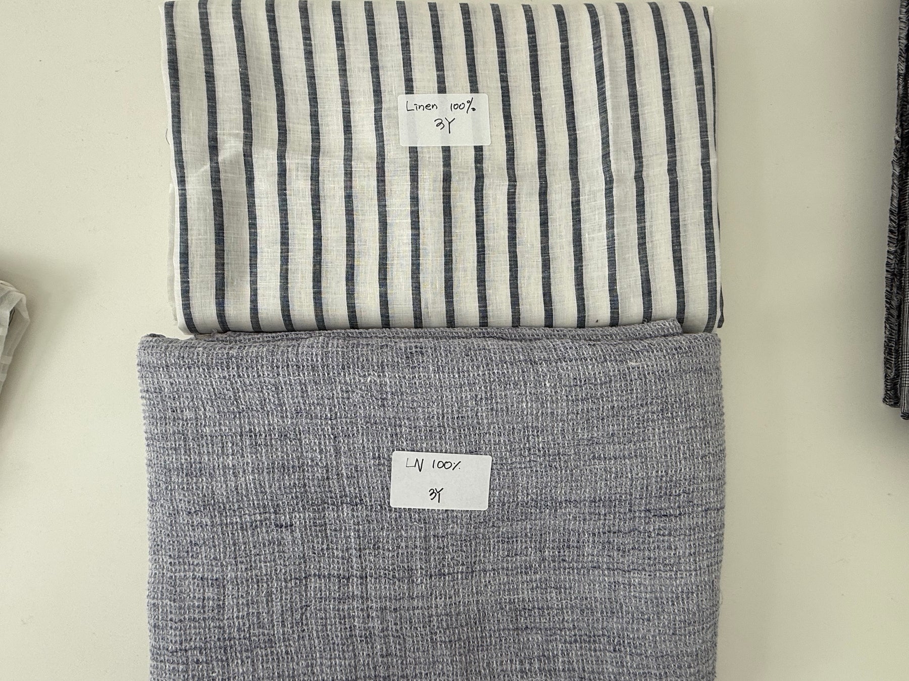 Total 24y, 9 fabrics Get creative with our Linen Fabric Surprise Box! Inside, you'll find kinds of fabric, including 100% Linen, Linen/Cotton, Linen/Nylon/Cotton, Linen/Rayon Each piece ranges from 1 ~ 3 yards, giving you a total of 24 yards of fabric to work with.