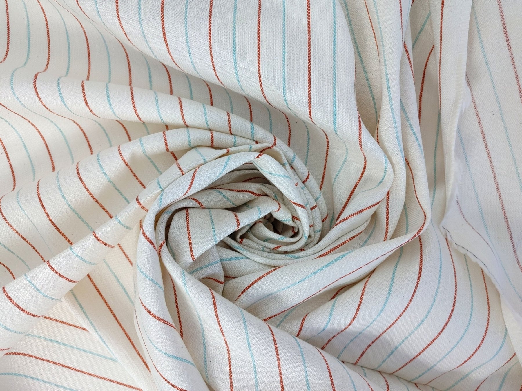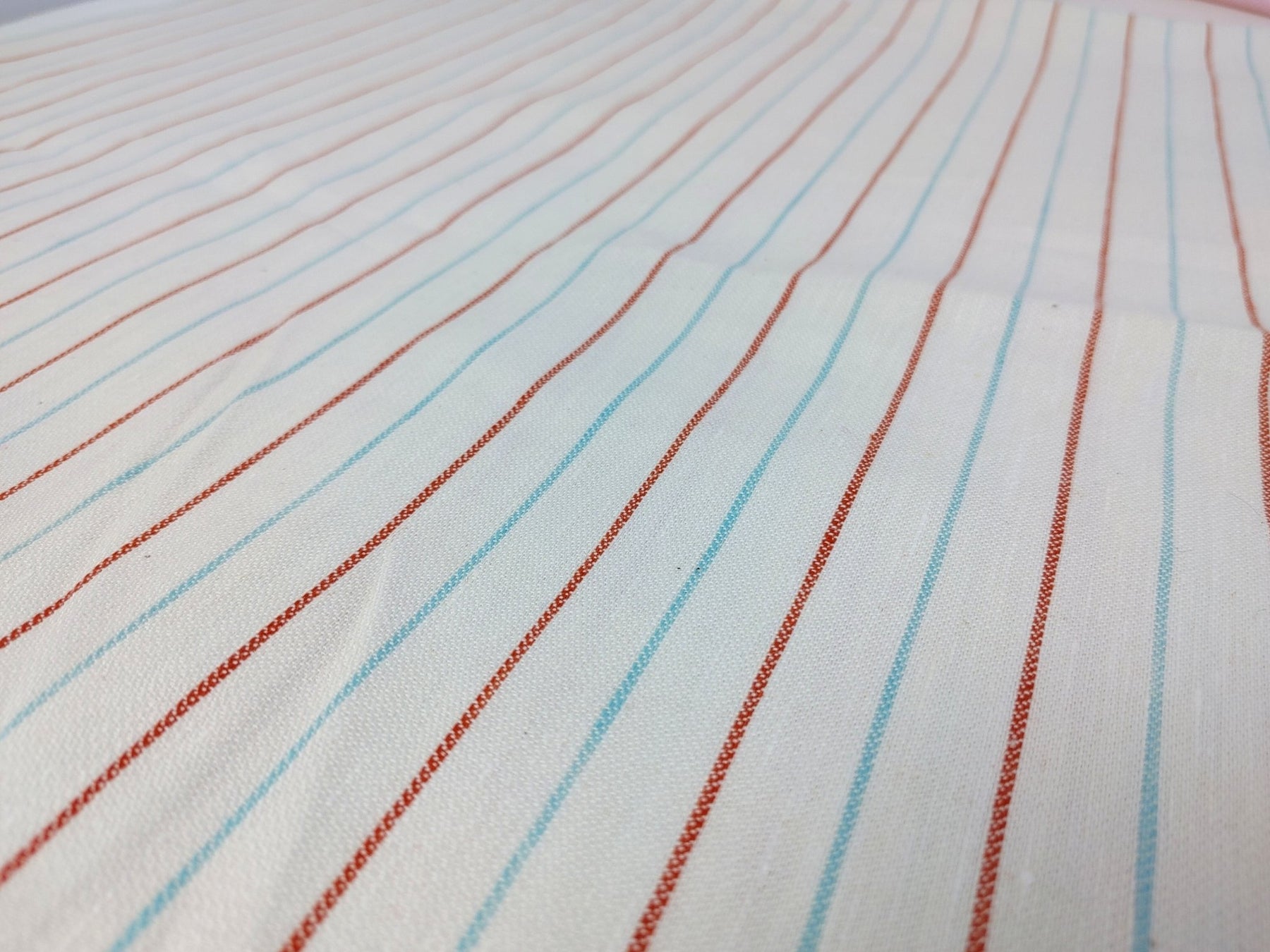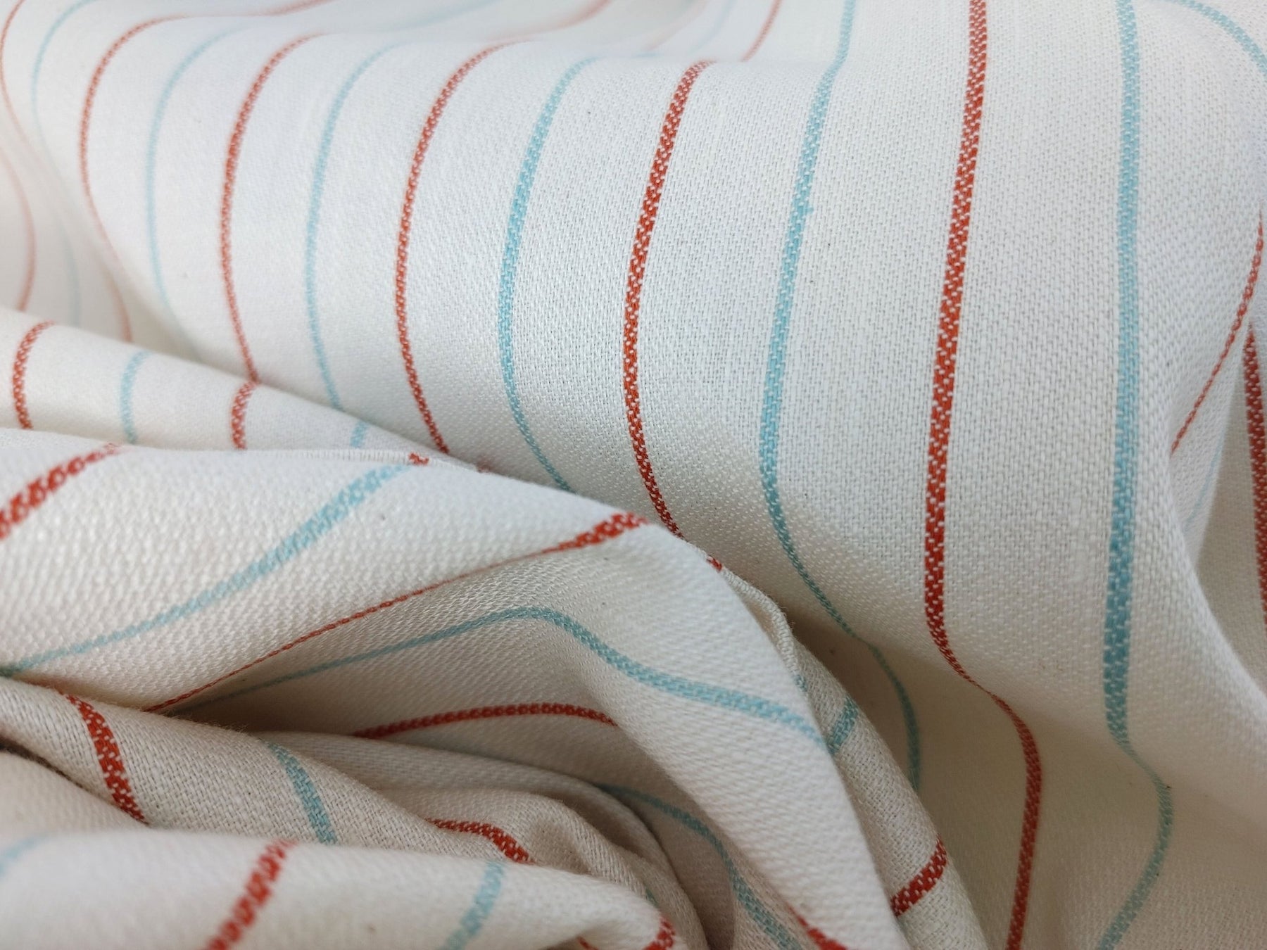 Linen Cotton Red Mint Ivory Stripe Fabric Medium Weight 2296