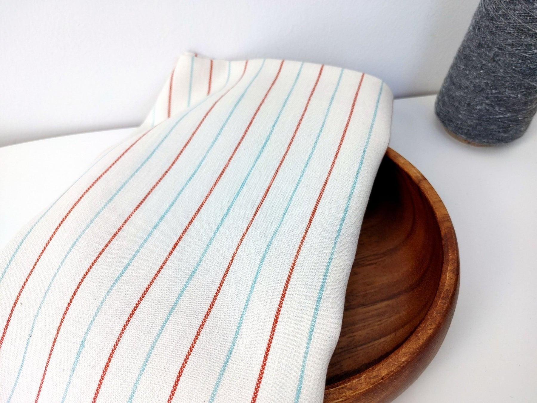 Linen Cotton Red Mint Ivory Stripe Fabric Medium Weight 2296 - The Linen Lab - Ivory