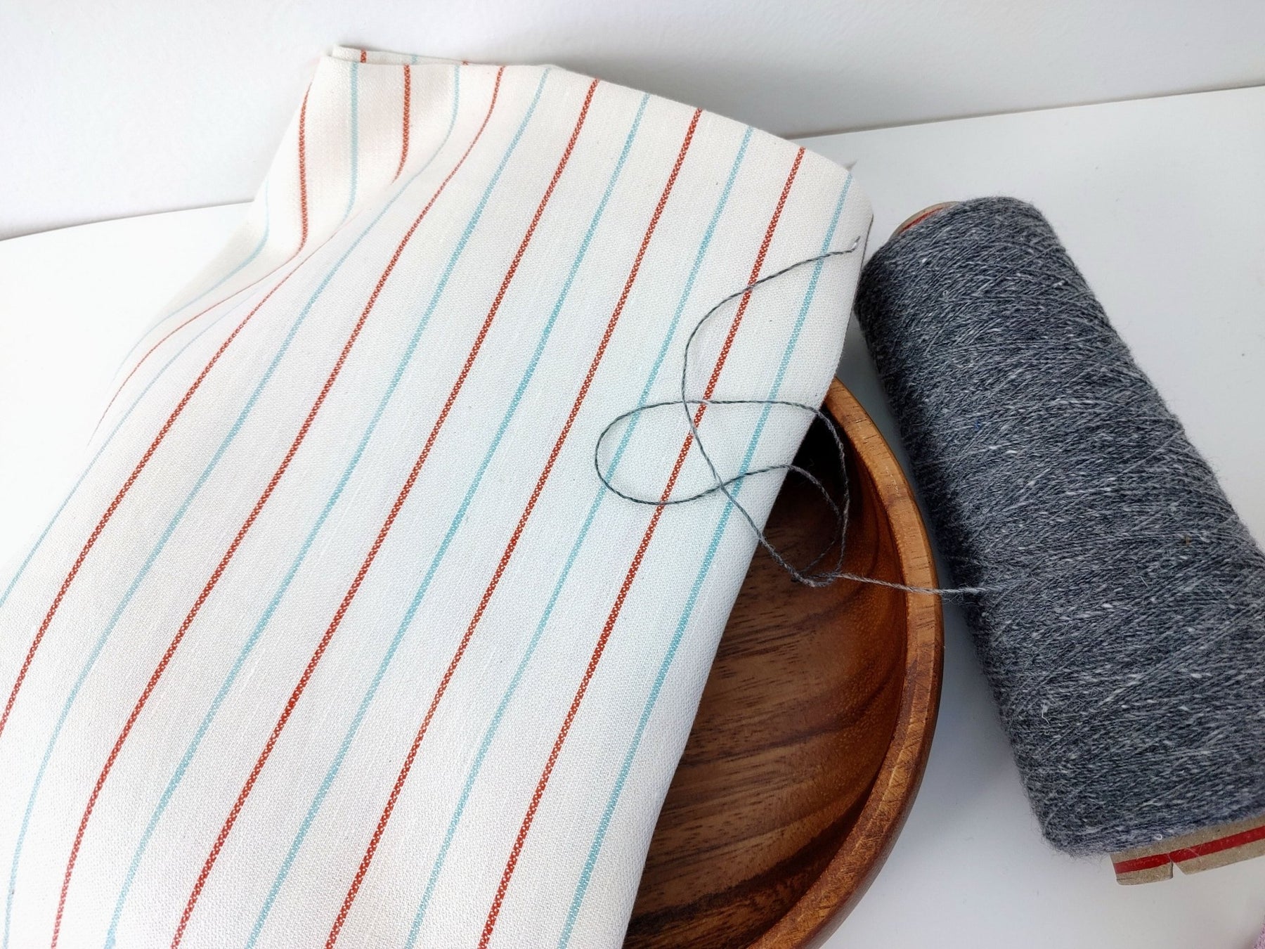 Introducing our Linen Cotton Red Mint Ivory Stripe Fabric, a delightful blend of simplicity and charm. Crafted with a medium-weight twill weave, this fabric embodies a perfect balance of style and comfort. Composed of 53% linen and 47% cotton, it offers a harmonious mix of natural fibers, ensuring a breathable and pleasant wearing experience. With a weight of 183 g/sqm (5.39 oz per square yard), it strikes an ideal balance between substance and lightness. The fabric features a classic stripe pattern in red, mint, and ivory tones, adding a touch of playfulness to its overall aesthetic. Pre-washed for a soft handfeel, and with no elasticity, this fabric is both simple and cute, making it a versatile choice for a range of charming and pretty projects.