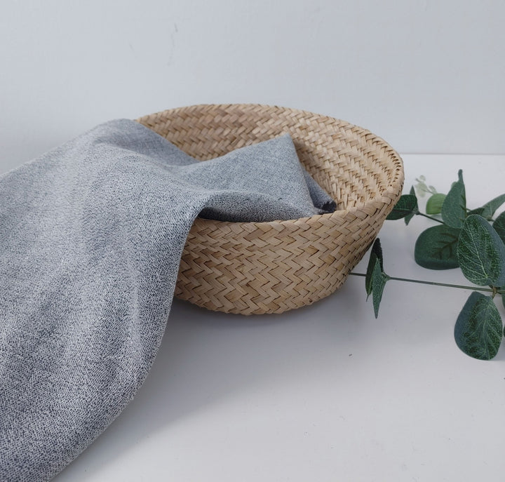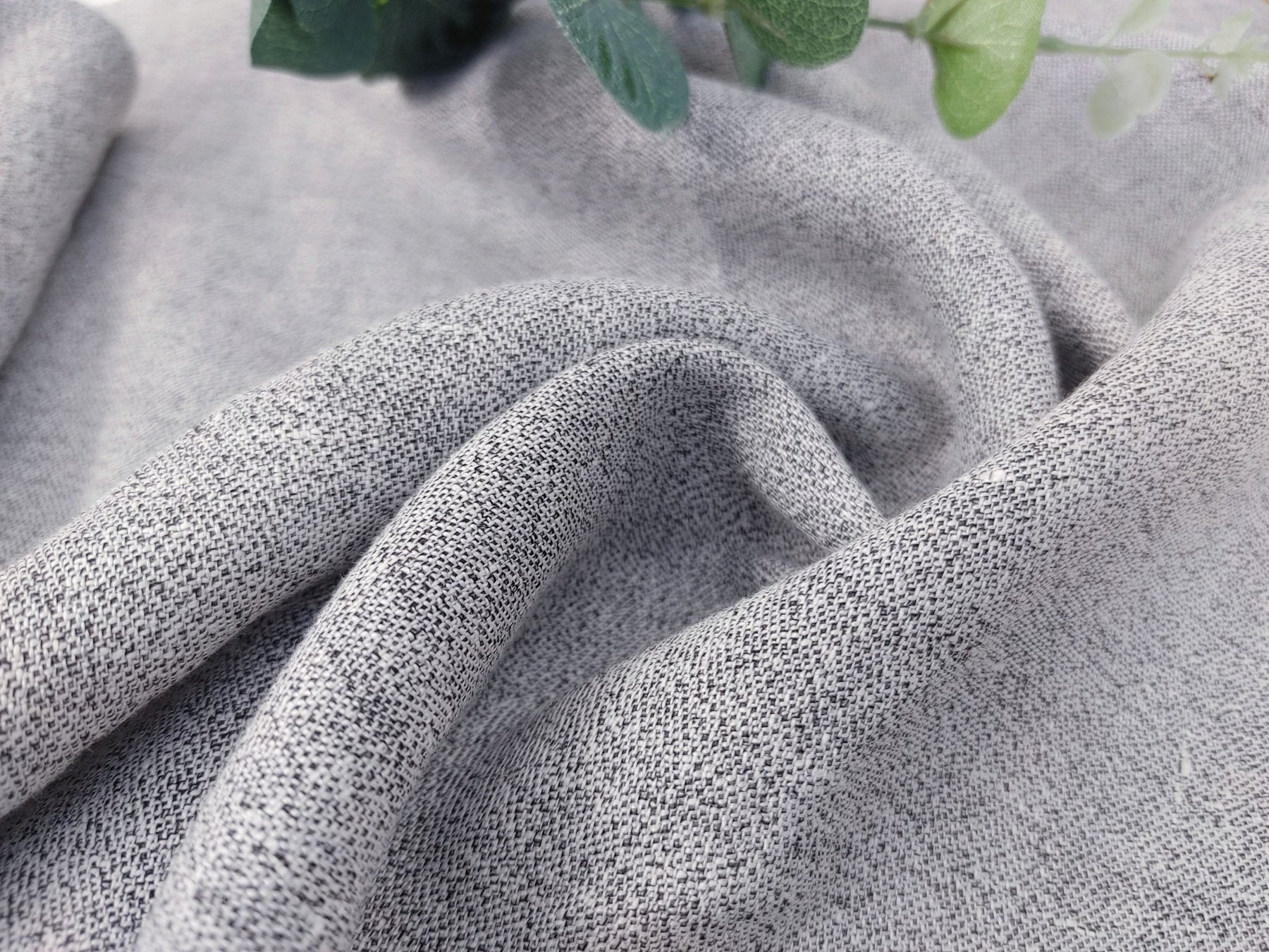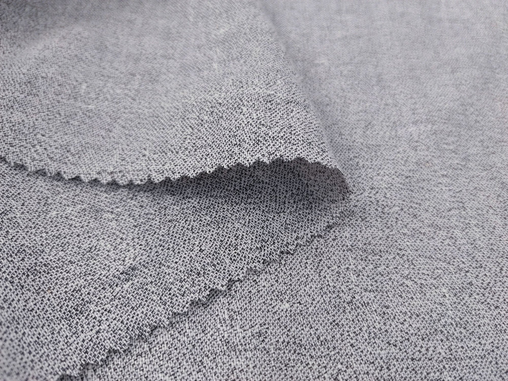 Explore our Linen Polyester Twisted Yarn Chambray Fabric in White and Black, where white linen yarn intertwines with black polyester filament yarn for a special color and unique handfeel.