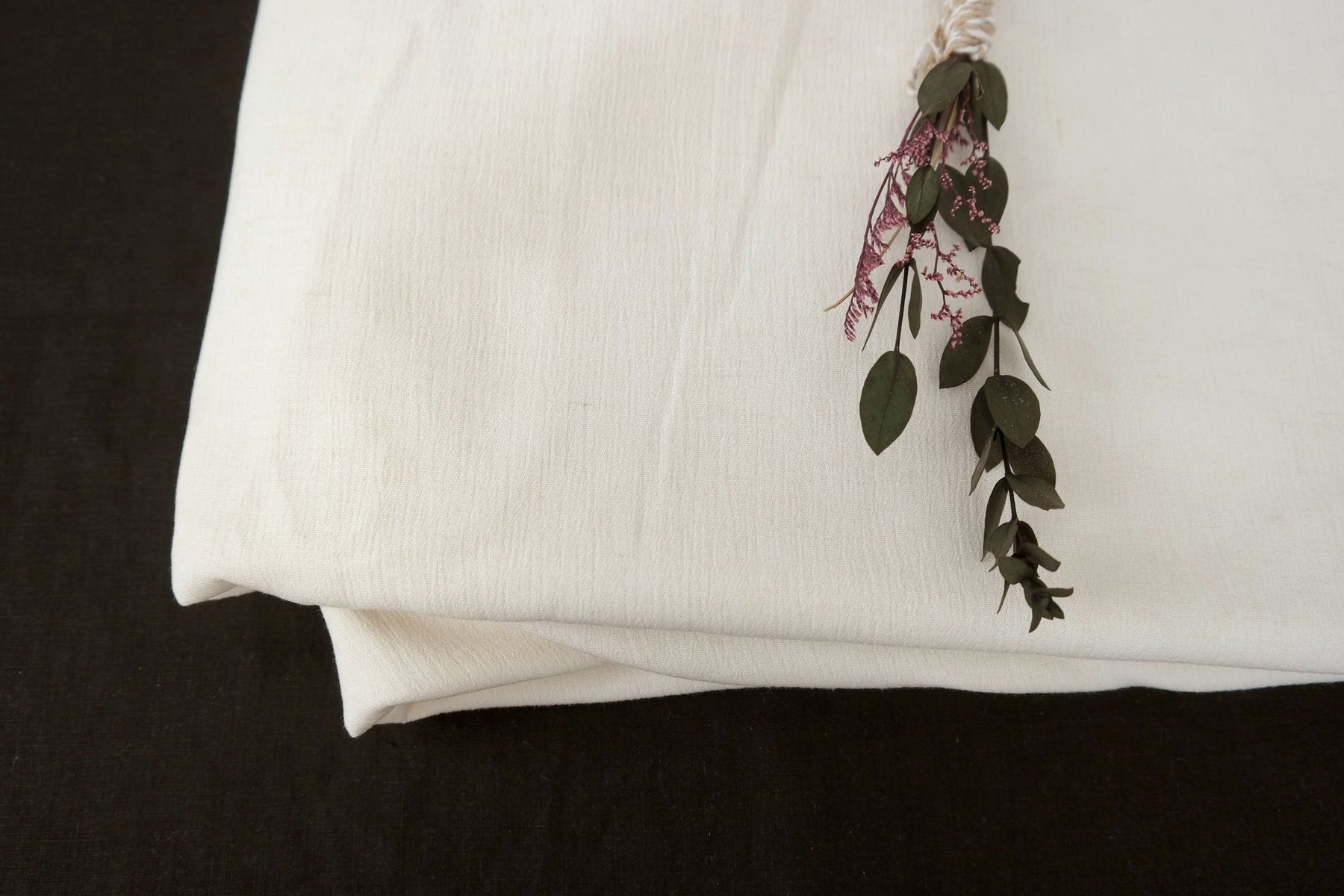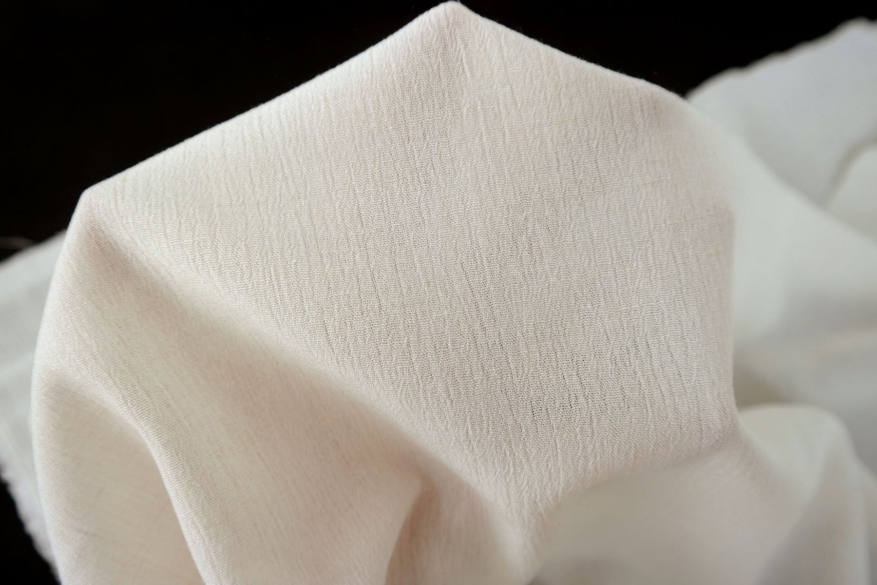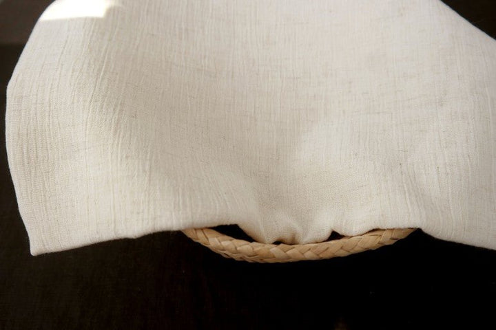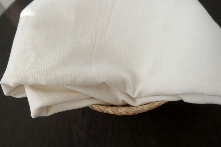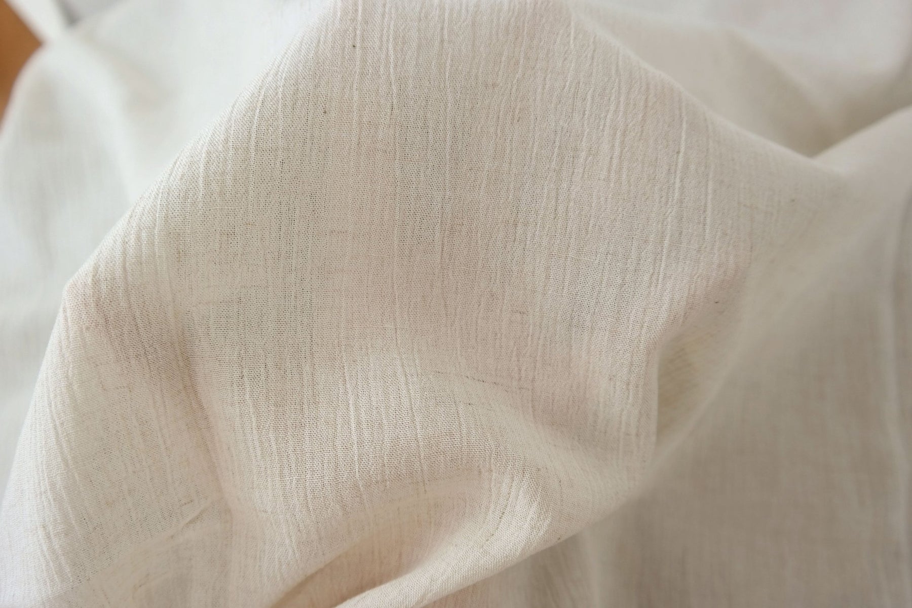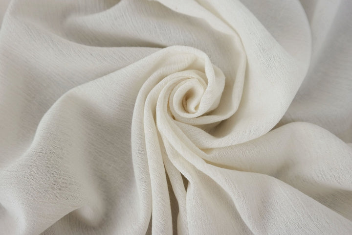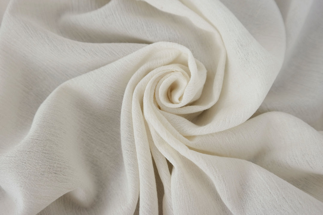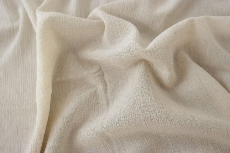 A notable characteristic of this fabric is its natural wrinkle effect, achieved through the use of high-twisted yarn in the weft. Both the warp and weft consist of linen rayon mixed yarn, with the weft's high twist imparting the distinctive wrinkled texture. This texture can become more pronounced with tumble drying, offering a casual and textured appearance. The combination of linen and rayon ensures the fabric's softness and breathability, making it a practical choice for lightweight garments and accessories.