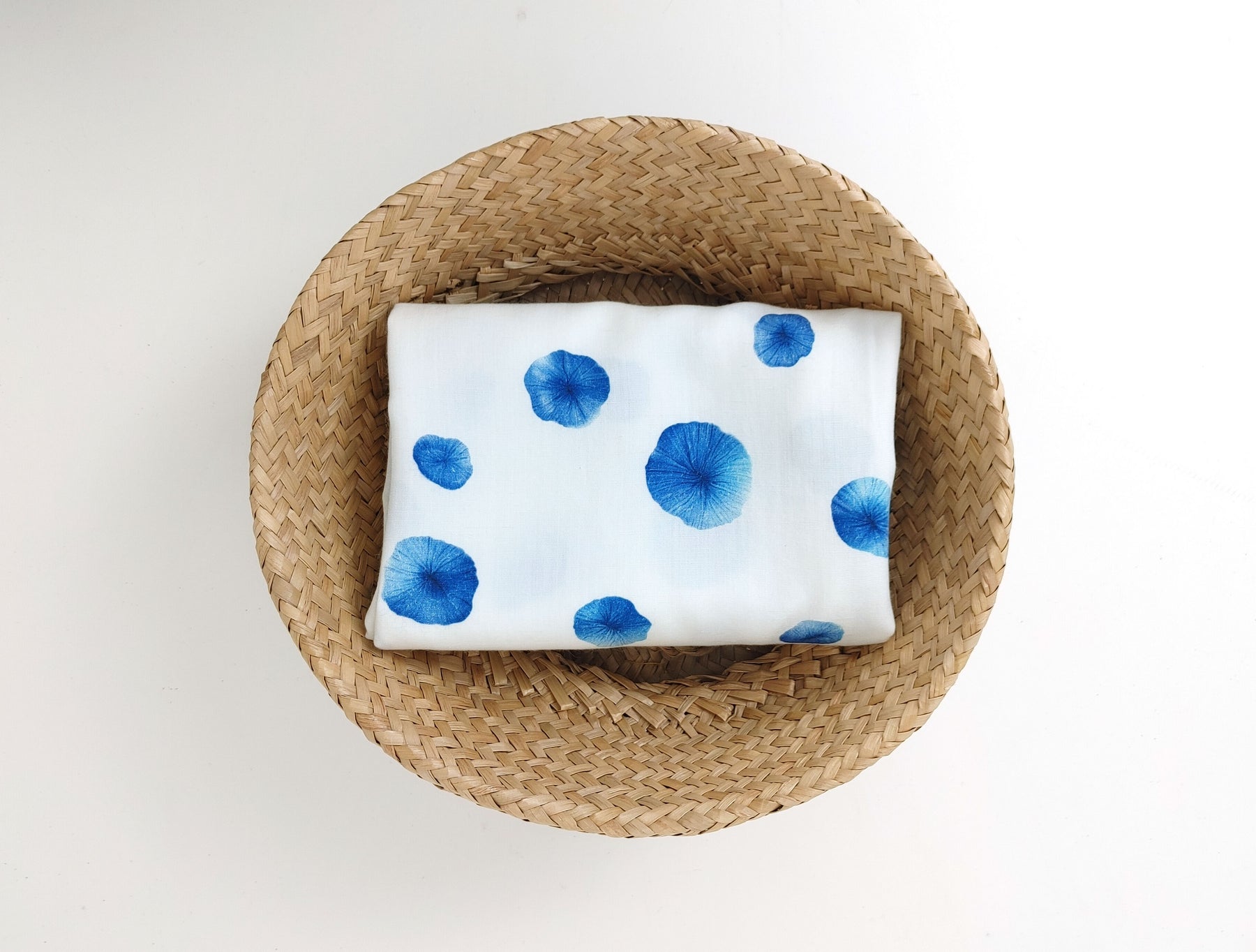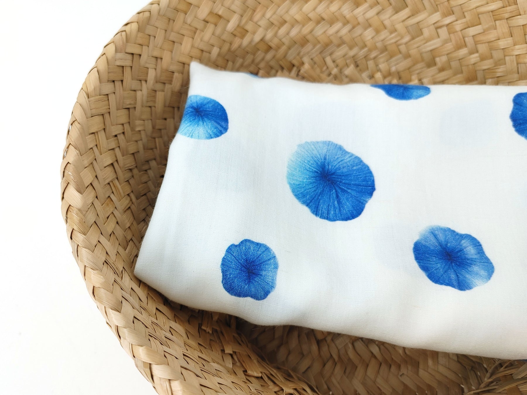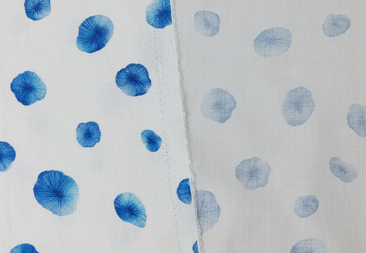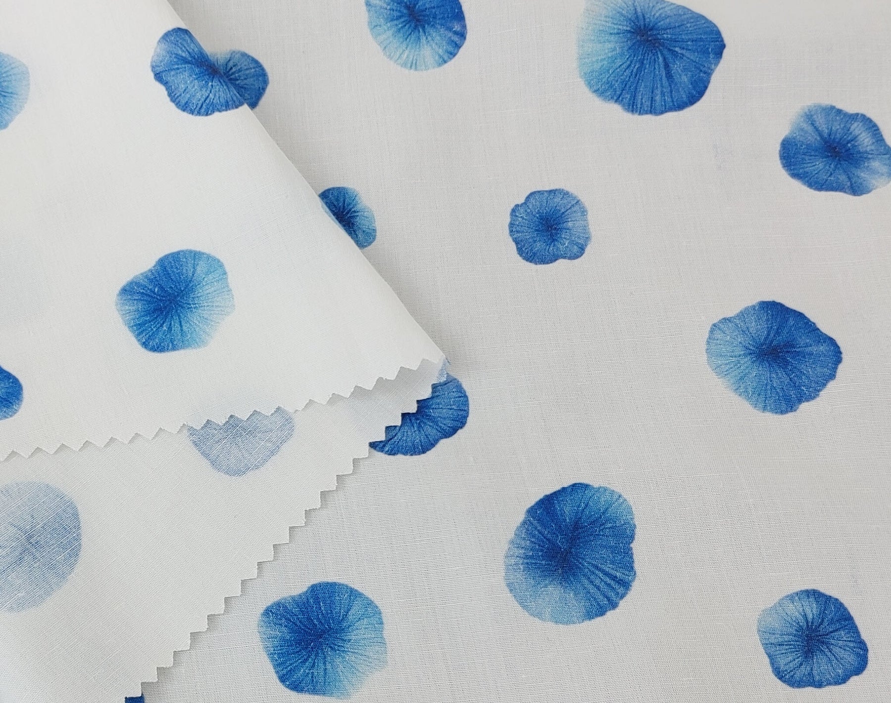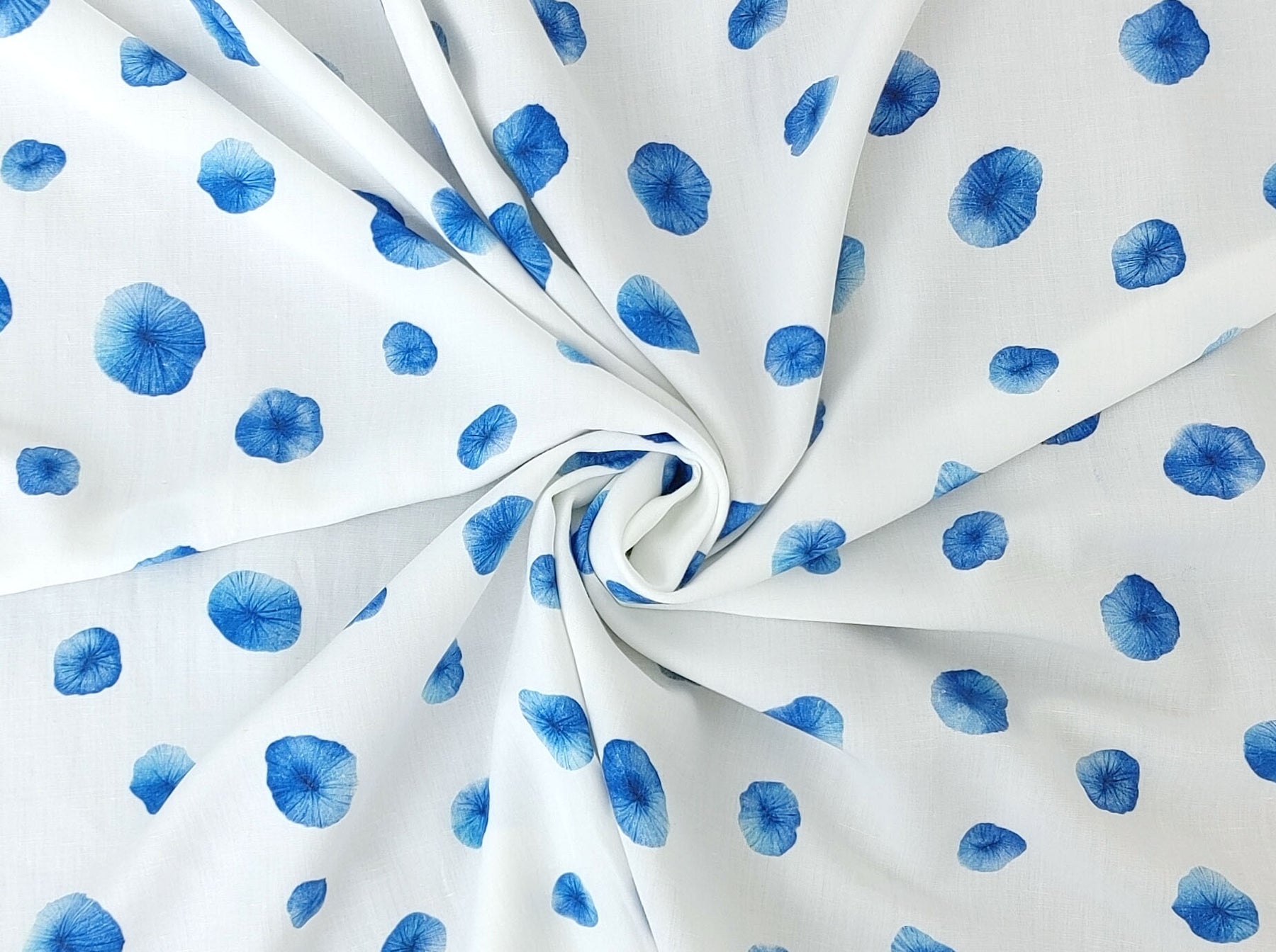 Linen Rayon Fabric in Botanical Blue Print 7921
