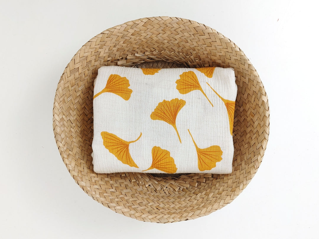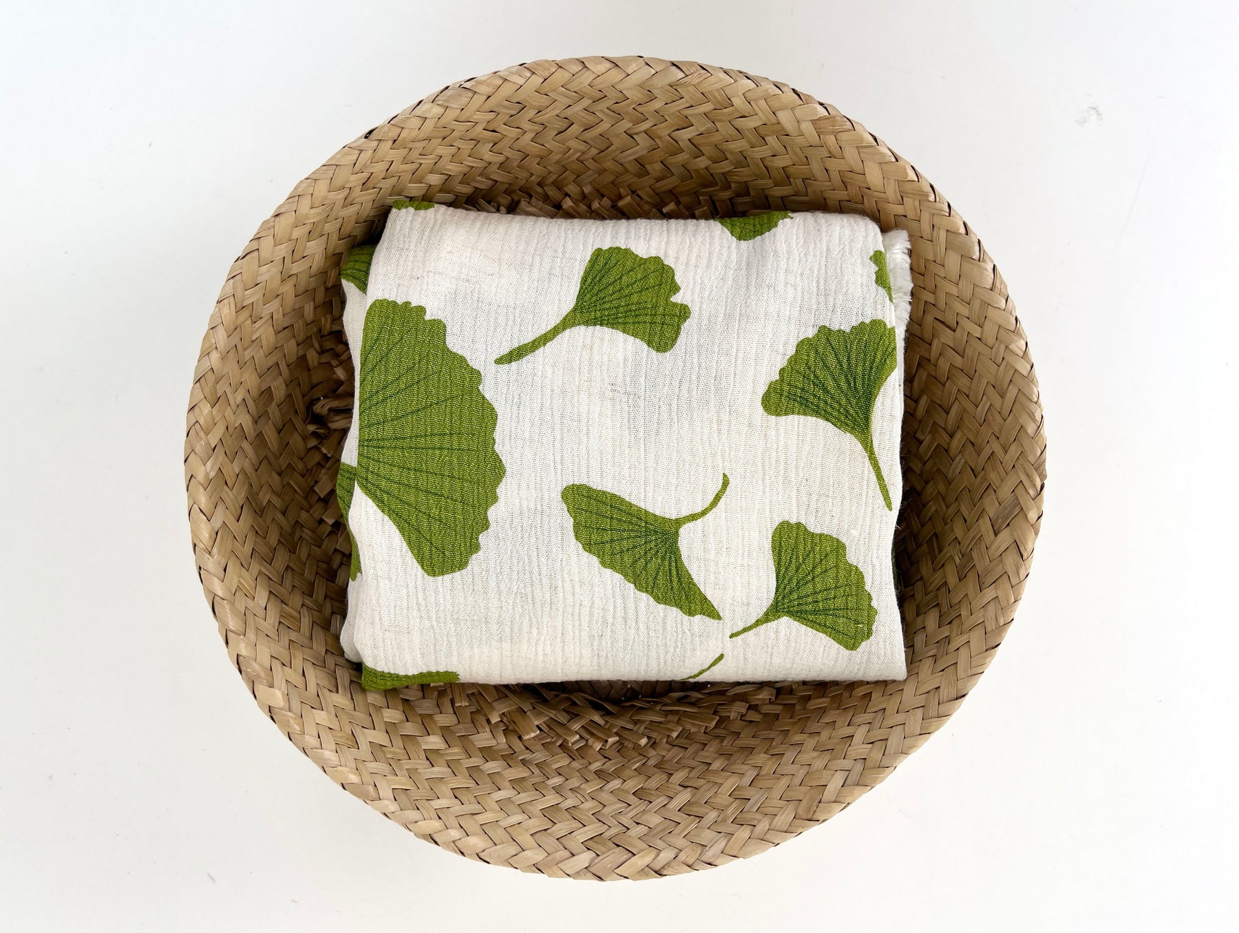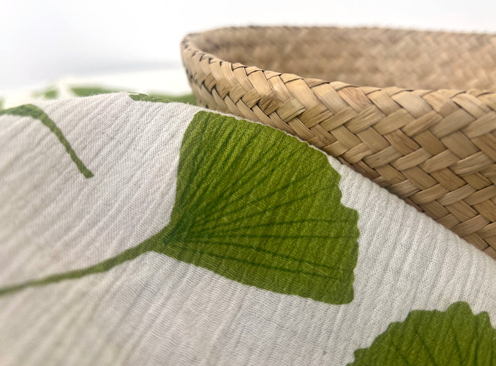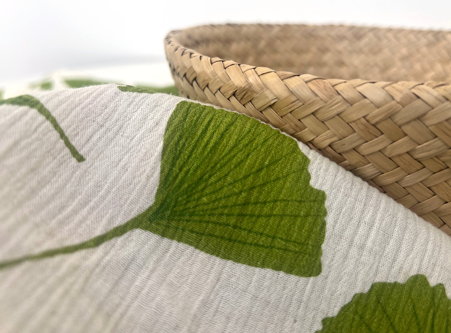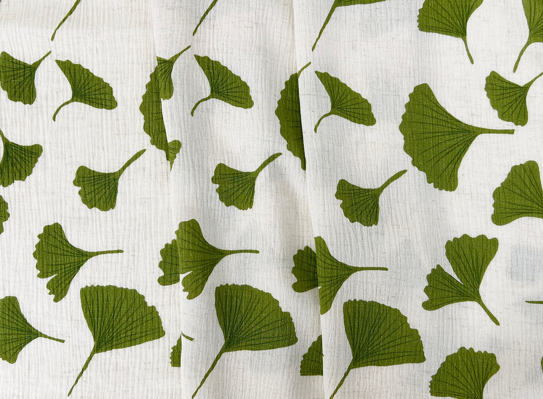 The Morning Calm Ginkgo pattern was designed exclusively for The Linen Lab by Anna M. Jo, a traditional folk artist residing in Seoul.