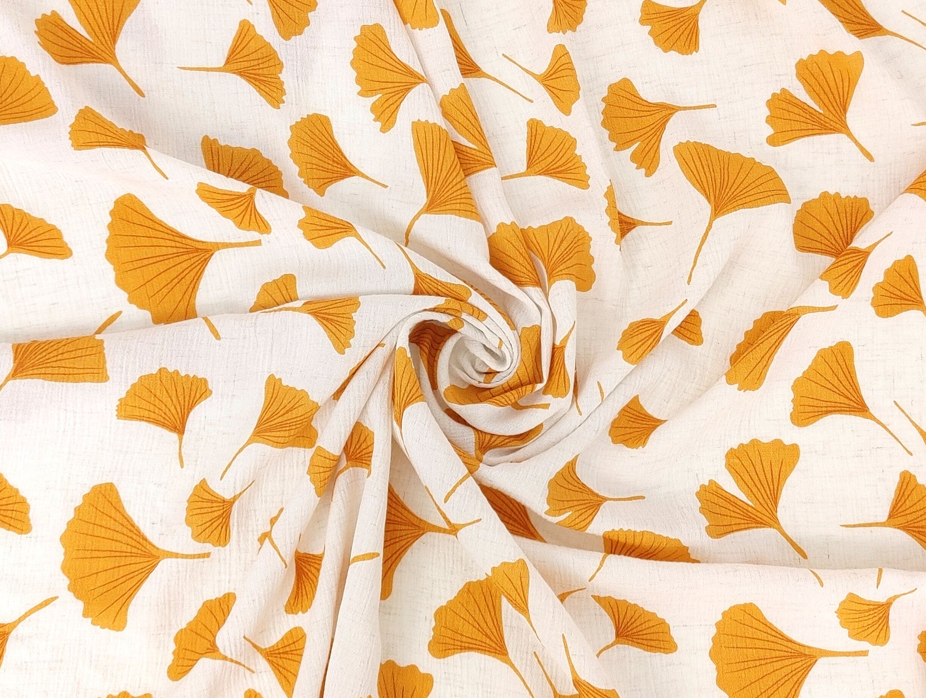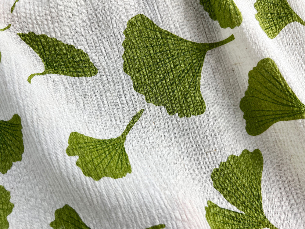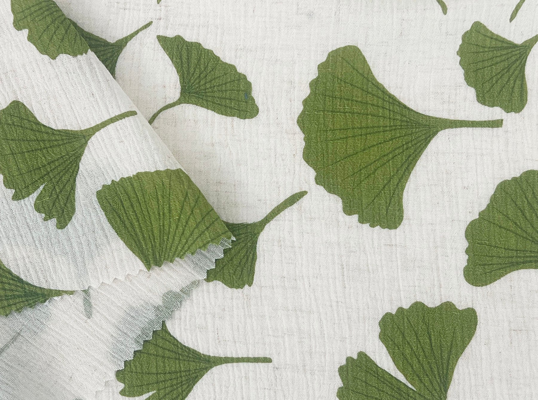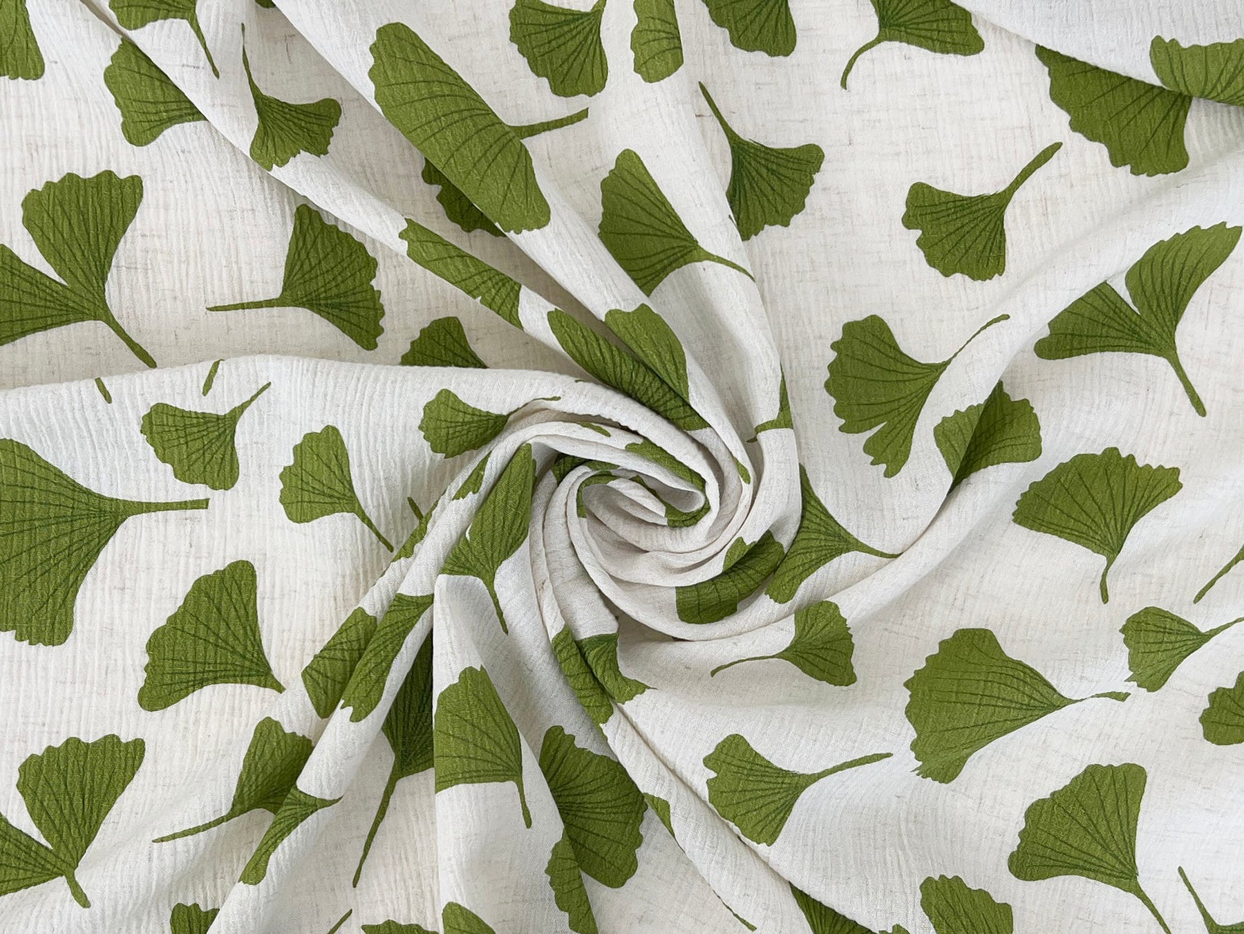 Embrace creativity with our Morning Calm Ginkgo Linen Rayon Blend Fabric, offering a blend of 15% linen and 85% rayon for a lightweight yet durable composition. This fabric, weighing 129 g/sqm (3.80 oz per square yard), features a soft, pre-washed handfeel that ensures comfort and ease of use.
