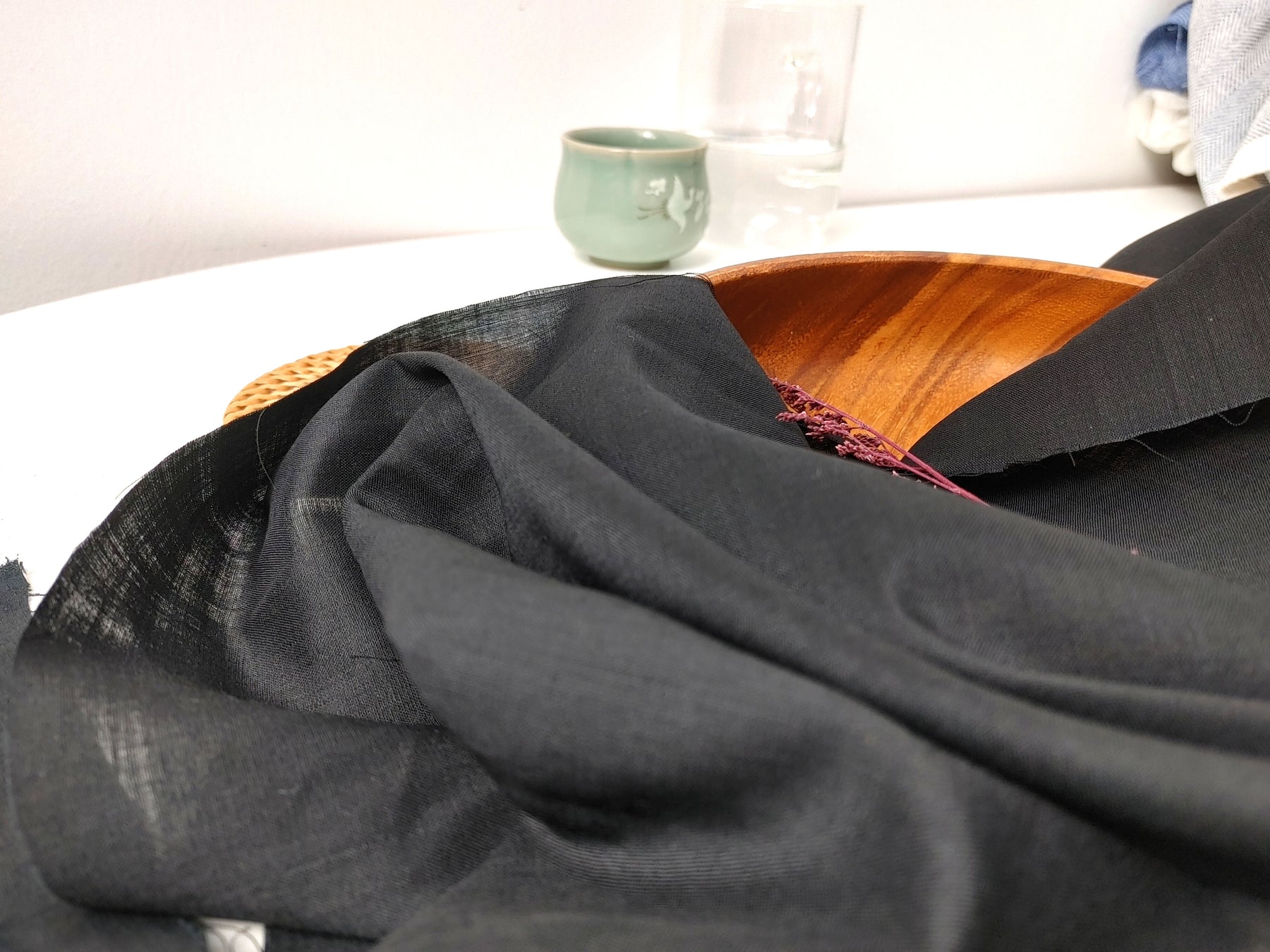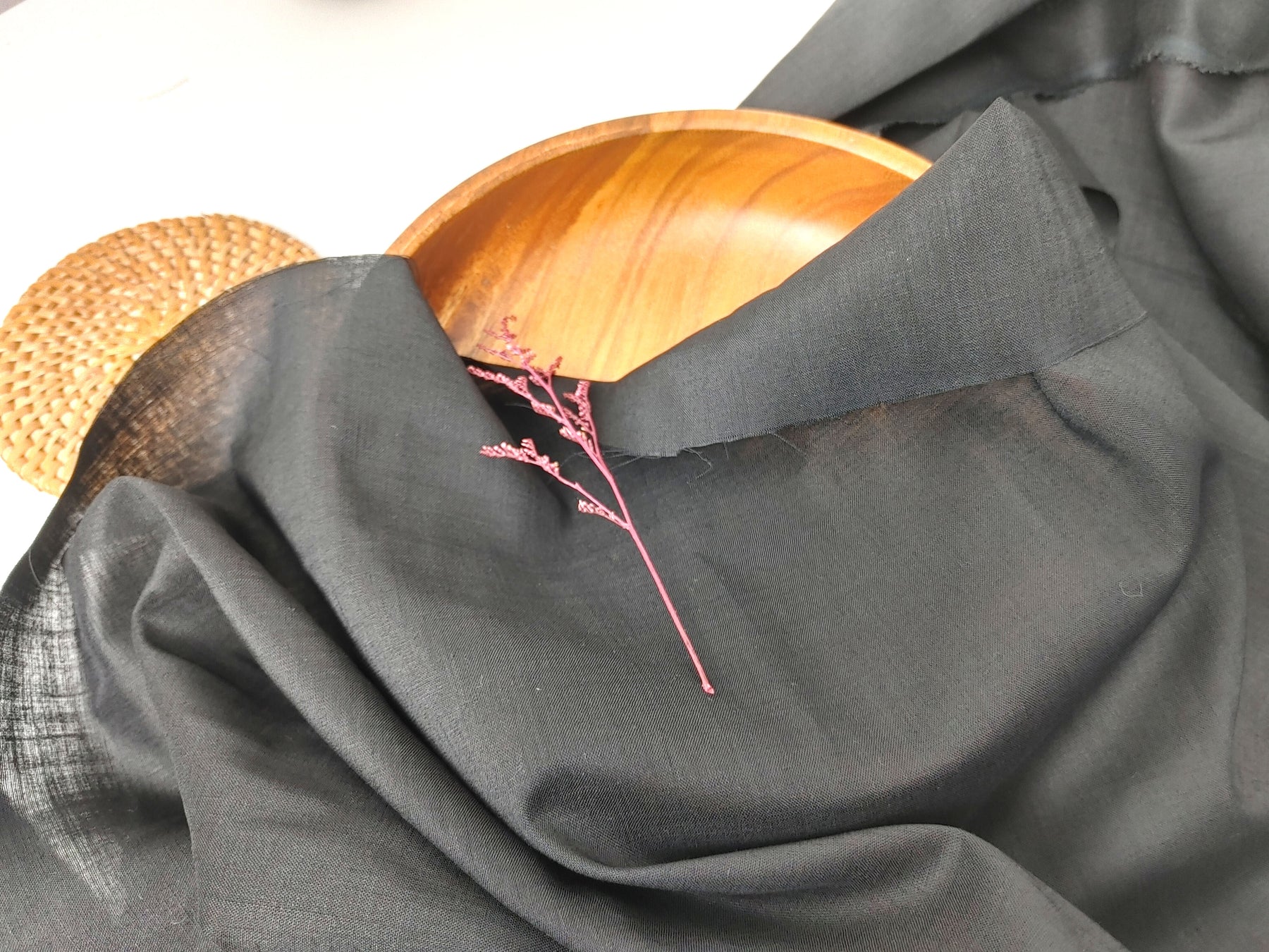 Ramie Polyester Black Sheer Fabric 68nm Light Weight 3898 2419