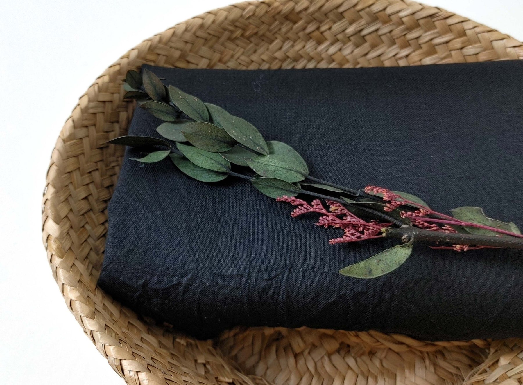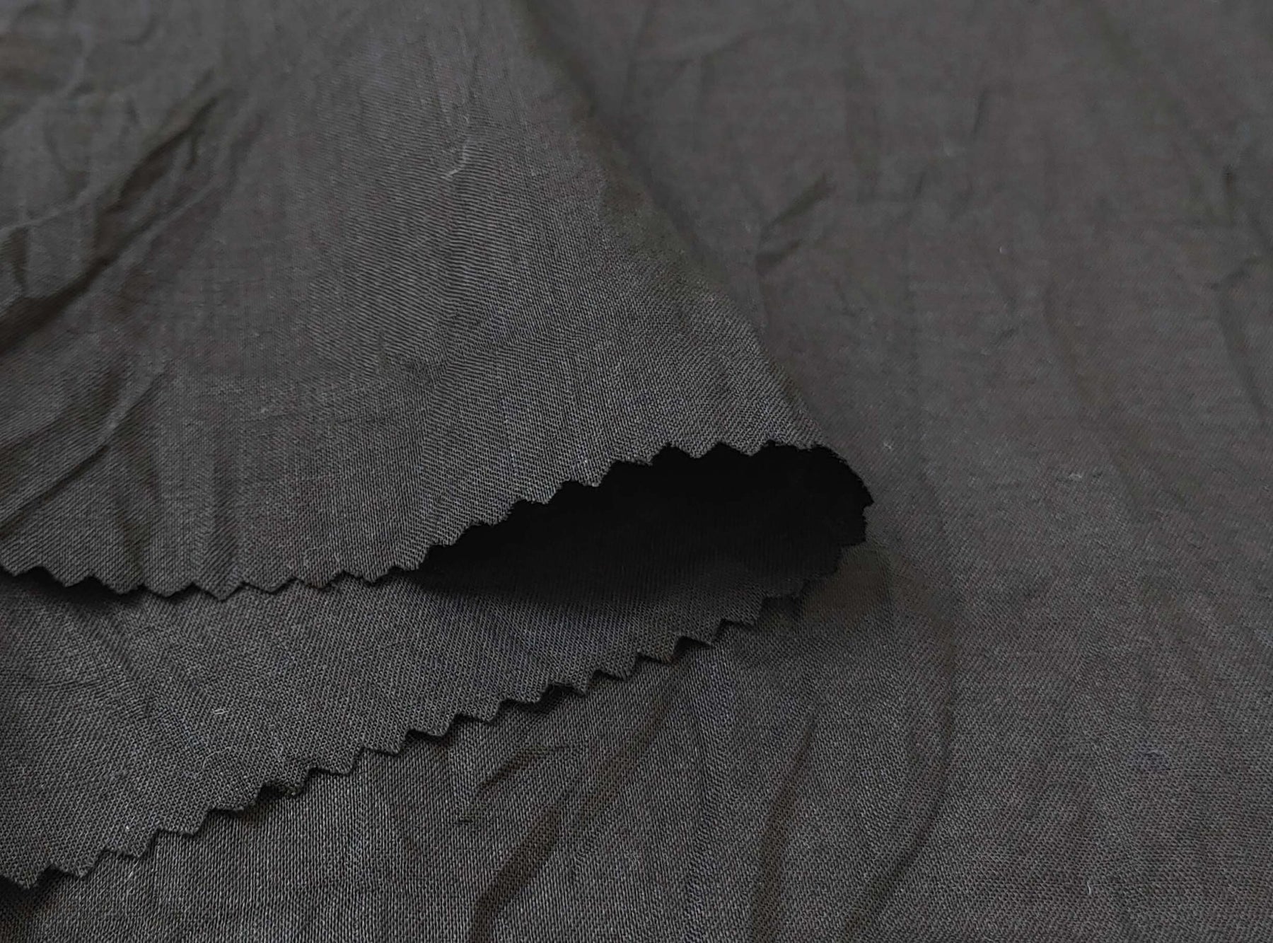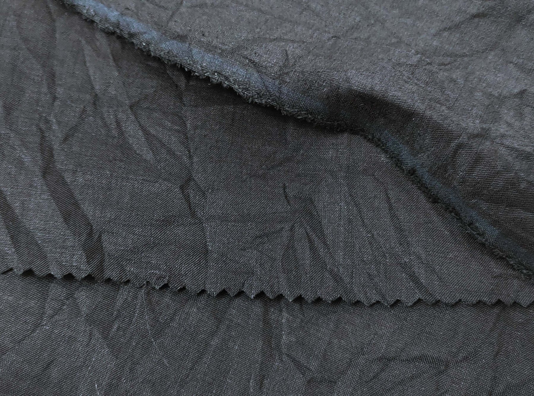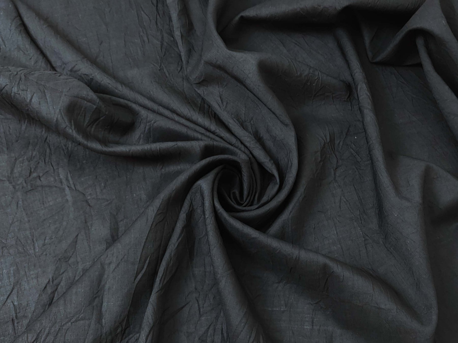 Introducing our Linen Polyester Fabric - Black Color with Crease Wrinkle Effect, Lightweight. Ideal for various sewing and crafting projects, this fabric offers a unique crease wrinkle effect in a sleek black color. Its lightweight construction makes it versatile for a wide range of applications. Whether you're creating garments, home decor items, or accessories, this fabric provides both style and comfort.